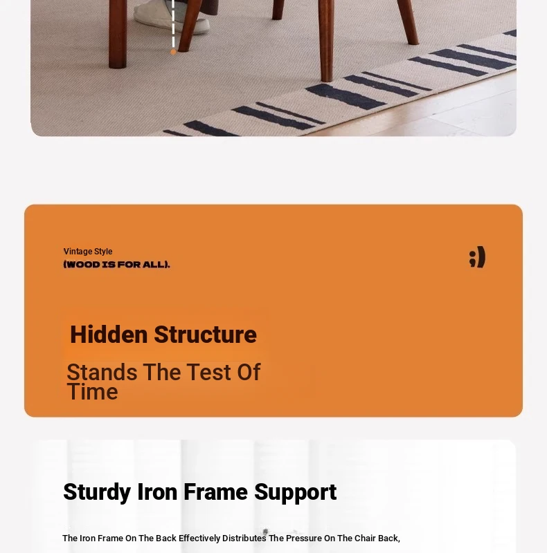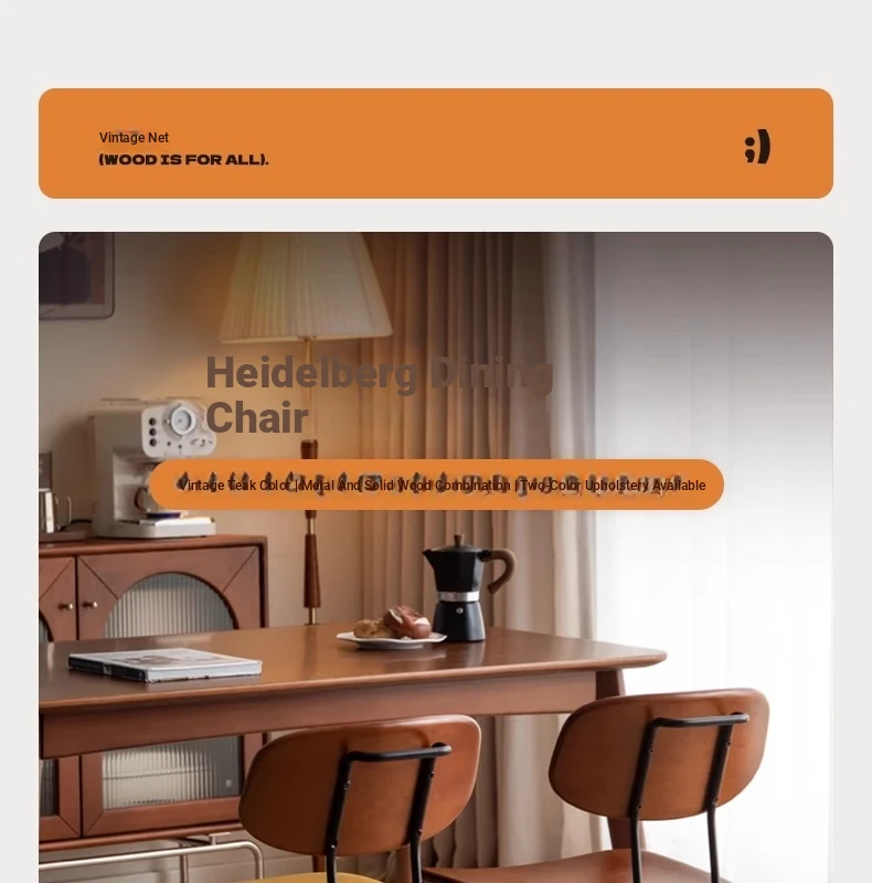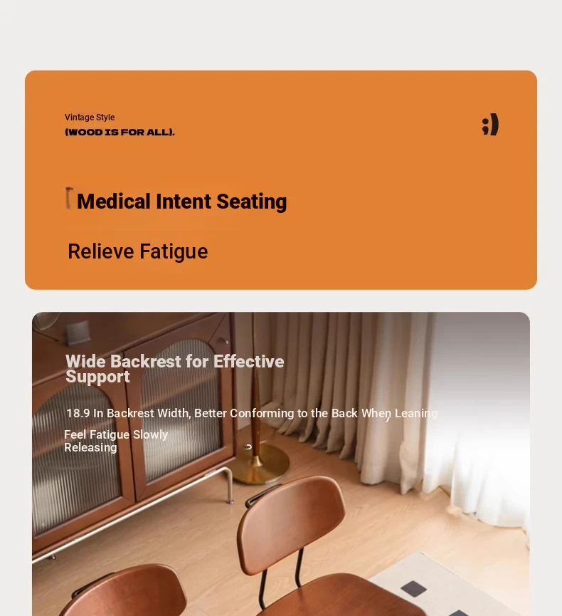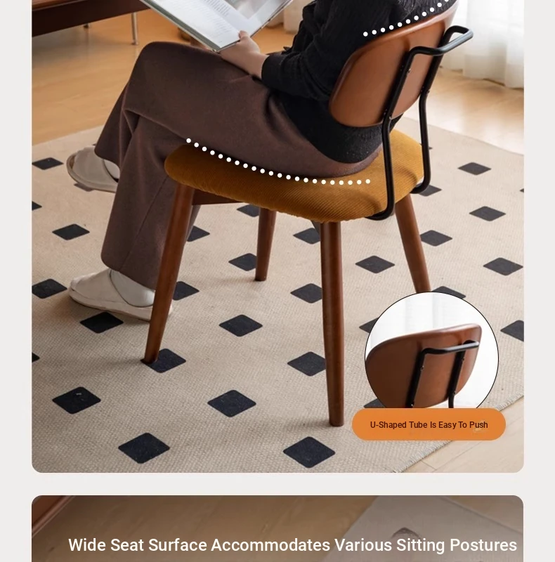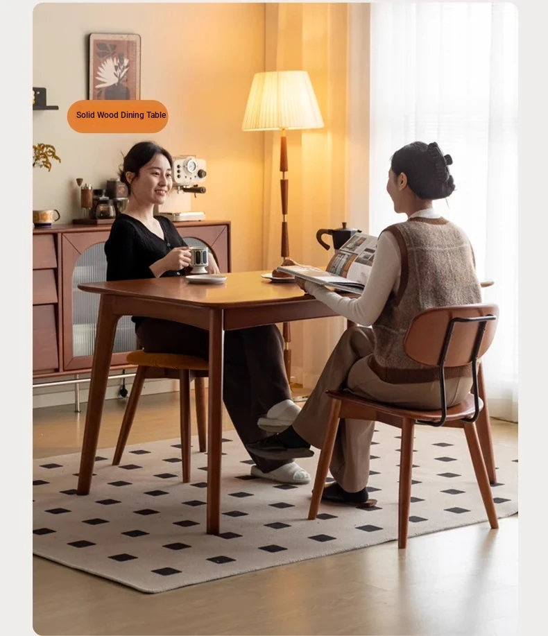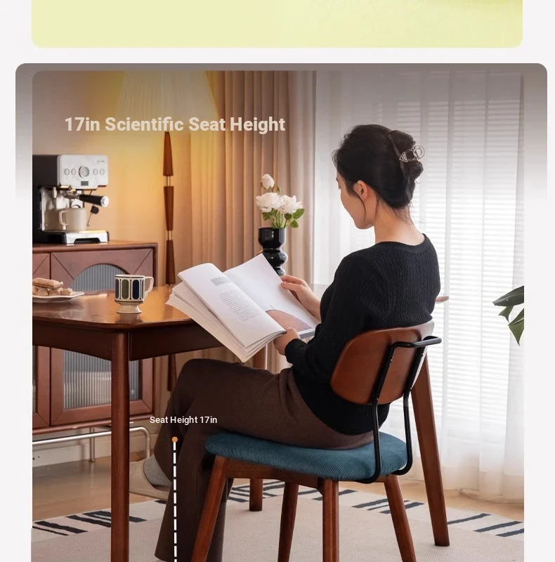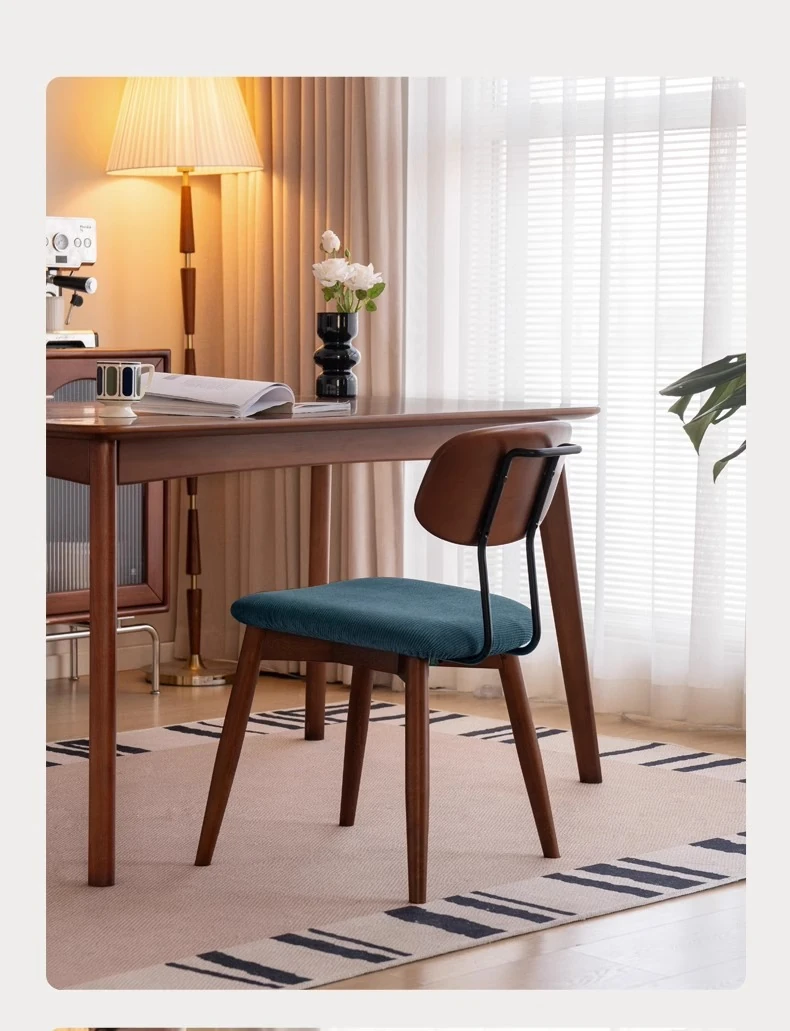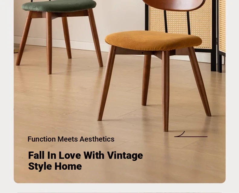 Genji Mu Yu Anani Solid Wood Dining Chair - Vintage Style Upholstered Backrest Chair for Restaurant, Retro Home Leisure Seating