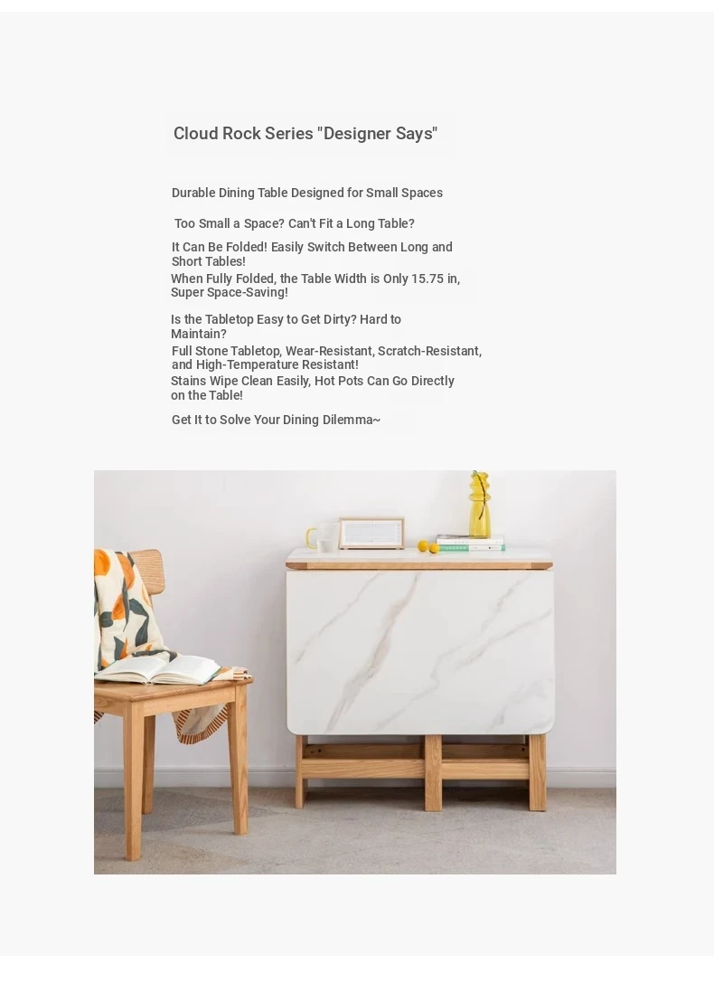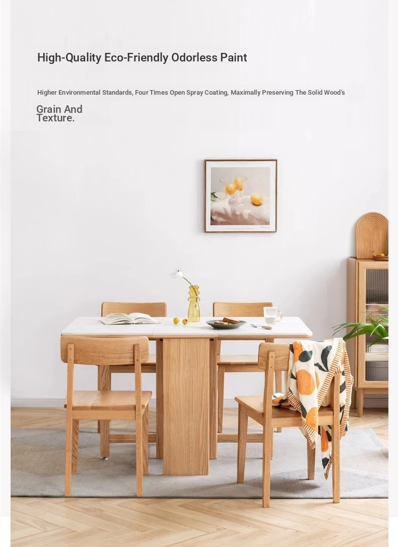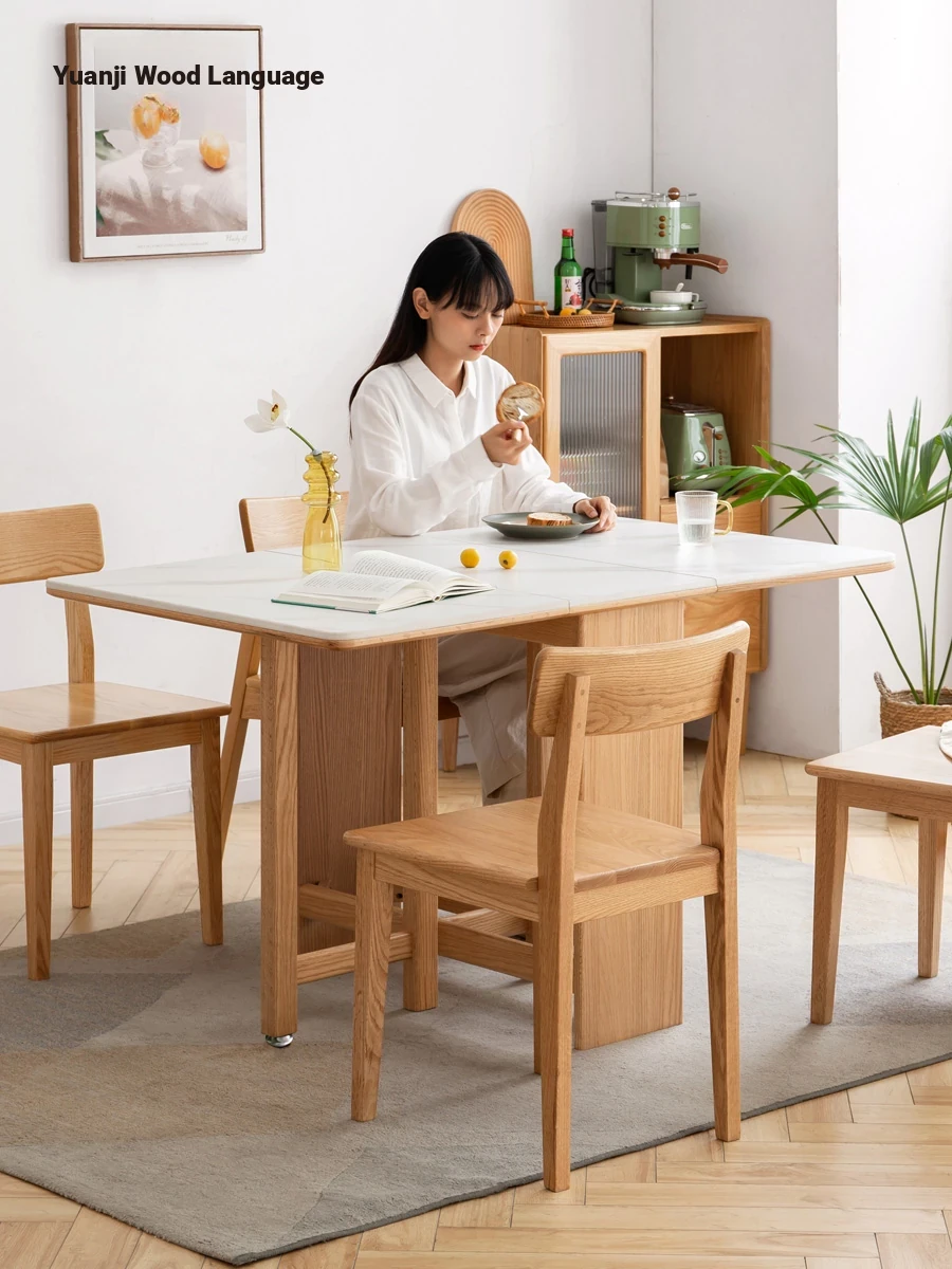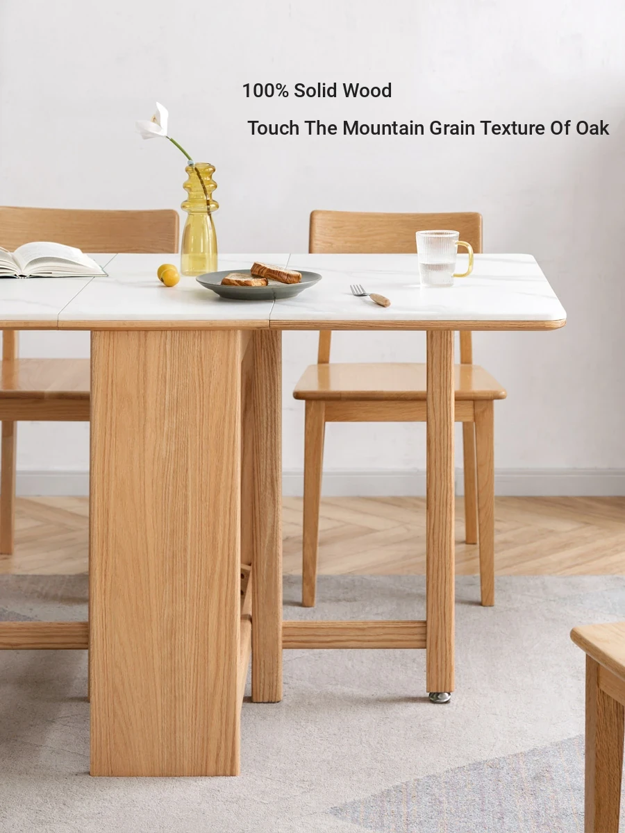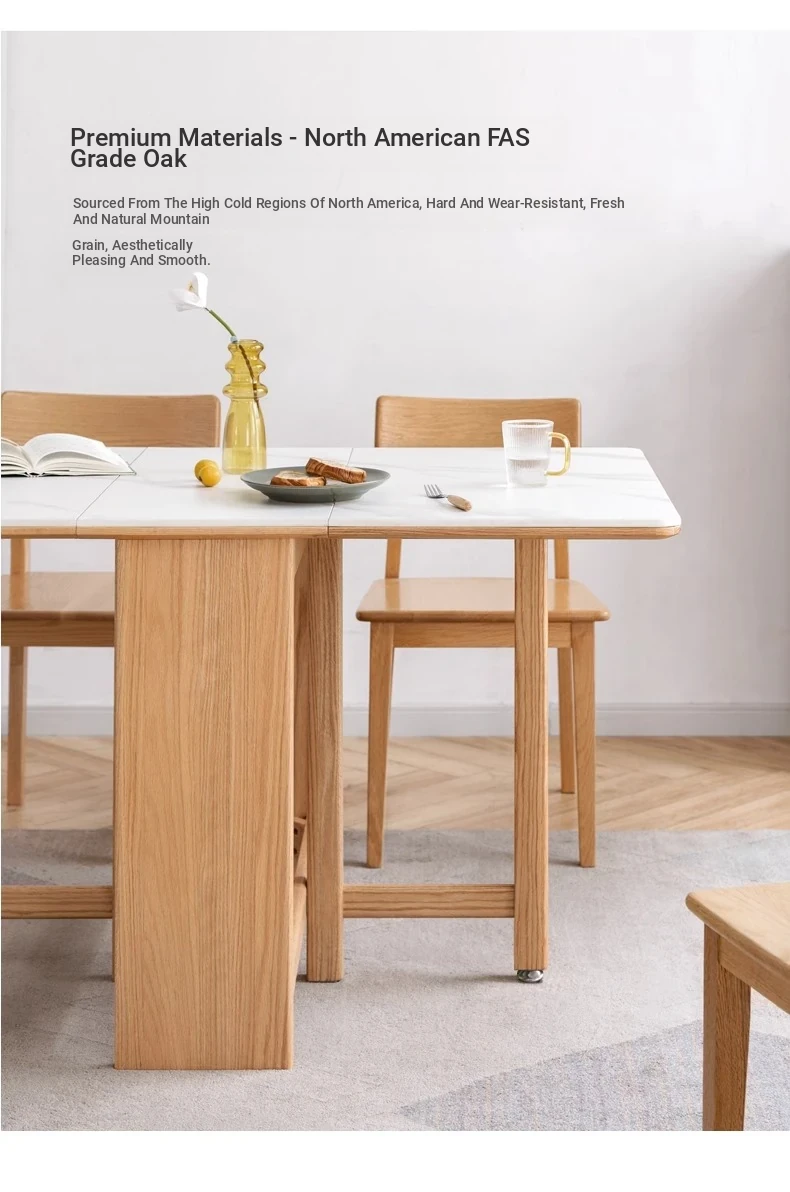 Genji Mu Yu Anani Solid Wood Dining Table with Rock Board - Modern Minimalist Oak Folding Table for Small Spaces