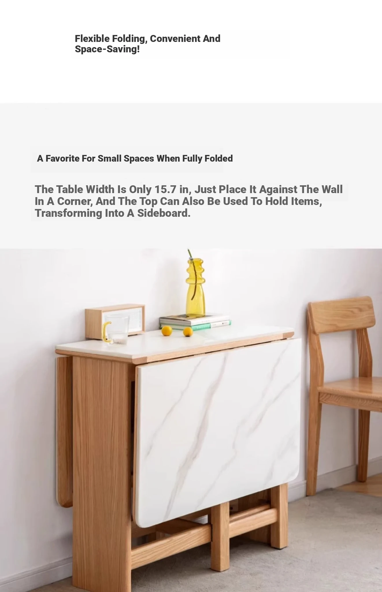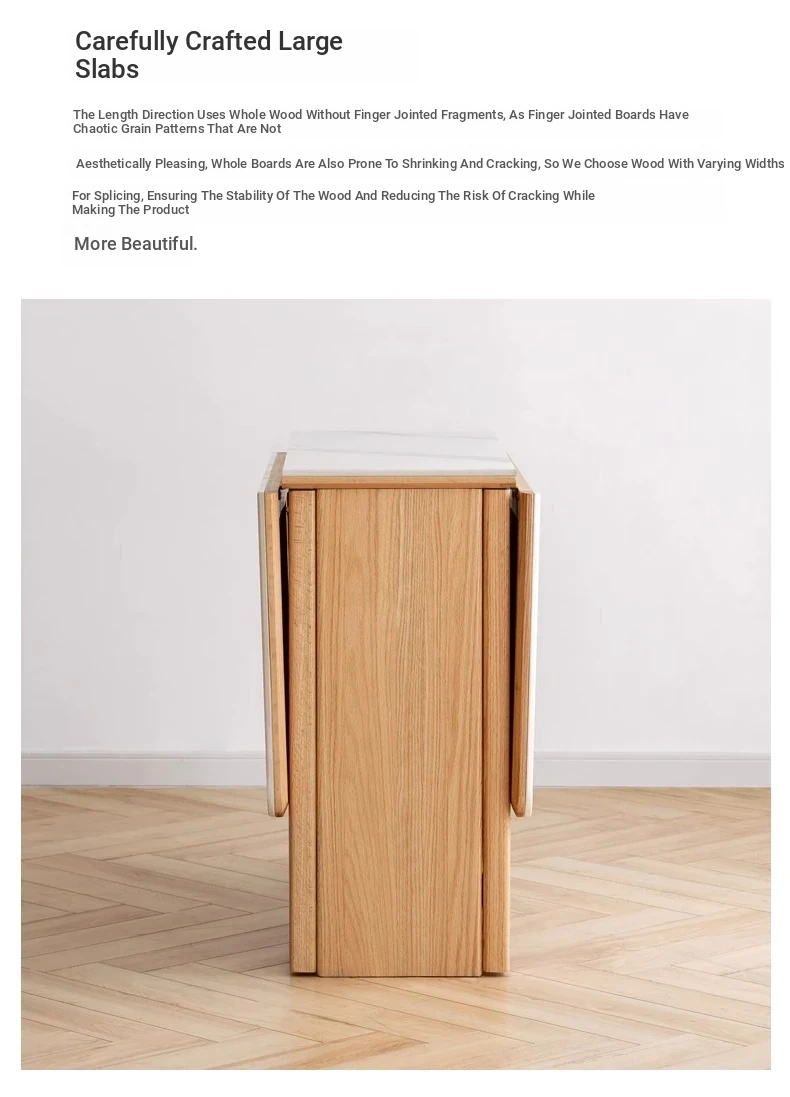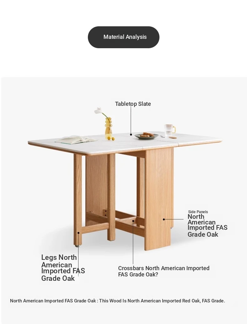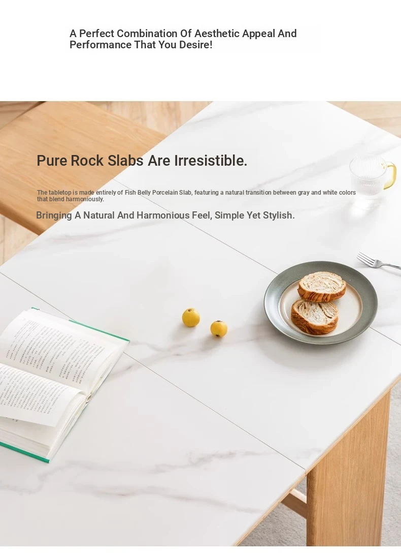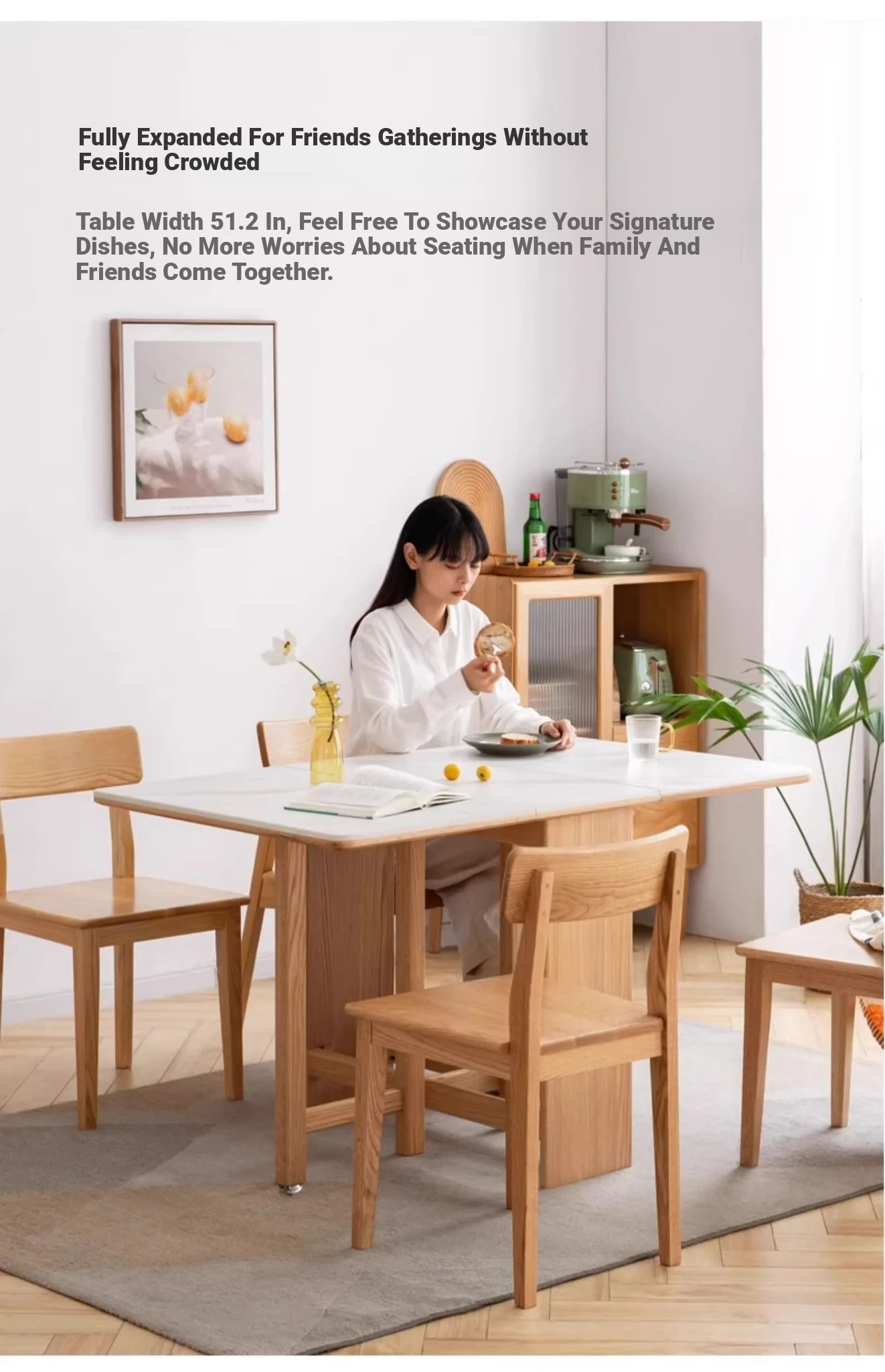 Genji Mu Yu Anani Solid Wood Dining Table with Rock Board - Modern Minimalist Oak Folding Table for Small Spaces