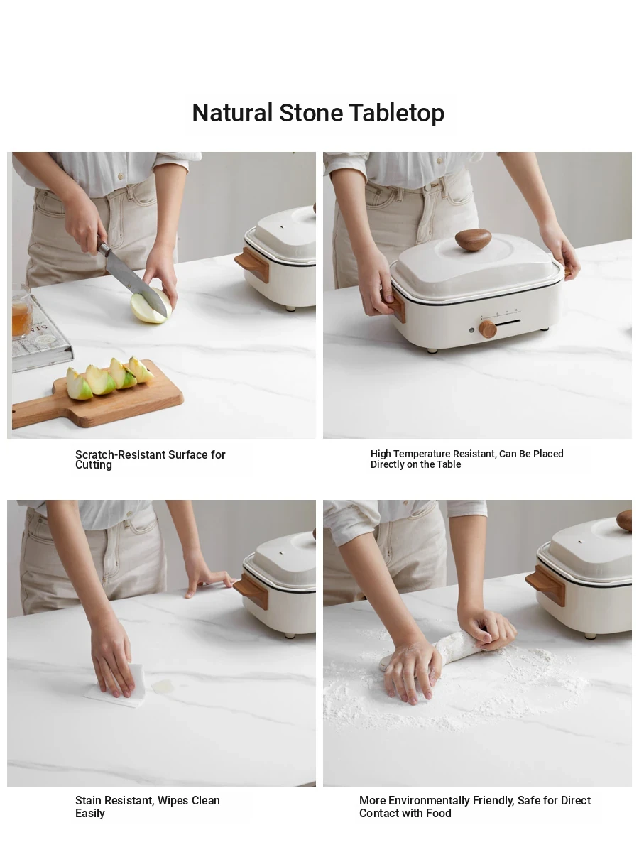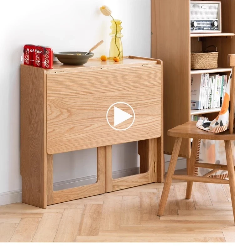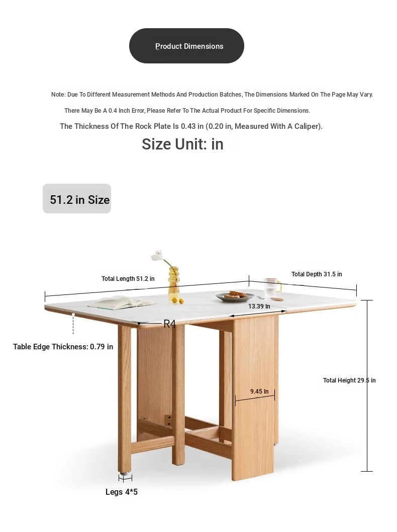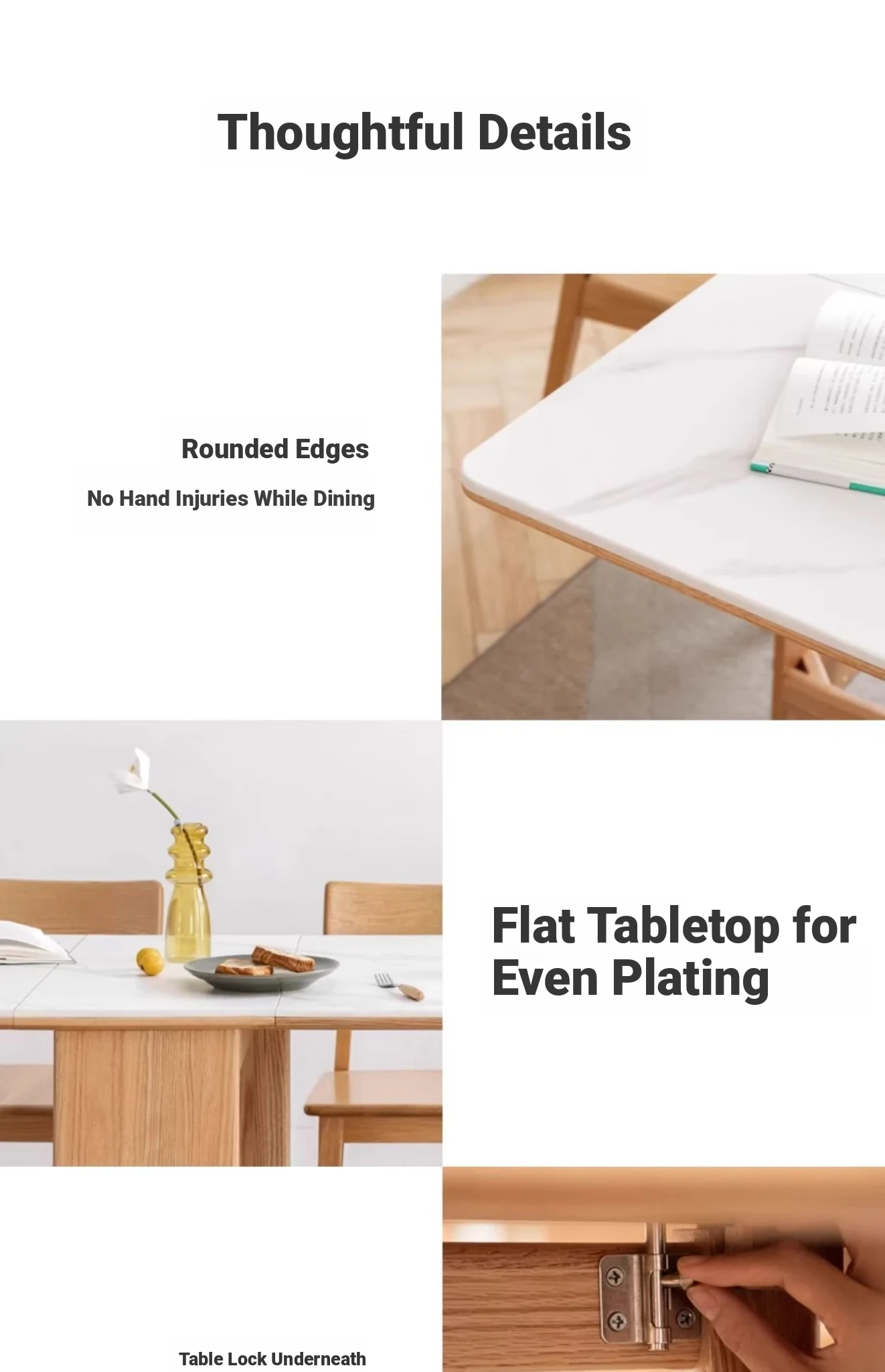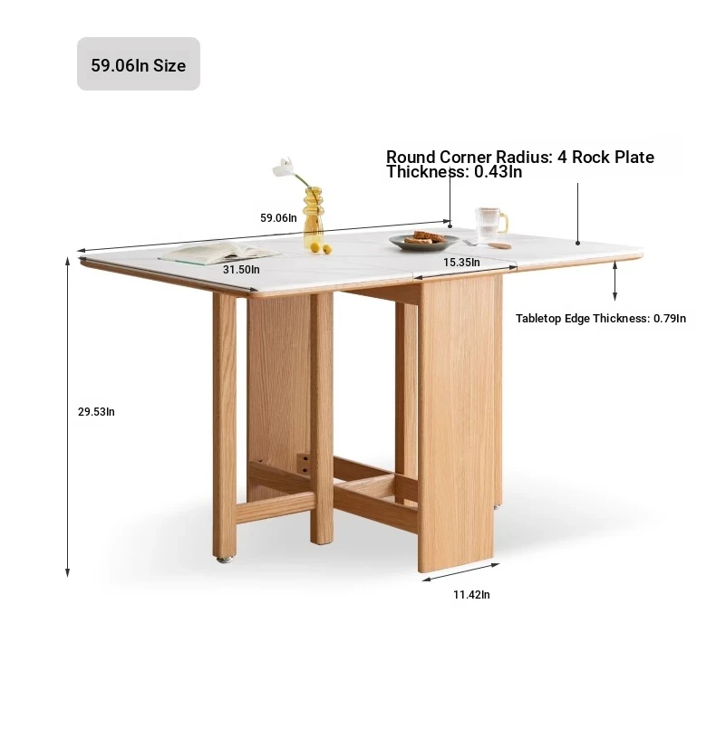 Genji Mu Yu Anani Solid Wood Dining Table with Rock Board - Modern Minimalist Oak Folding Table for Small Spaces