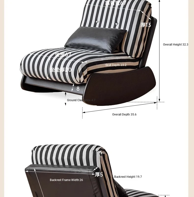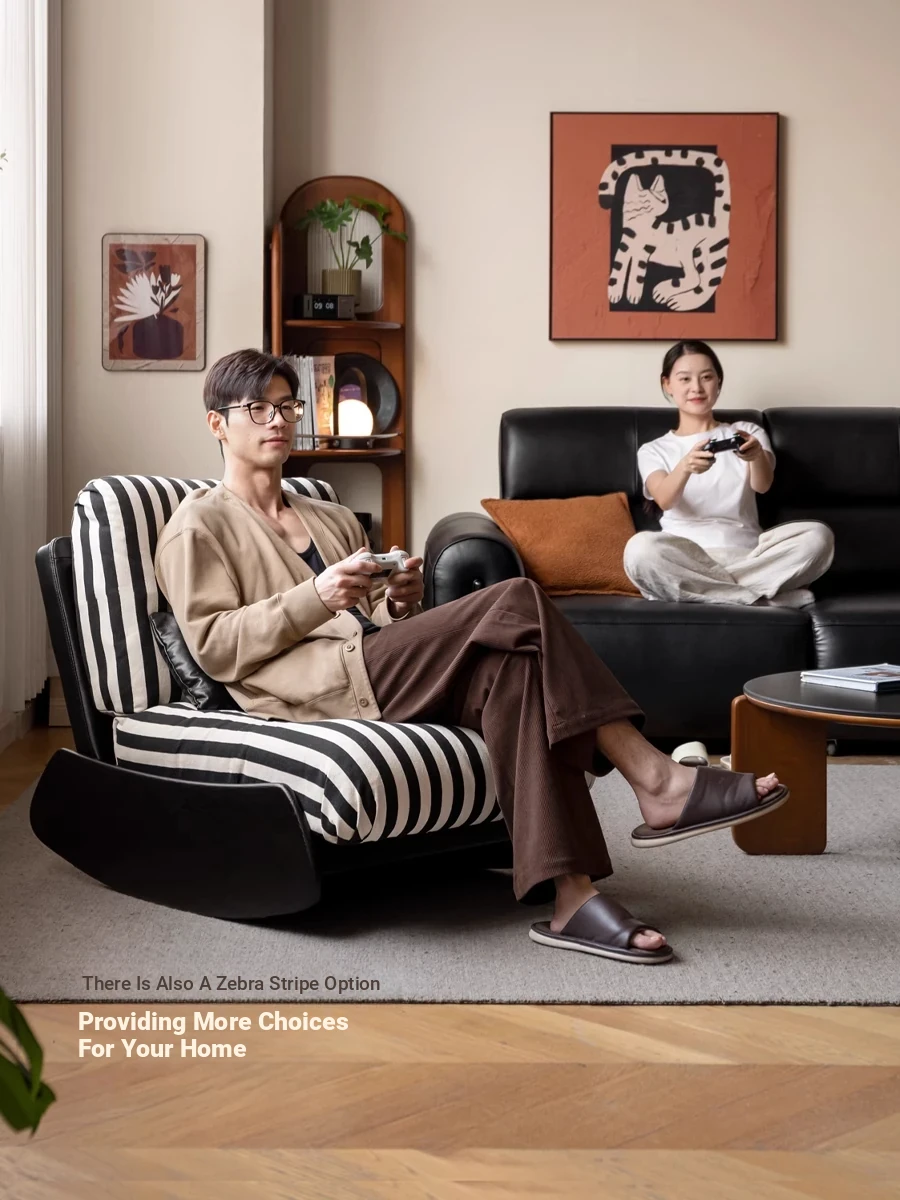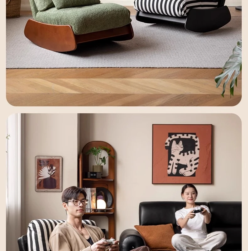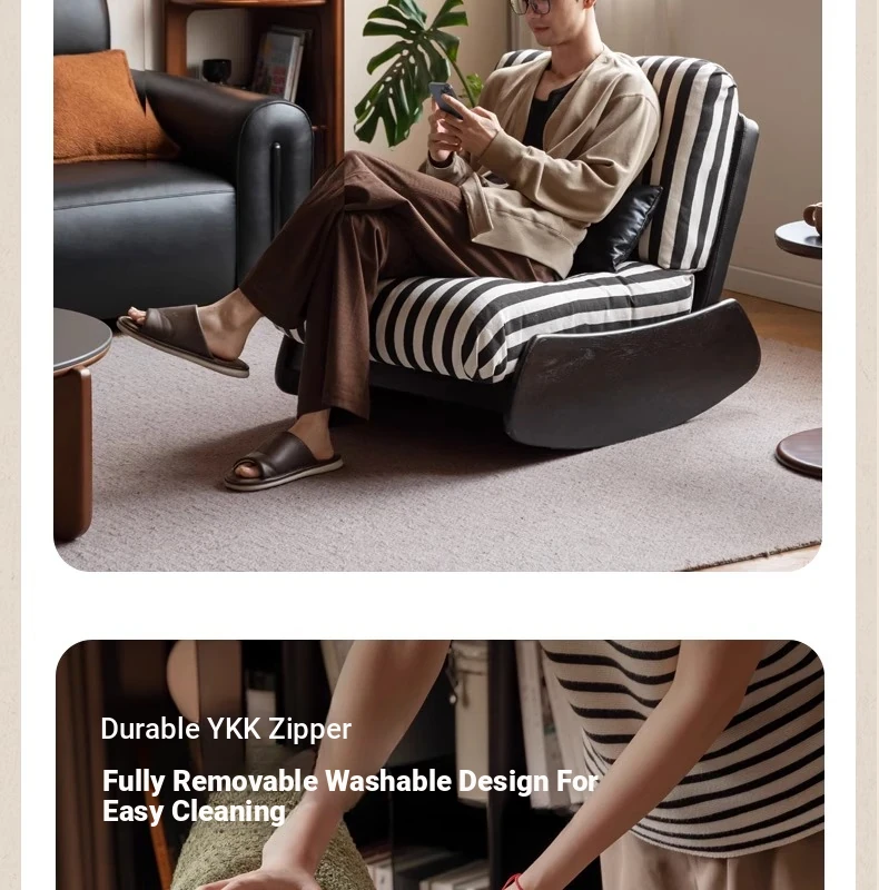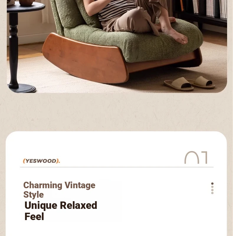Genji Mu Yu Anani Solid Wood Sofa Chair - Vintage Style Lazy Sofa for Living Room and Balcony, Retro Home Leisure Chair