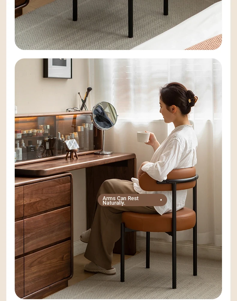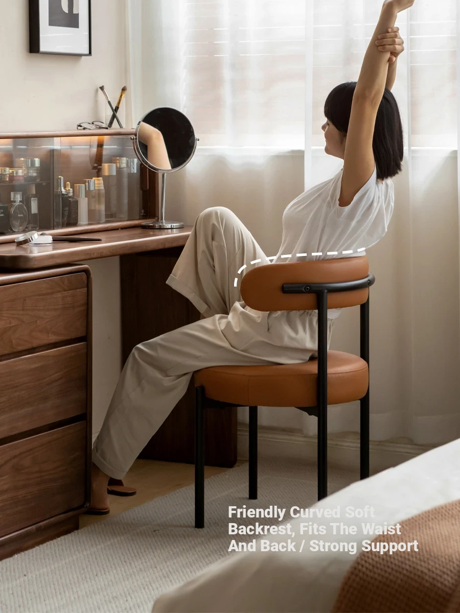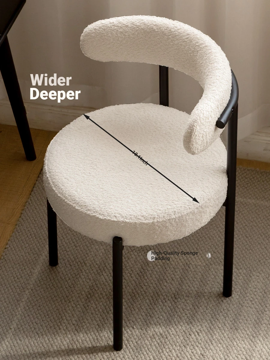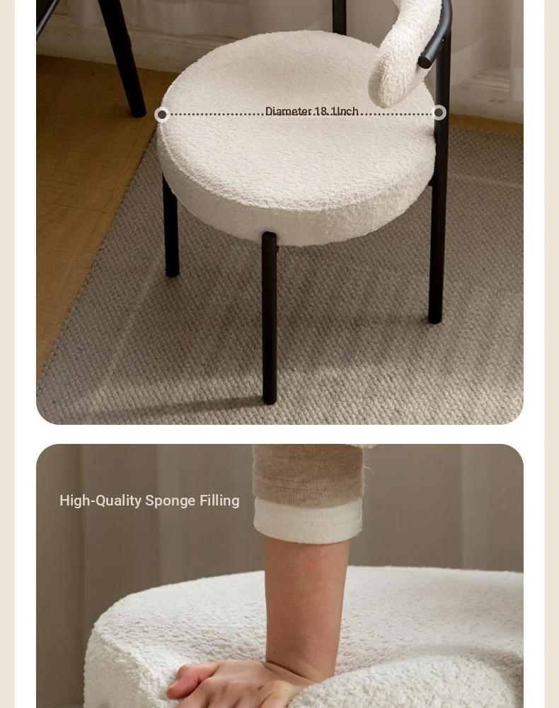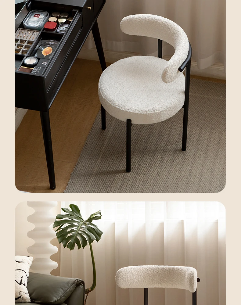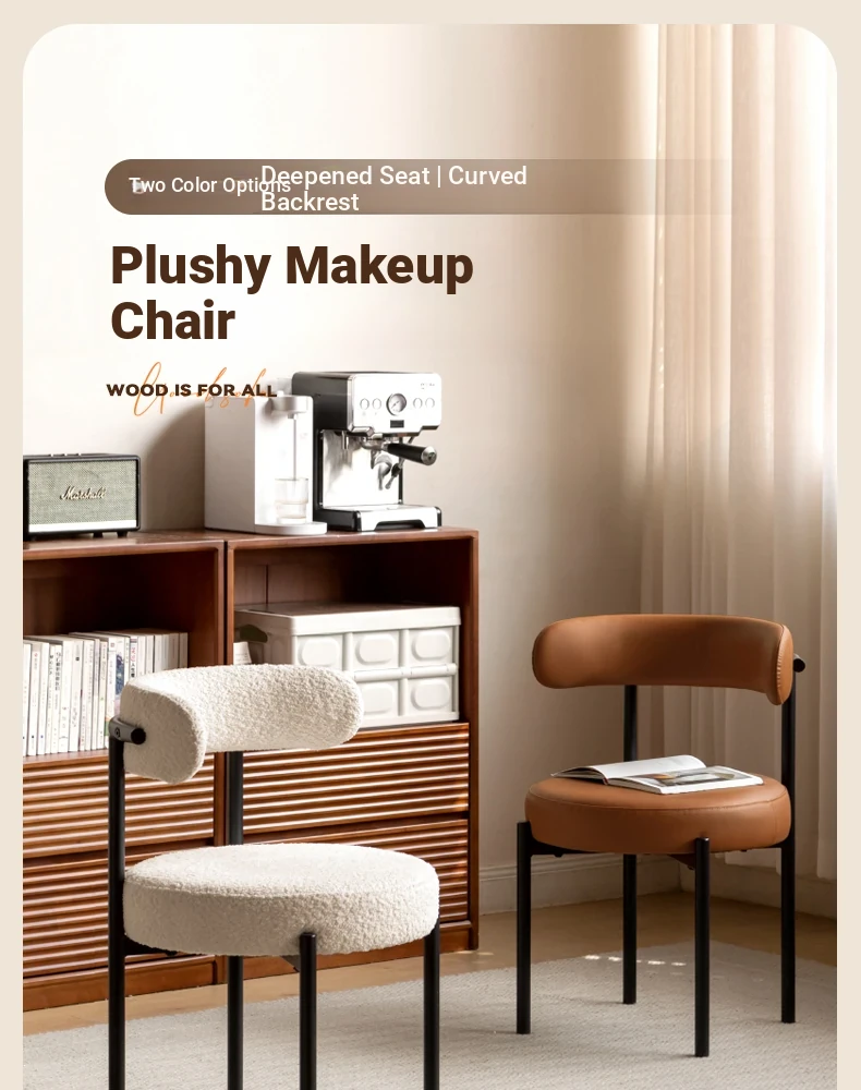 Genji Wood Anani Makeup Chair - Creamy Aesthetic Bedroom Vanity Stool, Elegant White Backrest Chair for Girls