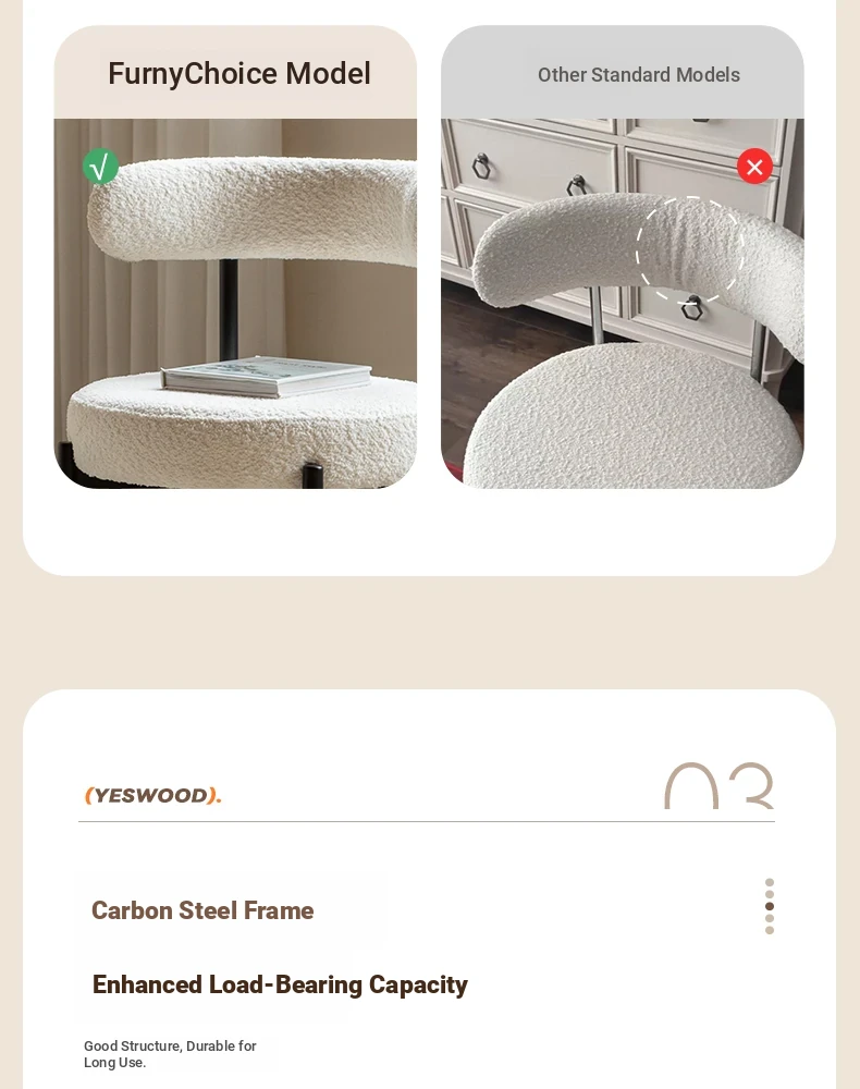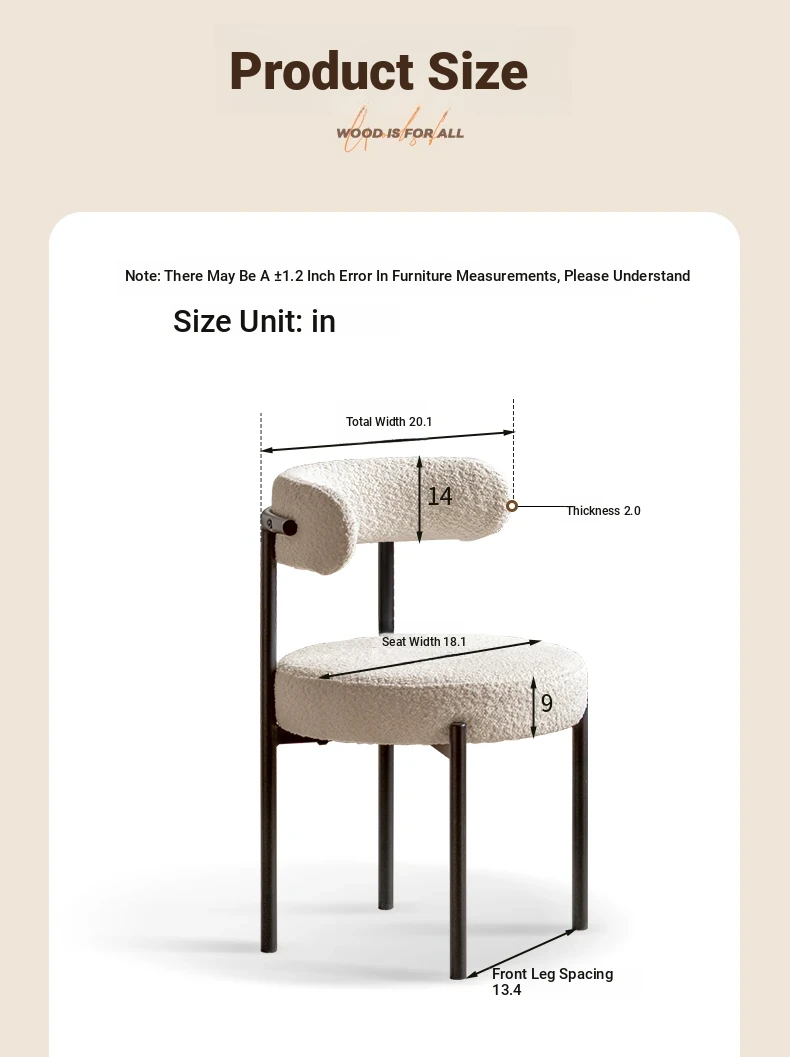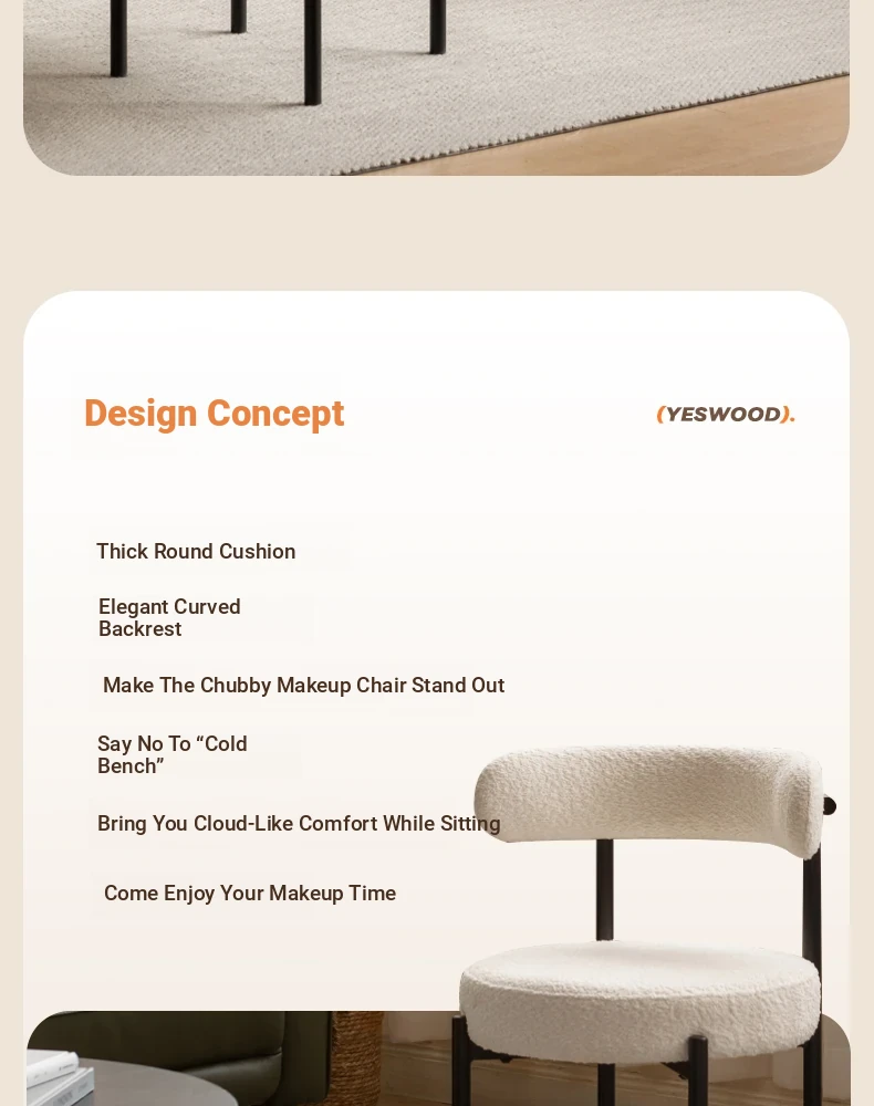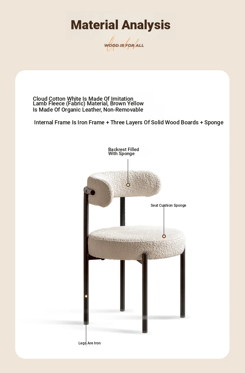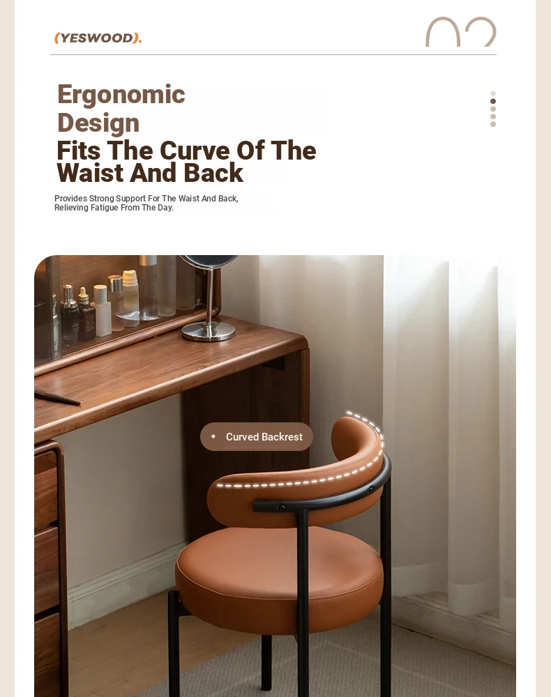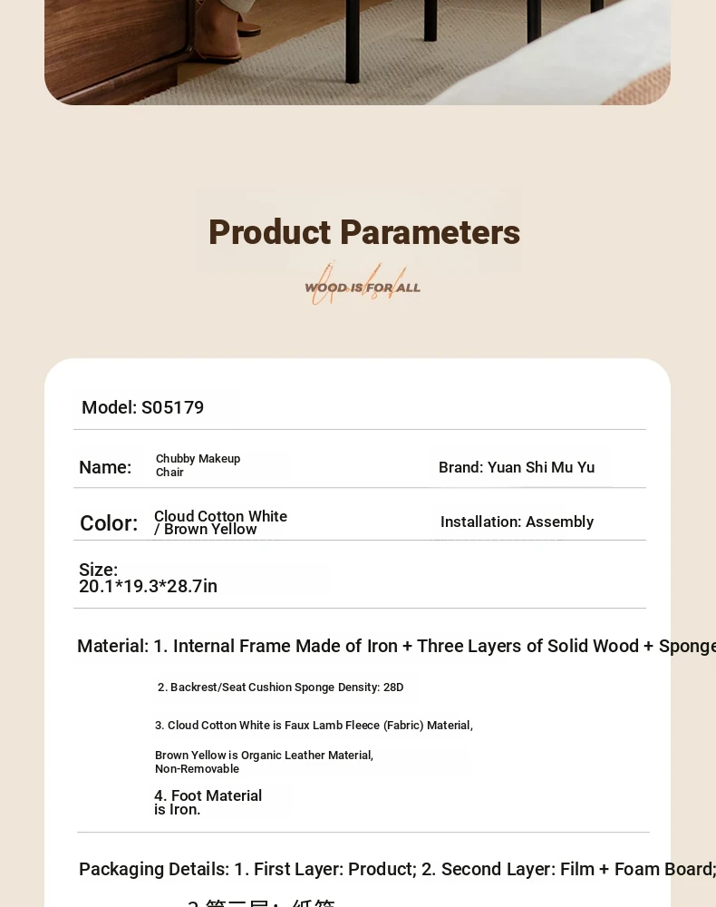 Genji Wood Anani Makeup Chair - Creamy Aesthetic Bedroom Vanity Stool, Elegant White Backrest Chair for Girls