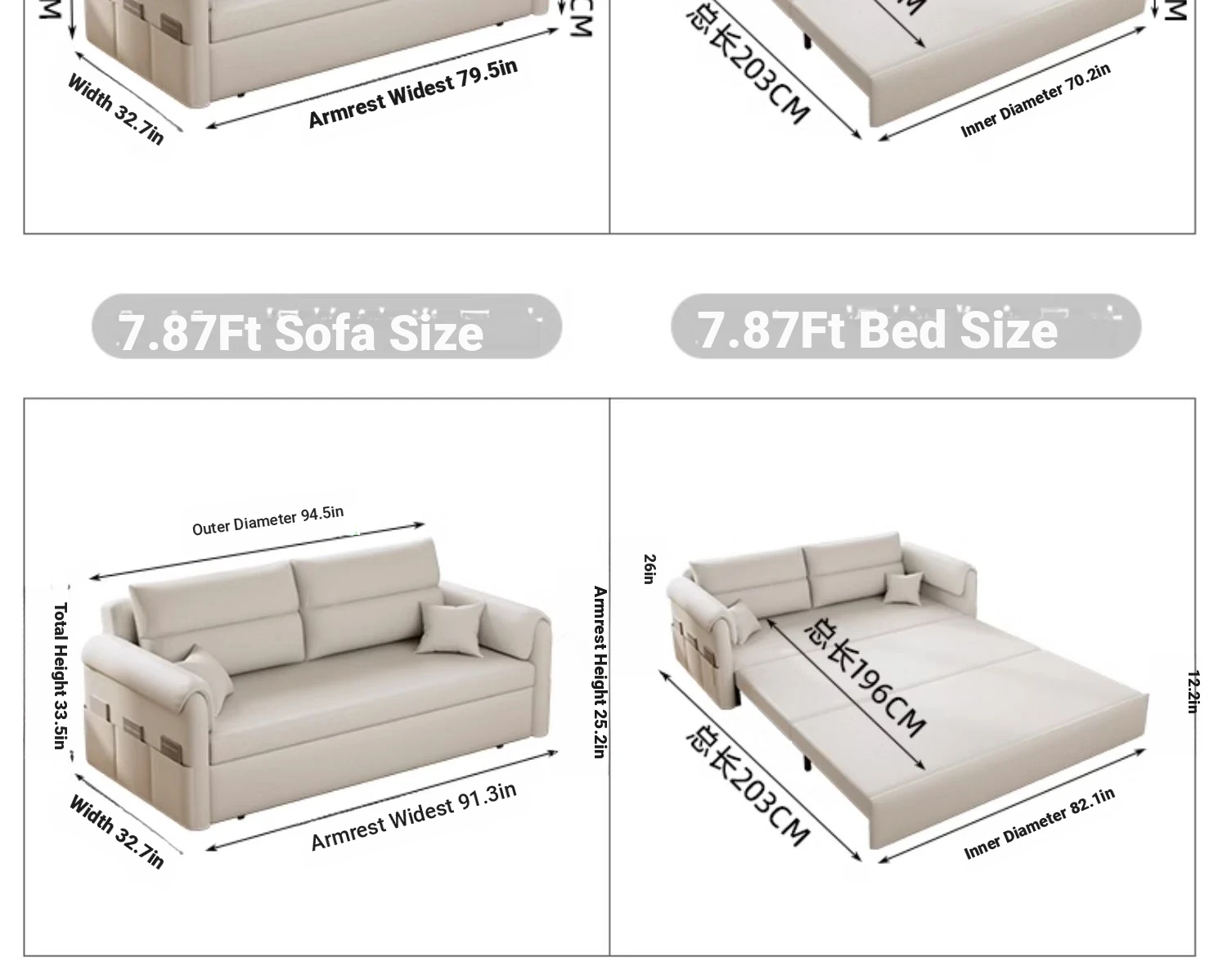 Outer diameter 94.49 in [2.76in sponge +0.79in coconut palm] + storage