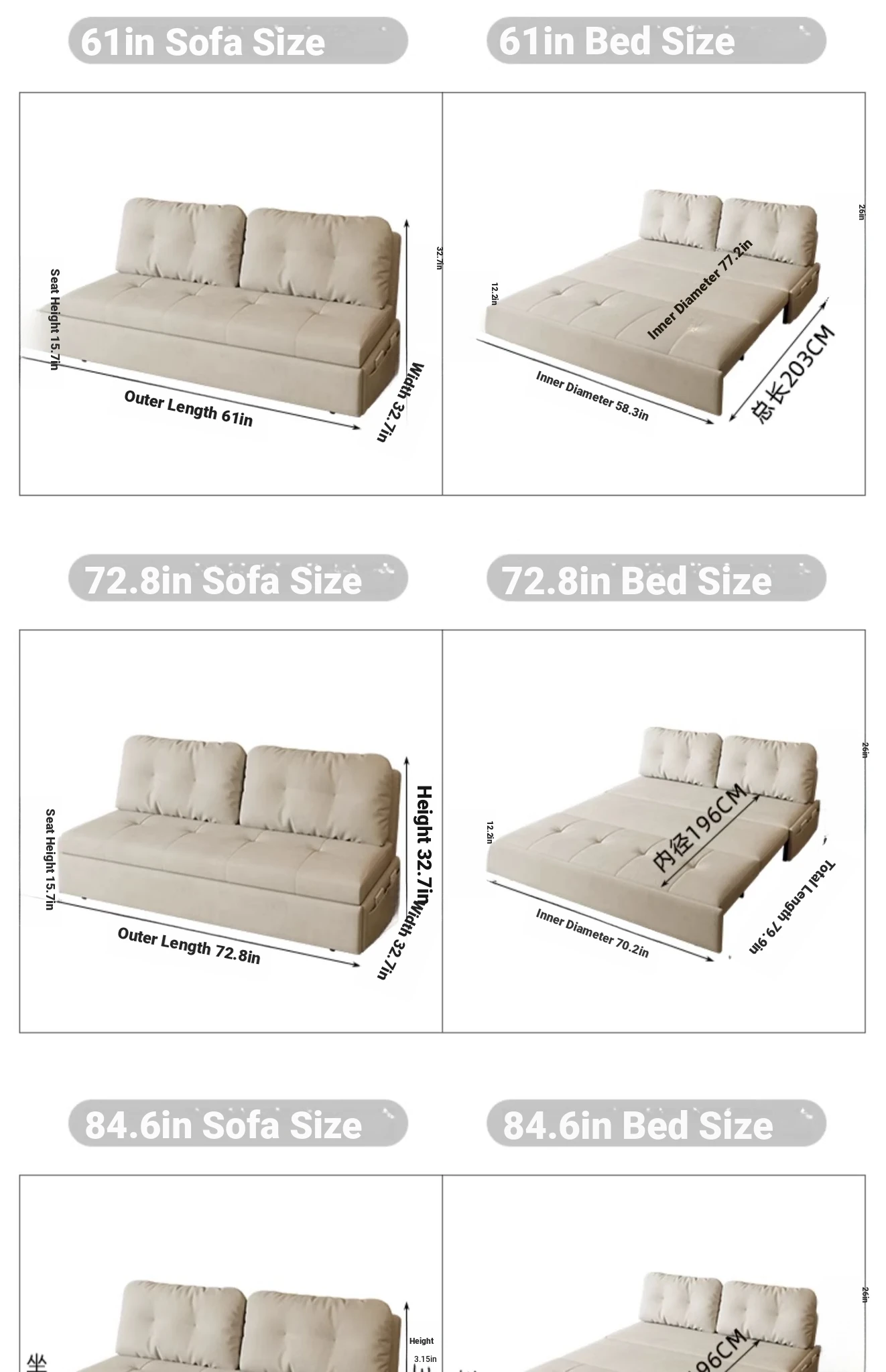 Outer diameter 84.65 in [2.76in sponge +0.79in latex] + storage