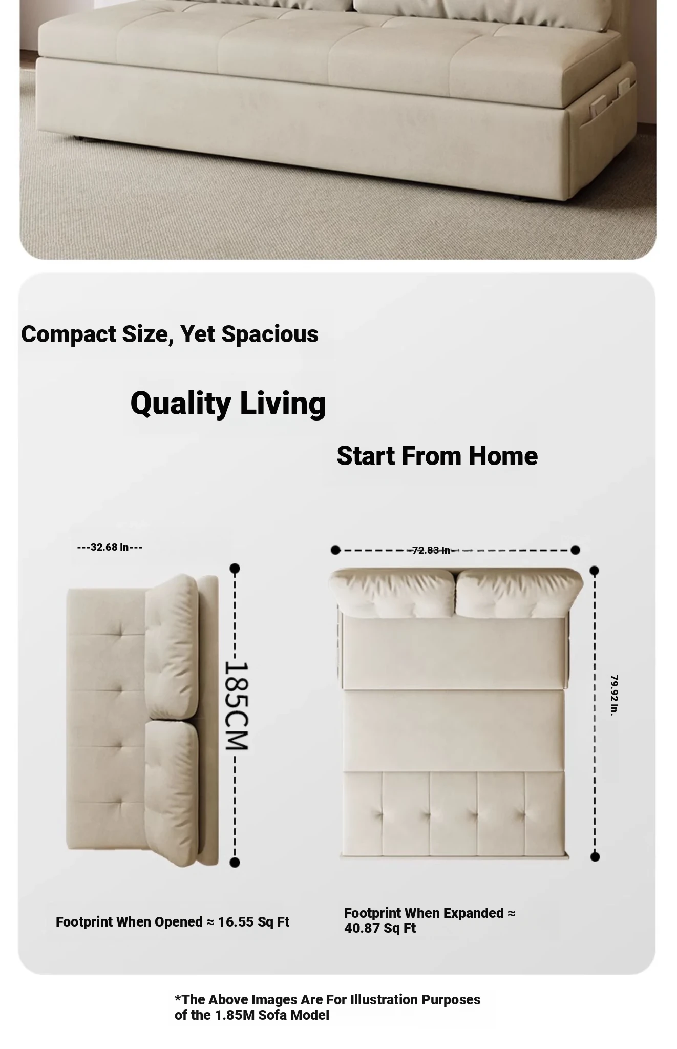 Outer diameter 84.65 in [2.76in sponge +0.79in coconut palm] + storage