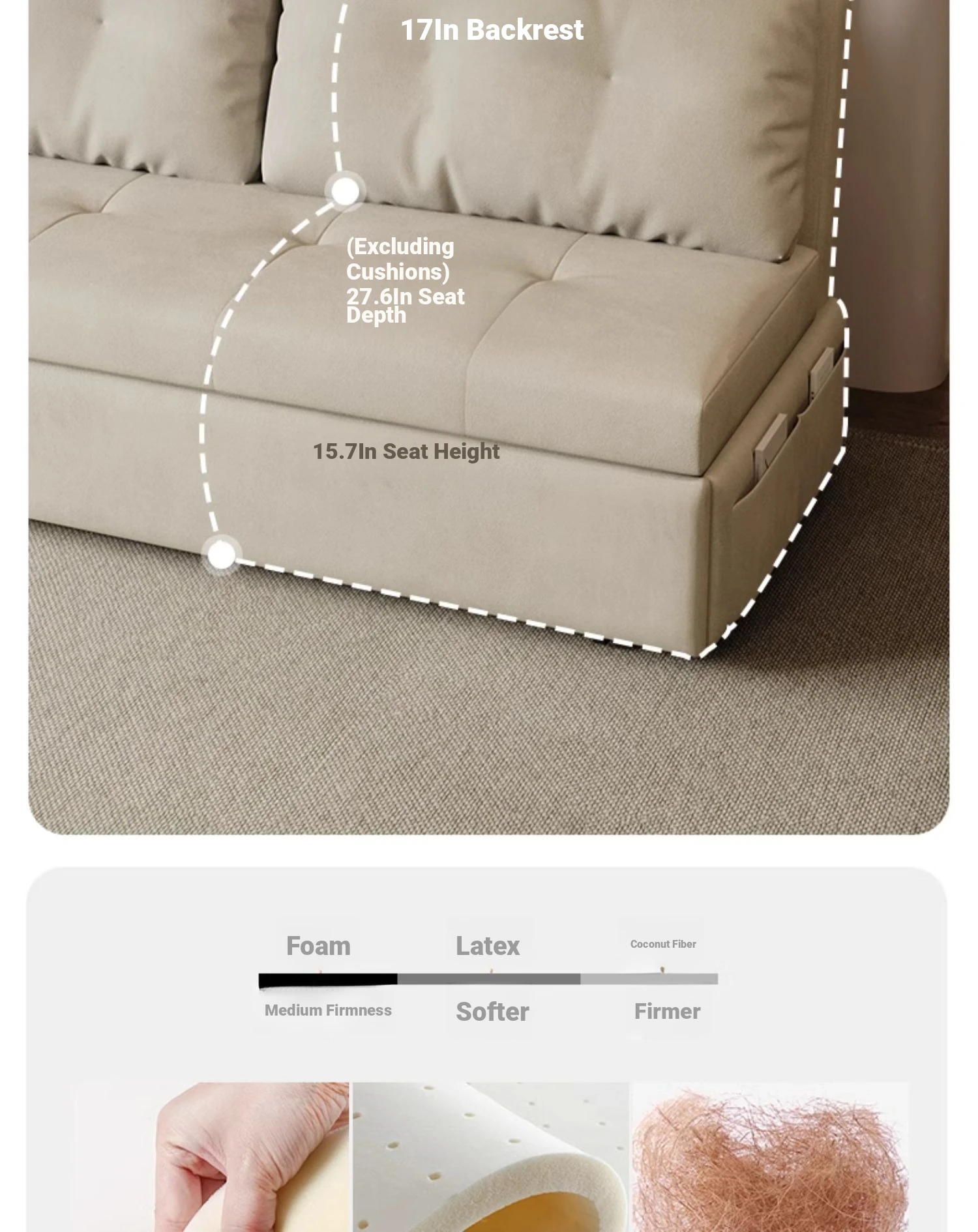 Outer diameter 61.02 in [2.76in sponge +0.79in coconut palm] + storage