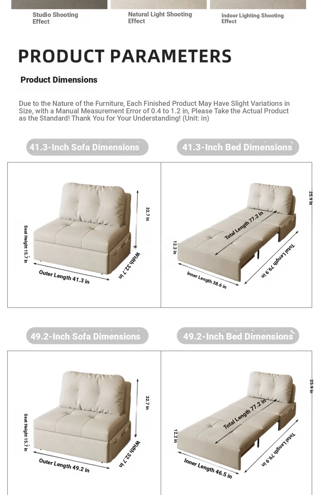 Outer diameter 41.34 in [2.76in sponge +0.79in coconut palm] + storage