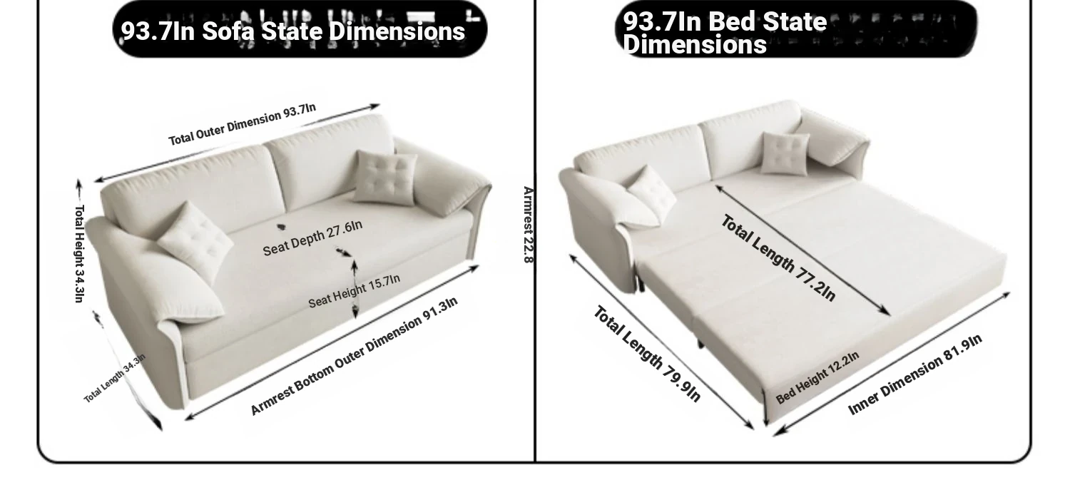 Outer diameter 93.70 in [2.76in sponge +0.79in latex] + storage