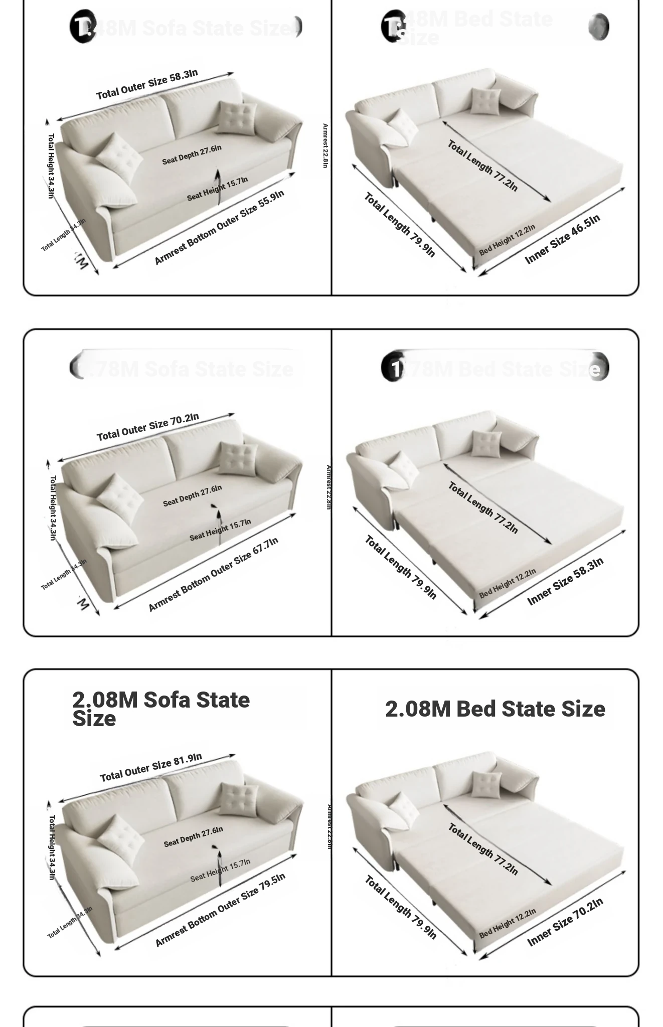 Outer diameter 81.89 in [2.76in sponge +0.79in coconut palm] + storage