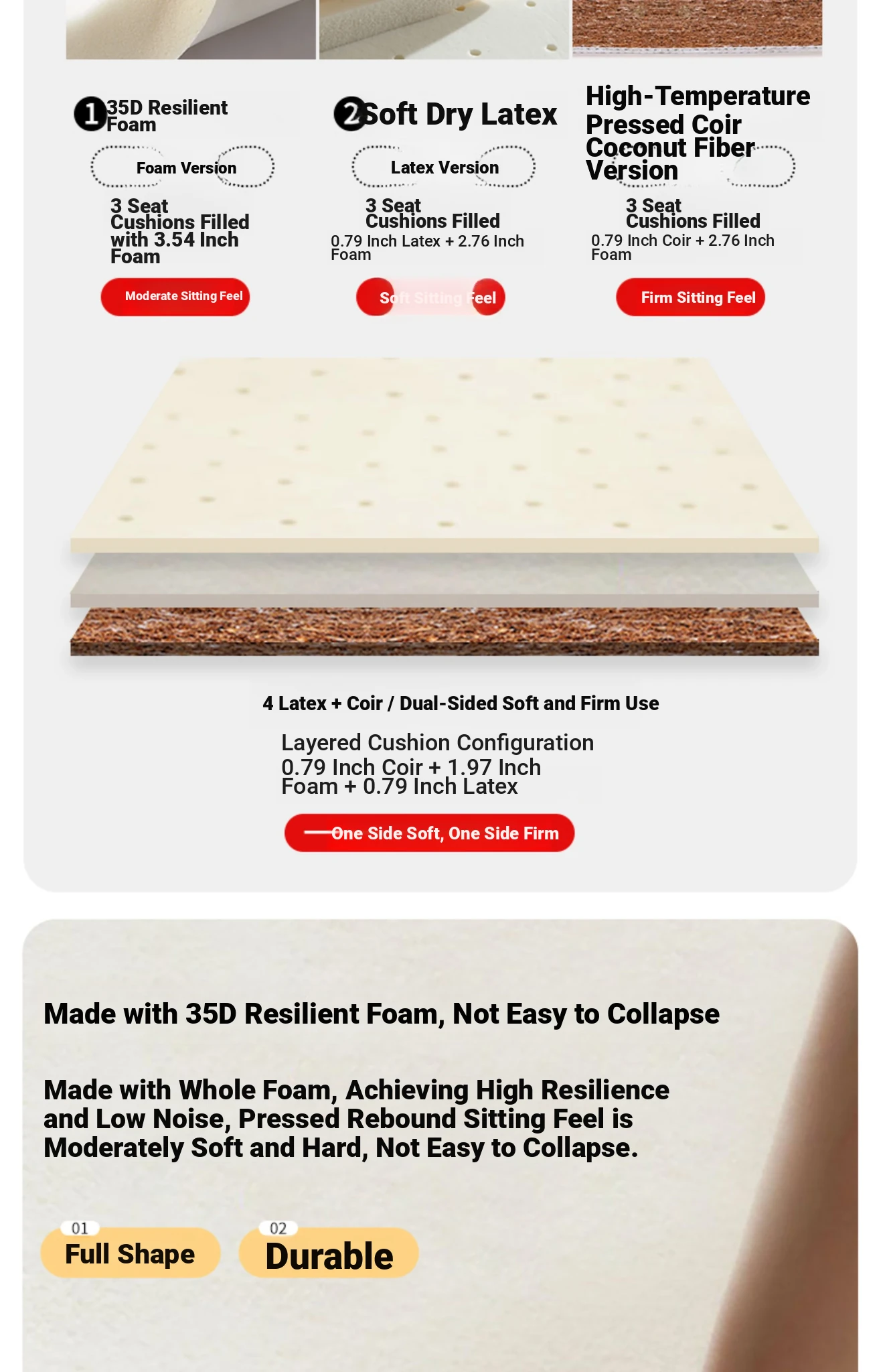 59.06 ins [2.76in sponge +0.79in coconut palm]](No storage)