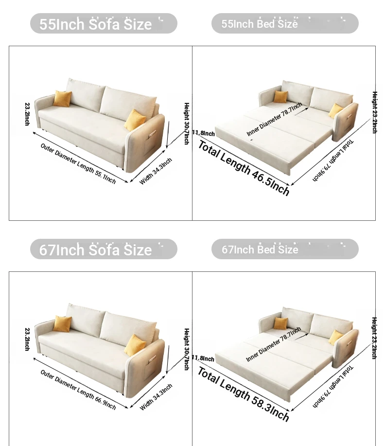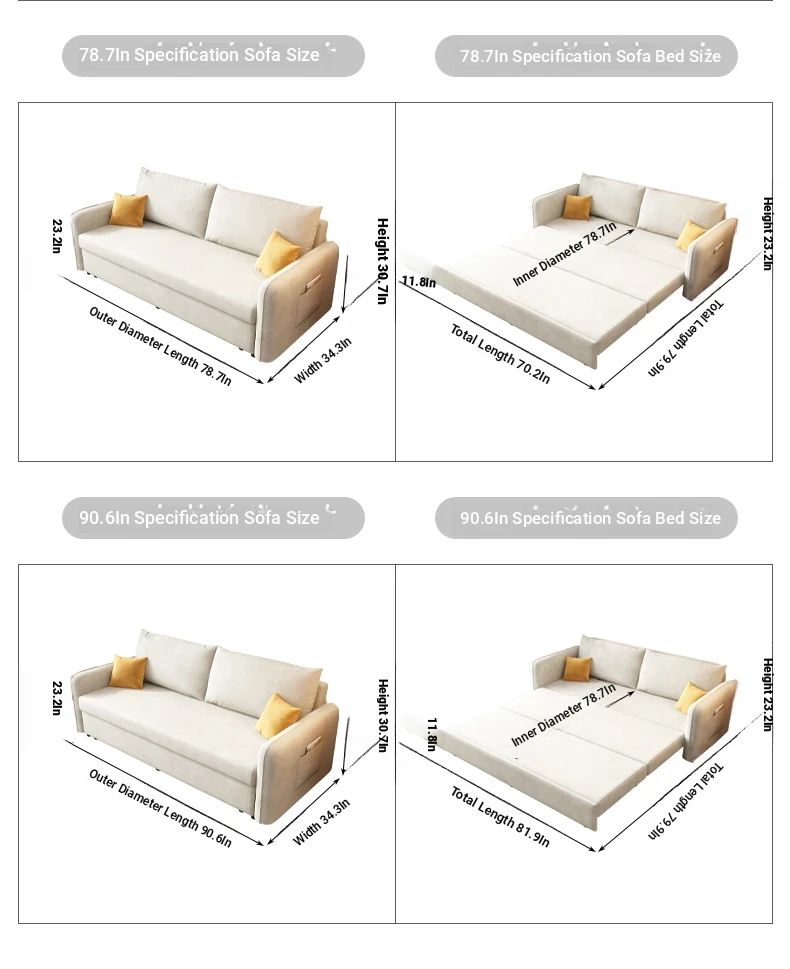 Outer diameter 78.74 in [2.76in sponge +0.79in latex] + storage