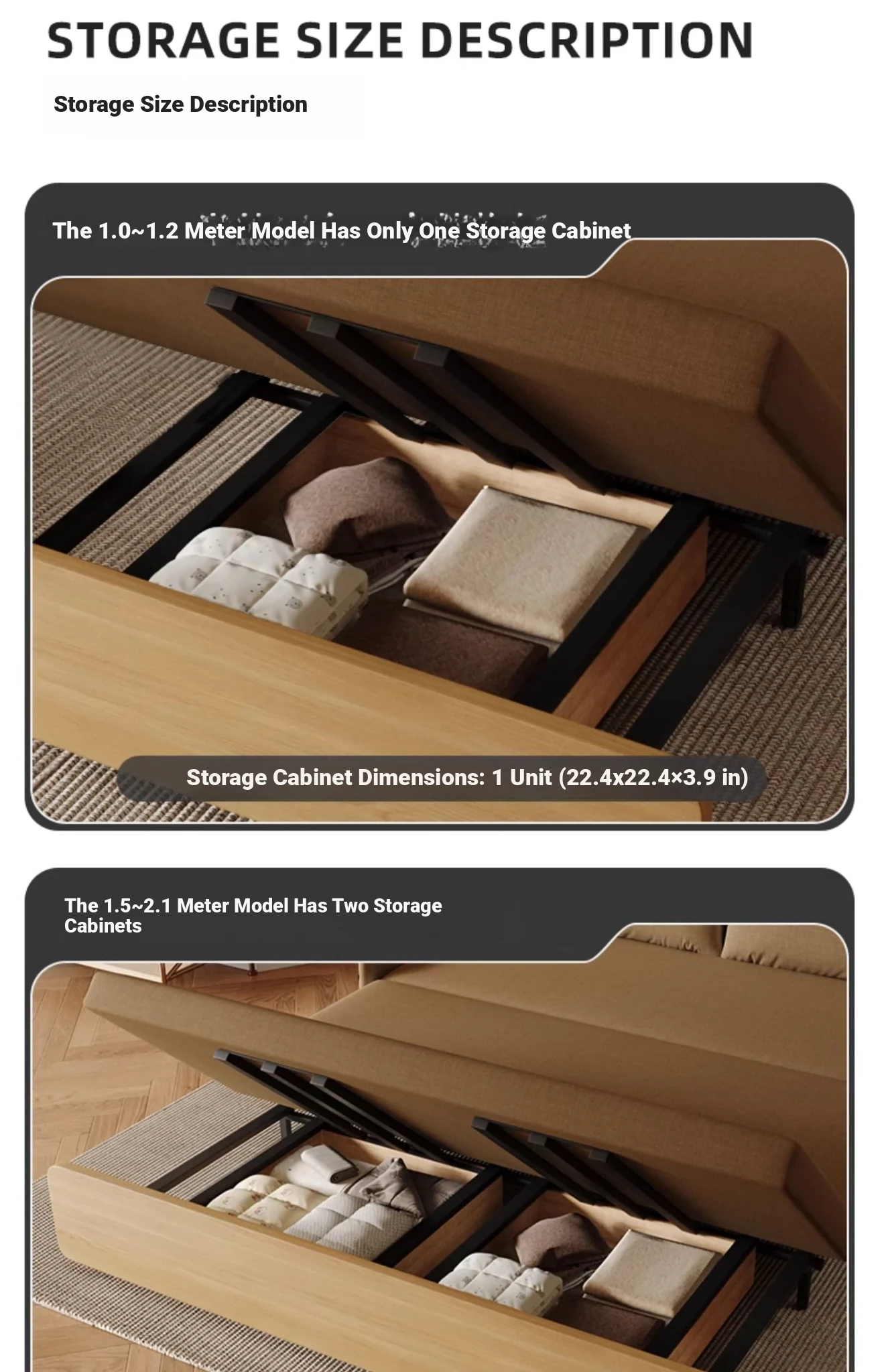 59.06in / 82.68in - Storage [22.44in*22.44in*3.94in] X2 (advising customer service plus 200)
