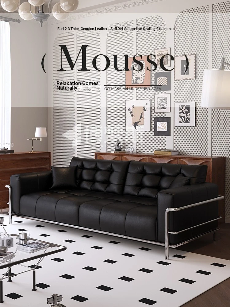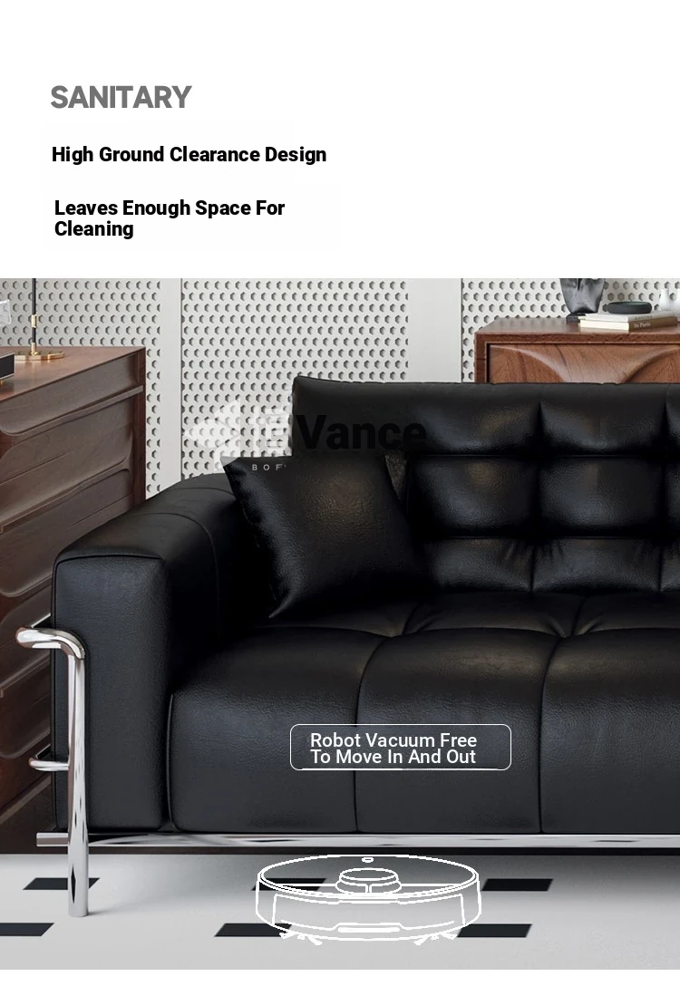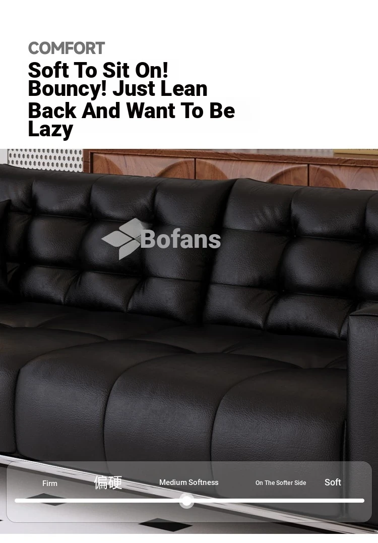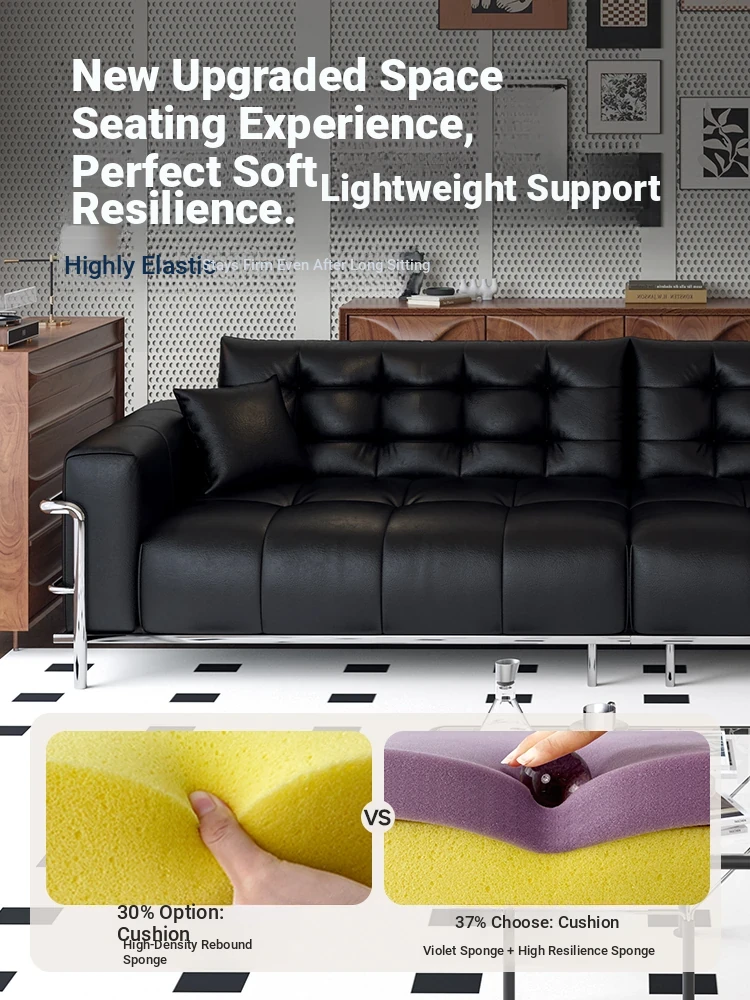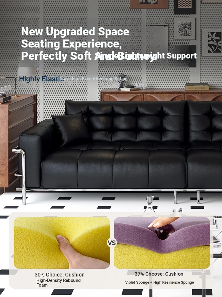 Italian Minimalist Black Bear Puff Real Leather Sofa - Modern High-Back, Feather-Filled Elevated Sofa for Stylish Living Rooms - Perfect Blend of Comfort and Elegance