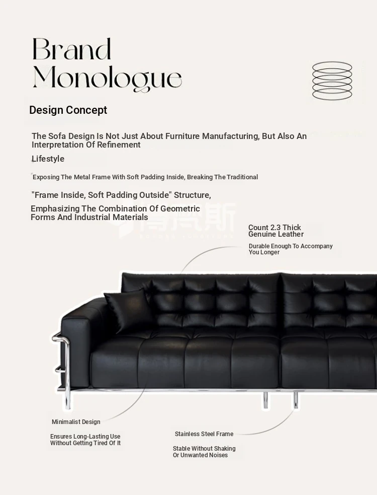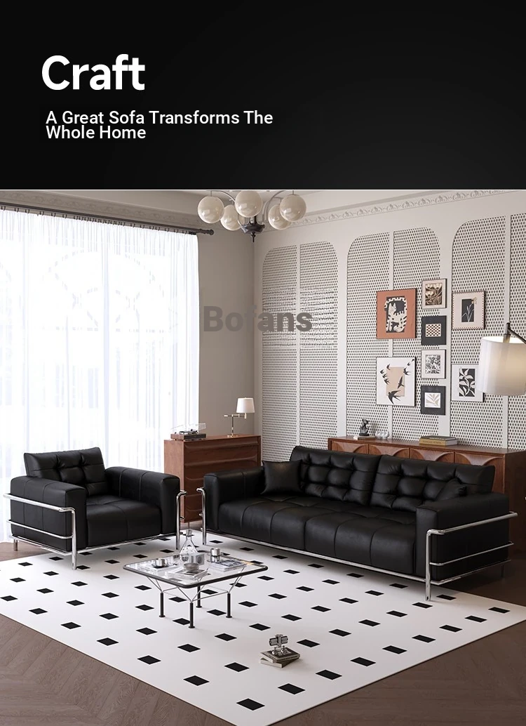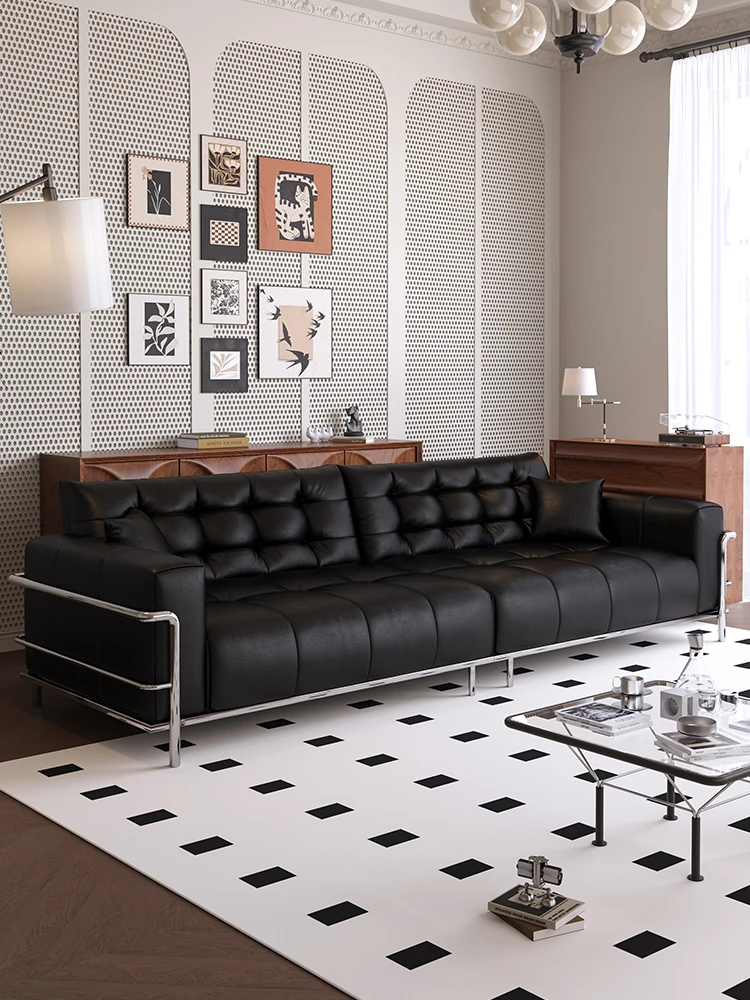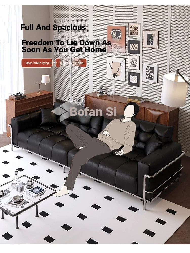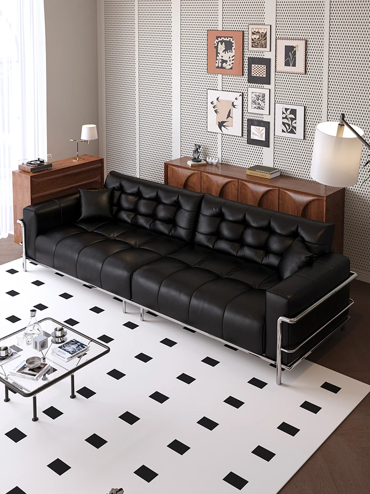 Italian Minimalist Black Bear Puff Real Leather Sofa - Modern High-Back, Feather-Filled Elevated Sofa for Stylish Living Rooms - Perfect Blend of Comfort and Elegance