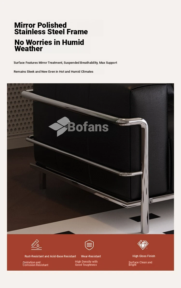LC3 Single 51.18 in [Stainless Steel Frame + Violet Sponge + 45D High Density Rebound Sponge Cushion]]