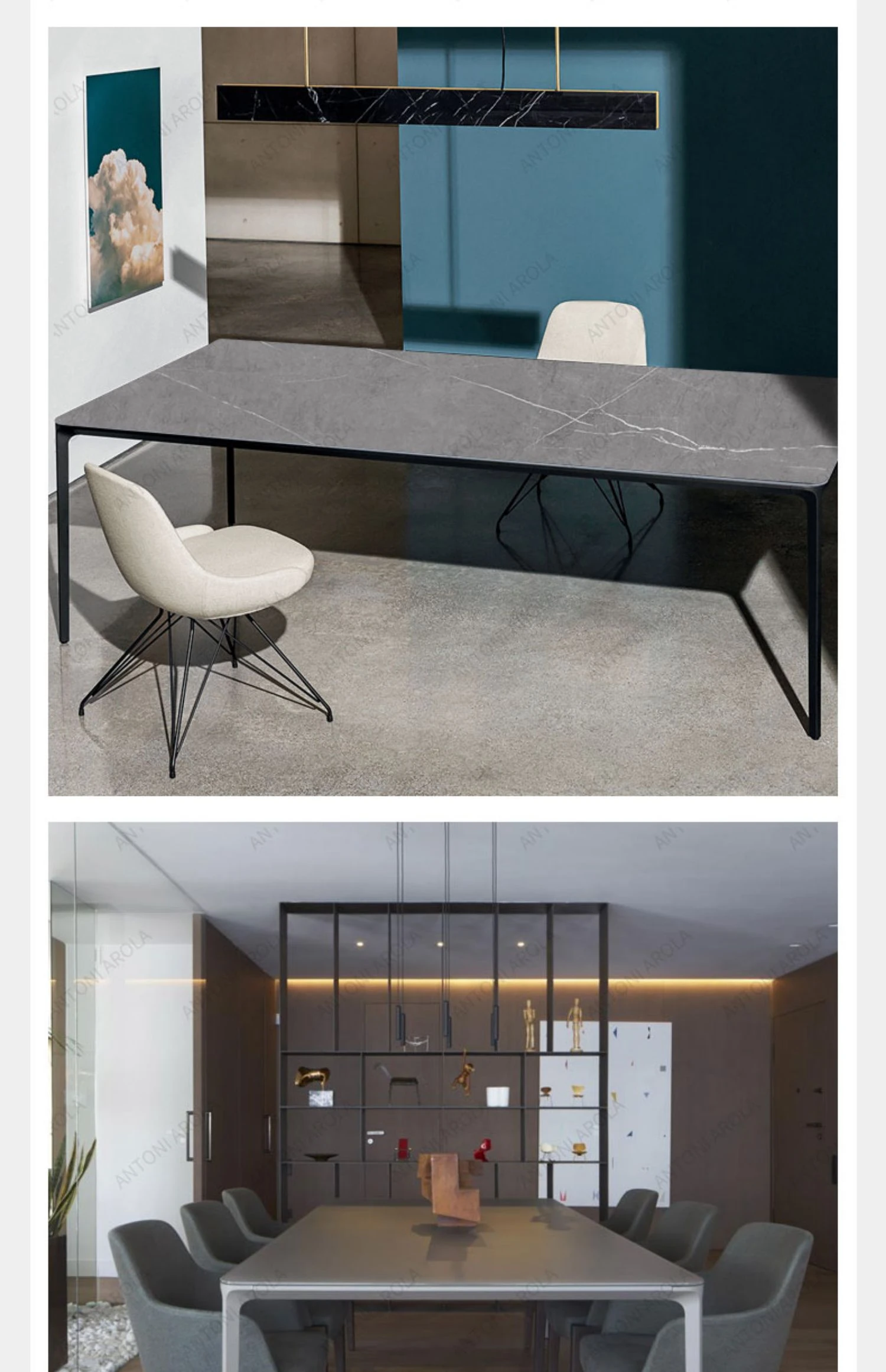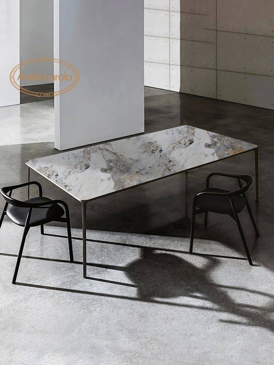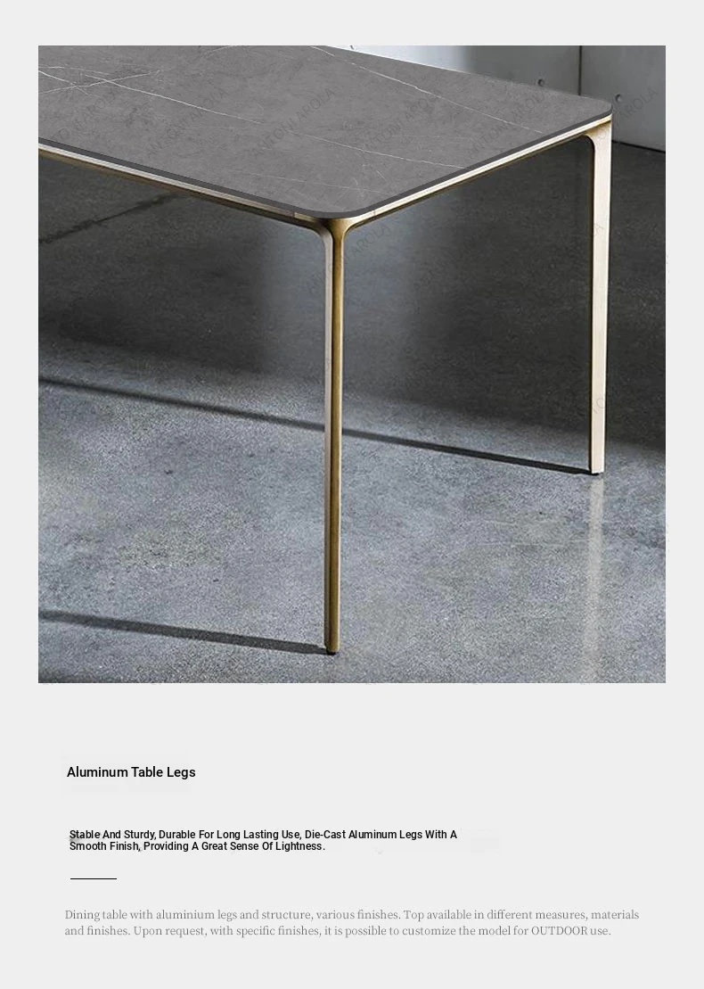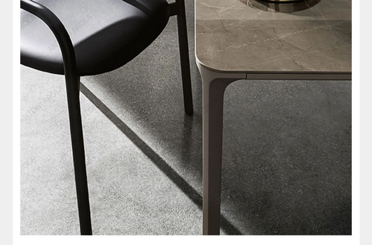 Italian Minimalist Dining Furniture Set - Imported Rock Plate Dining Table and Chair Combination for Small Spaces, Rectangular Aluminum Alloy Dining Table