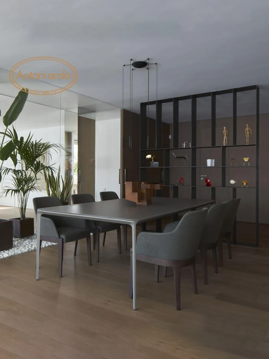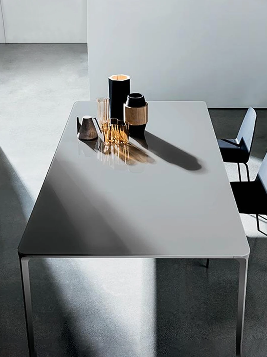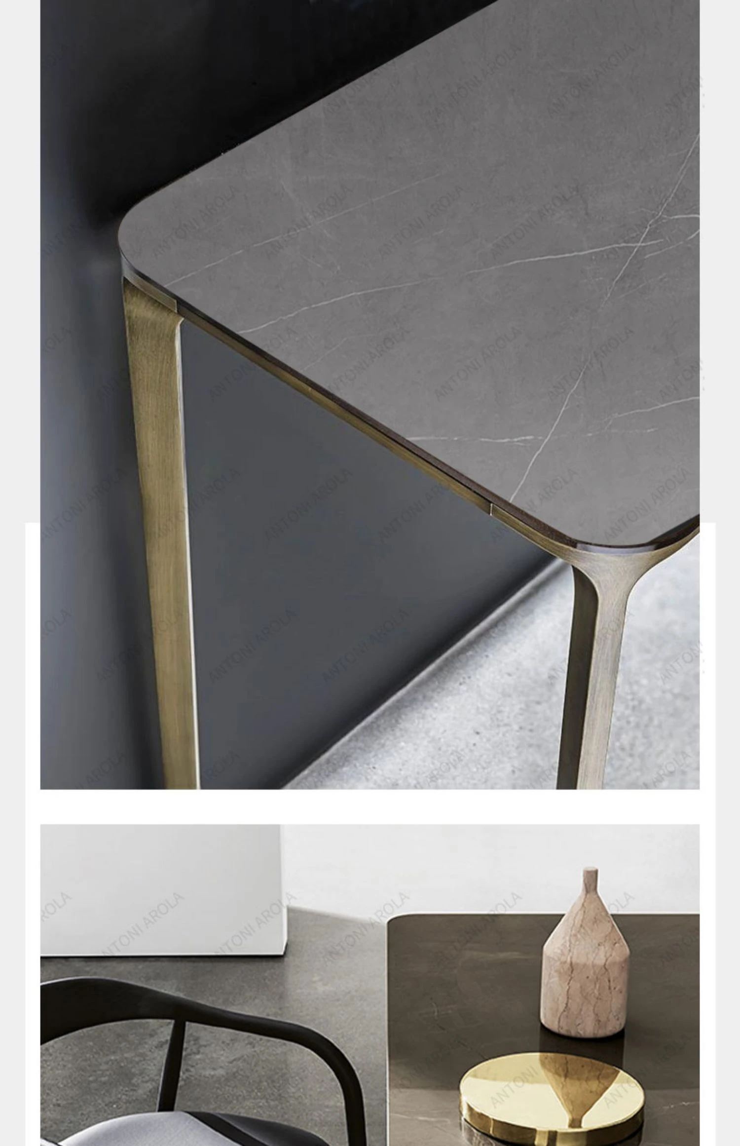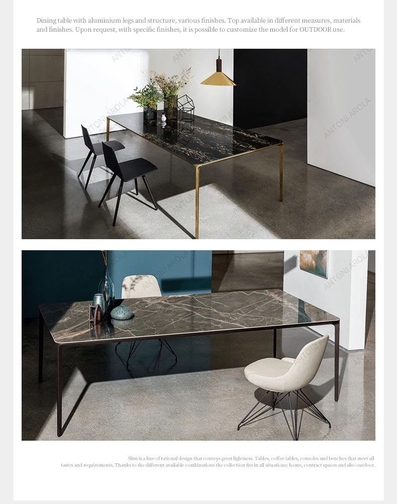 Italian Minimalist Dining Furniture Set - Imported Rock Plate Dining Table and Chair Combination for Small Spaces, Rectangular Aluminum Alloy Dining Table