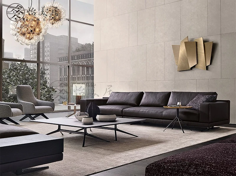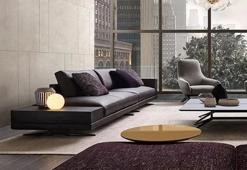 Italian Minimalist Luxury Sofa for Small Living Rooms - Perfect for Showroom Reception Areas and Designer Model Rooms, Fully Furnished with Style and Comfort.