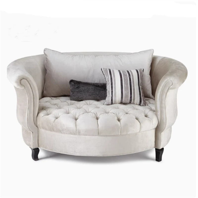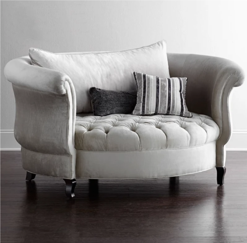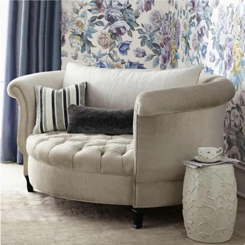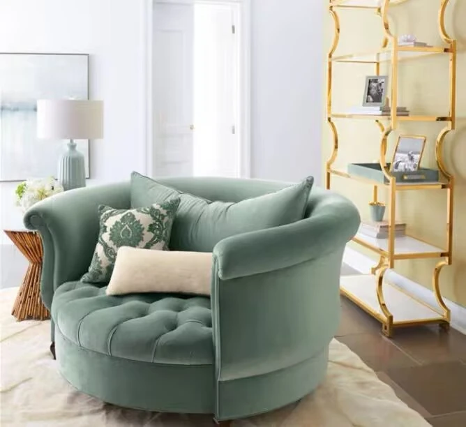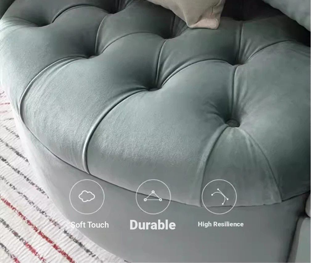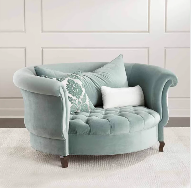 Italian Style Single Sofa - Curved Design, Upholstered in Luxurious Blue Velvet with Creative Button-Tufting - Perfect for Living Rooms, Bedrooms, and Relaxation Spaces. Ideal for Stylish Lounges and Cozy Nooks!