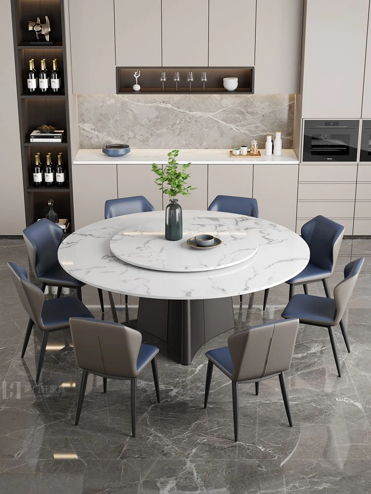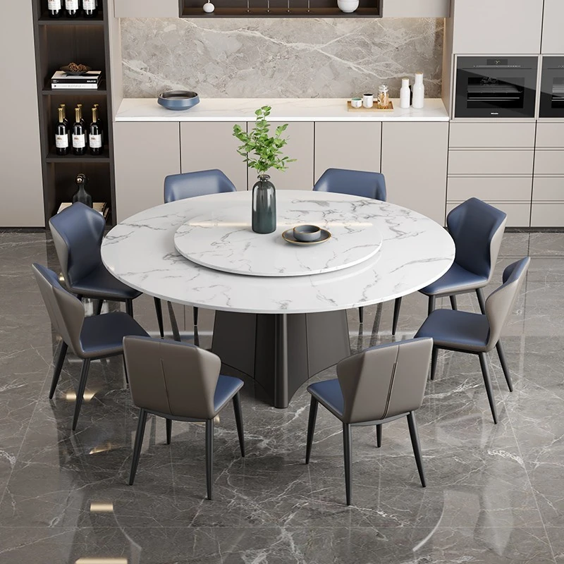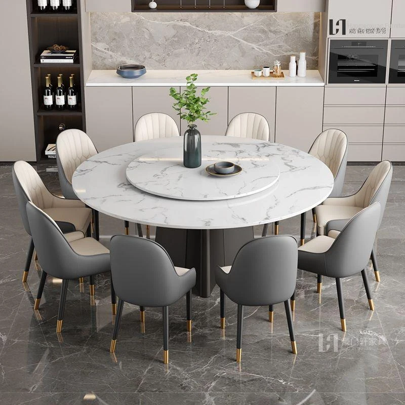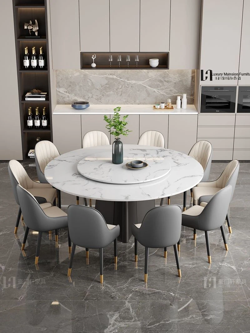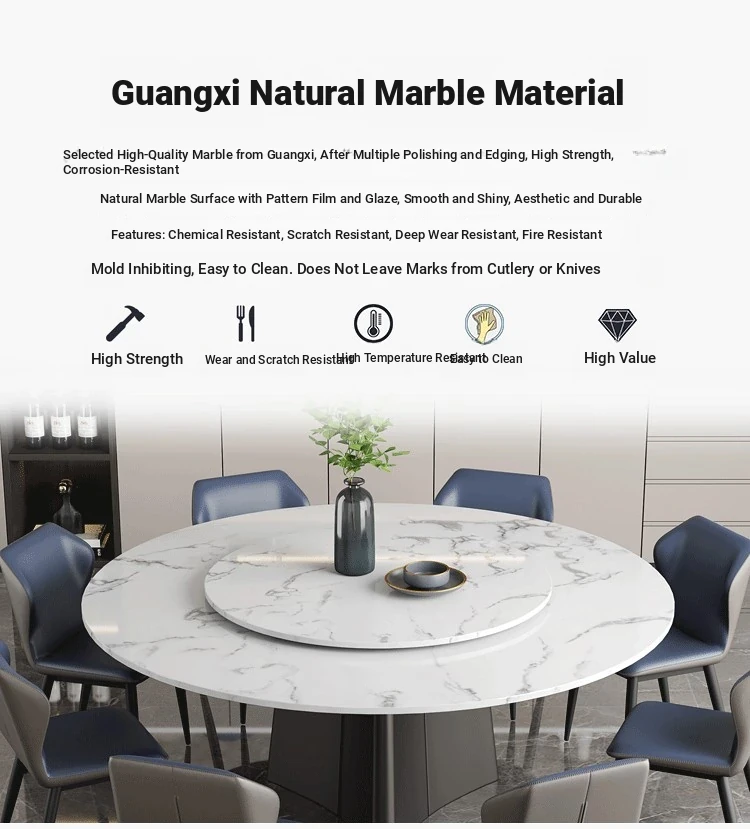 Italian-Inspired Luxury Marble Dining Table Set – 1.8m Round Rotating Table for Home, Perfect for 10 People – Ideal for Hotels and Family Gatherings