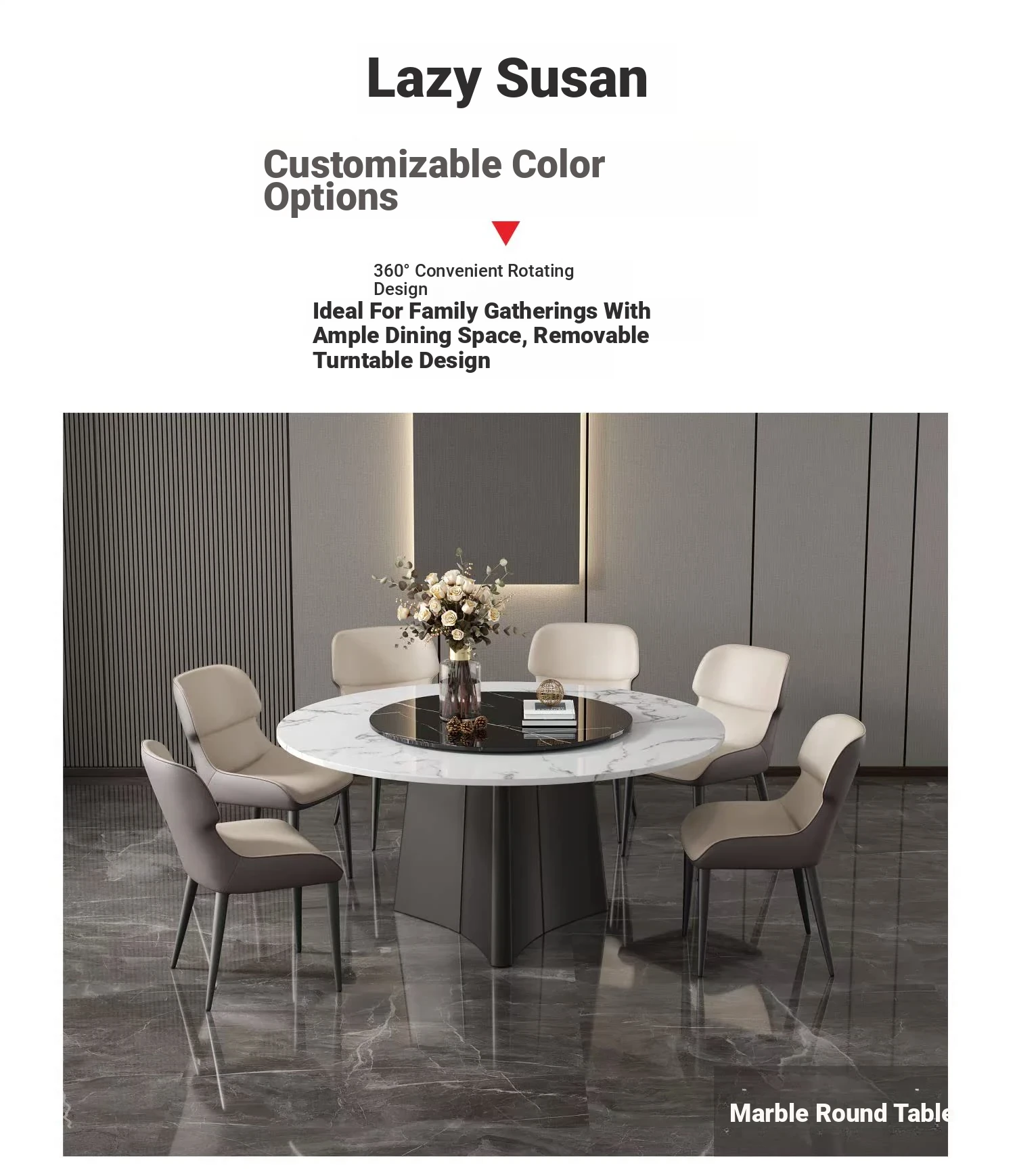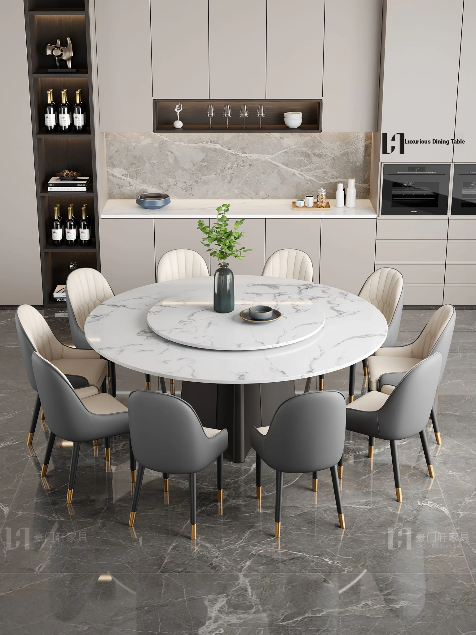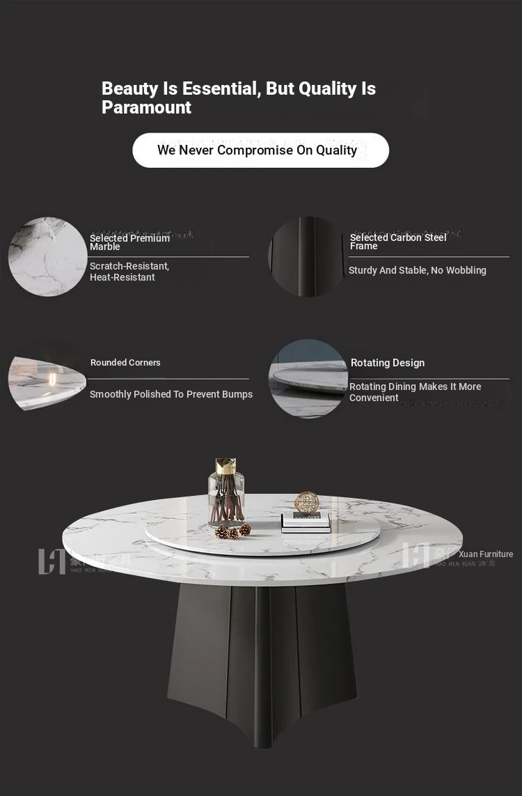 Italian-Inspired Luxury Marble Dining Table Set – 1.8m Round Rotating Table for Home, Perfect for 10 People – Ideal for Hotels and Family Gatherings