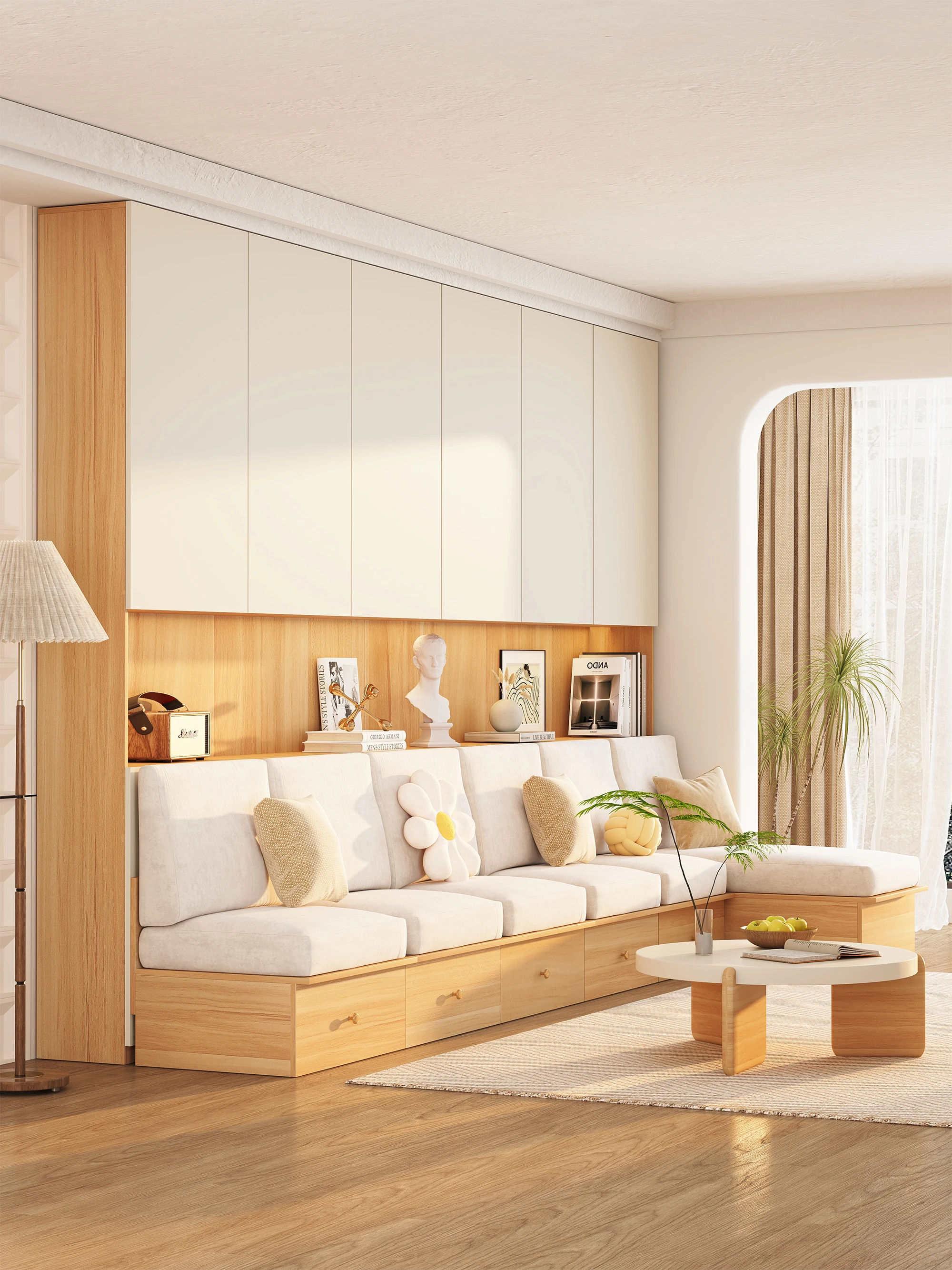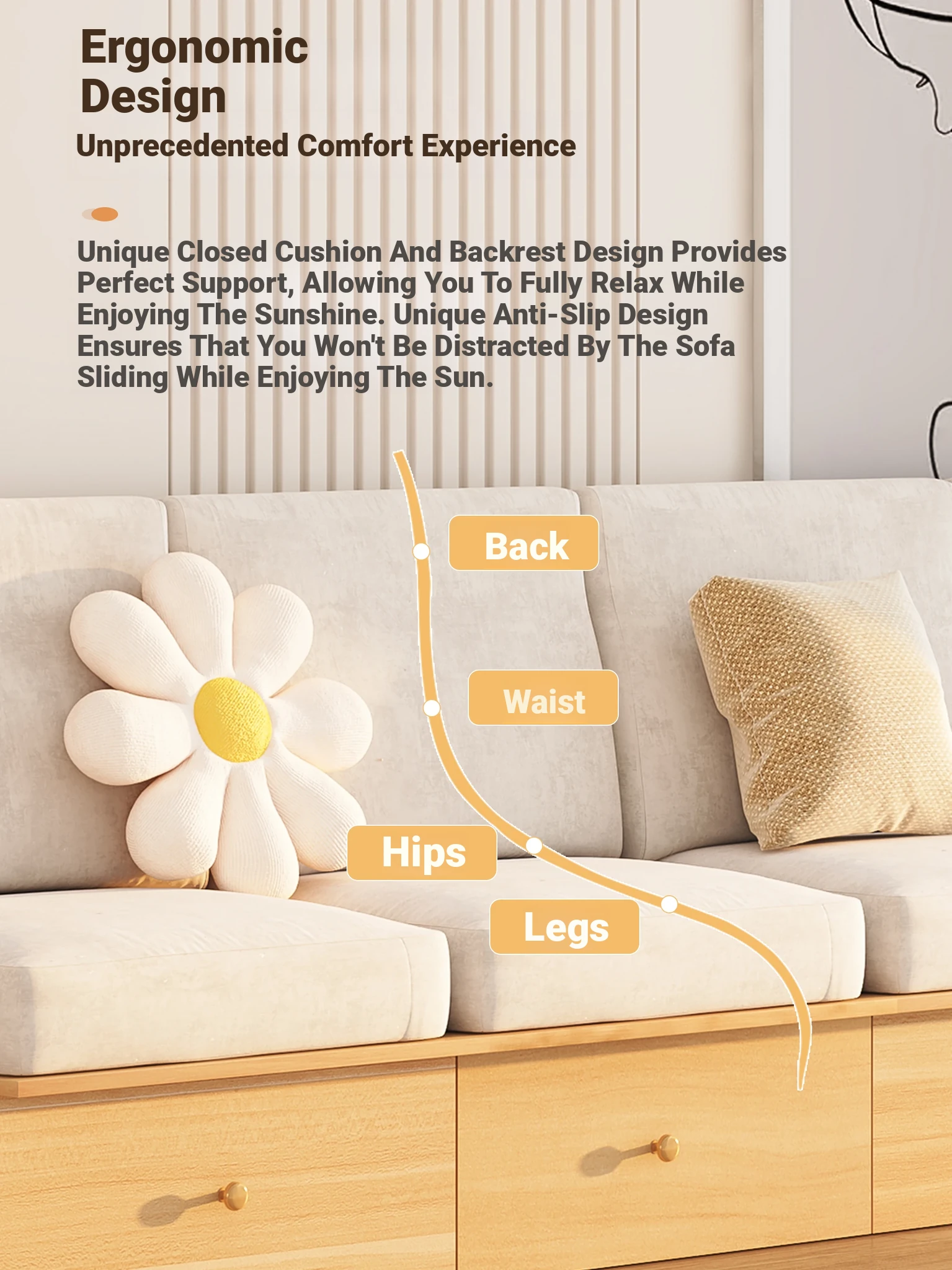 Japanese Style Compact Fabric Sofa - Armless Design for Small Living Rooms, Box Storage, Minimalist Modern Look