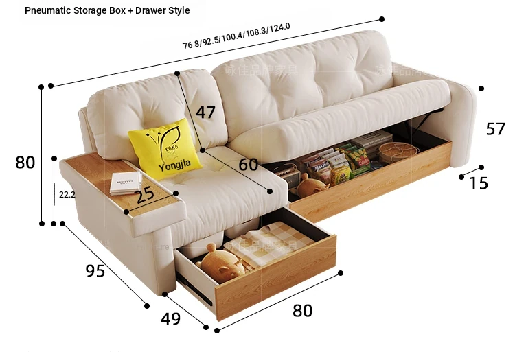 92.52 in large three-person space (bottom storage box + drawer combination)