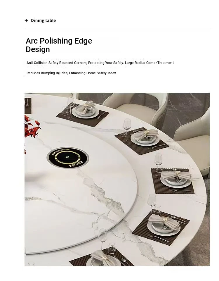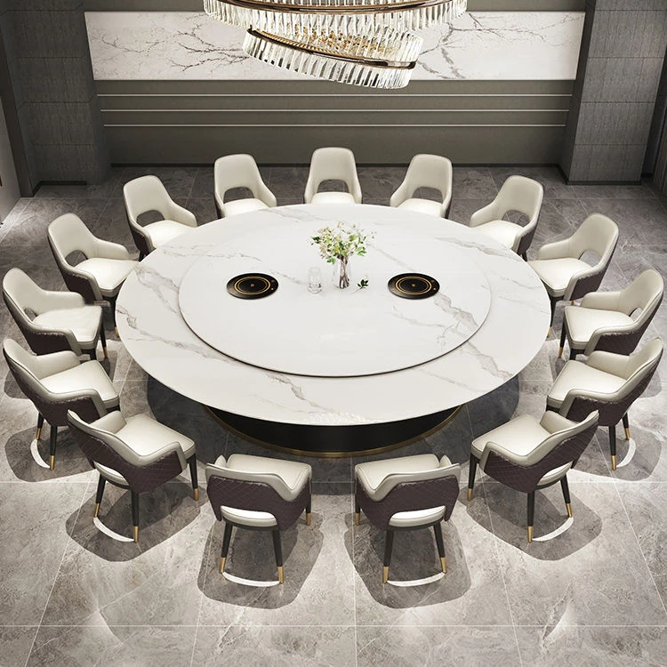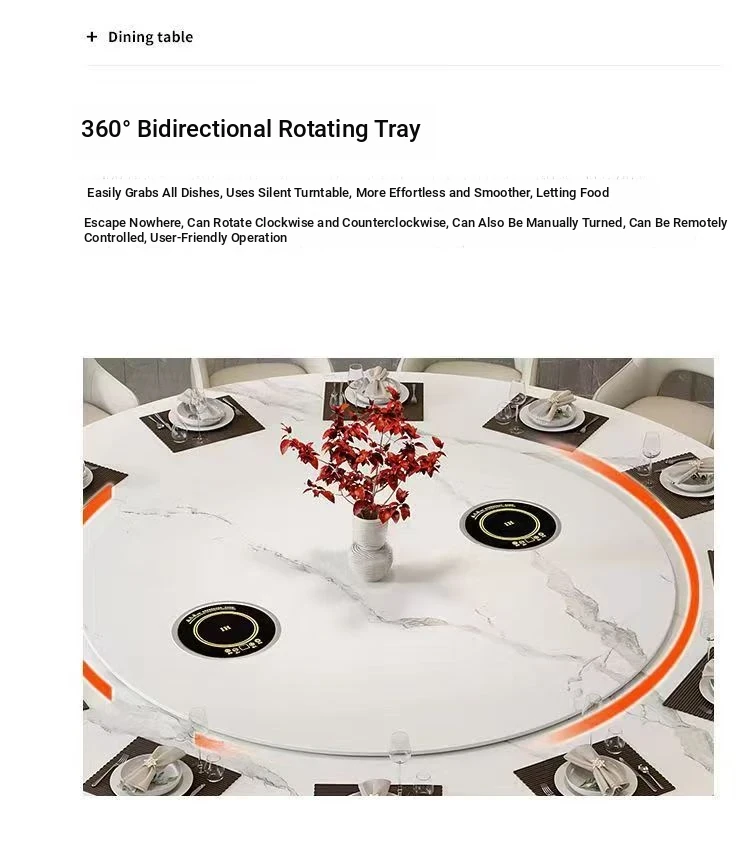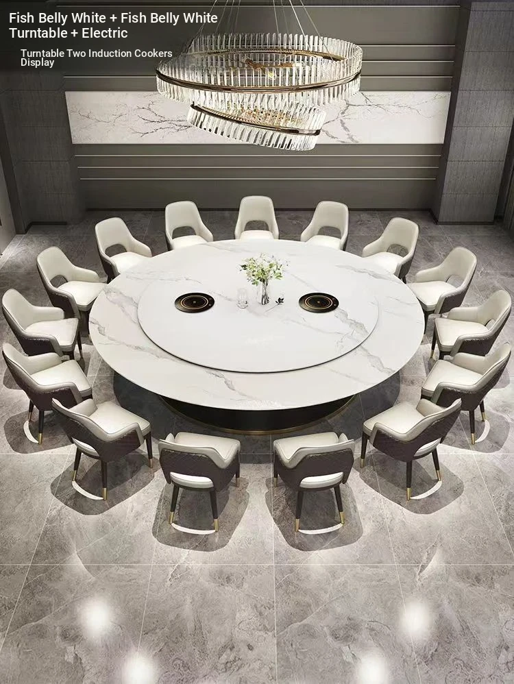 Large Electric Dining Table for 12 People - 2m Round Marble Table with Induction Cooktop for Villas and Hotels - Perfect for Spacious Dining Rooms and Elegant Gatherings