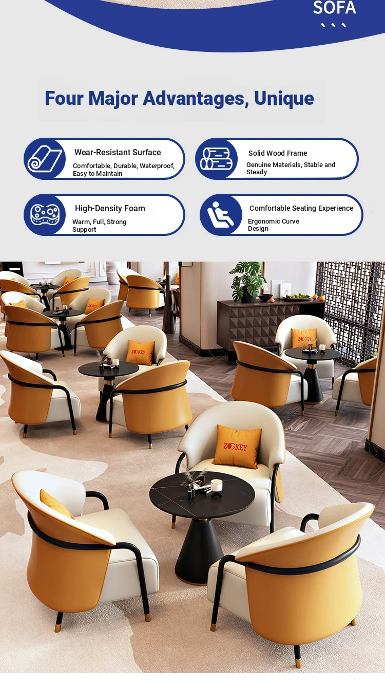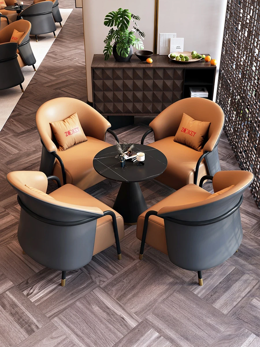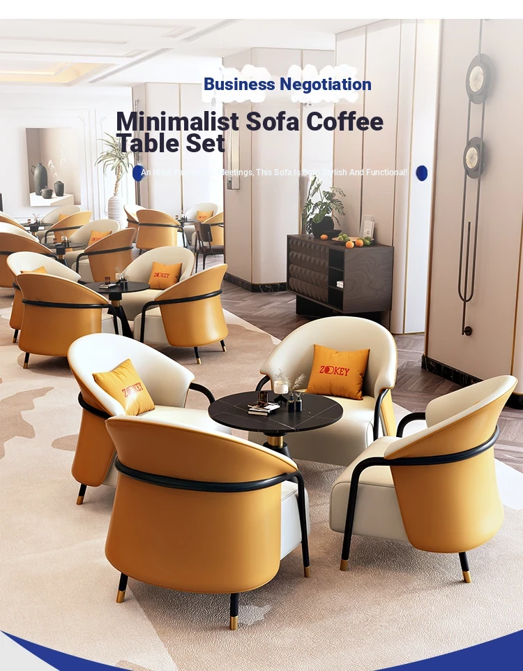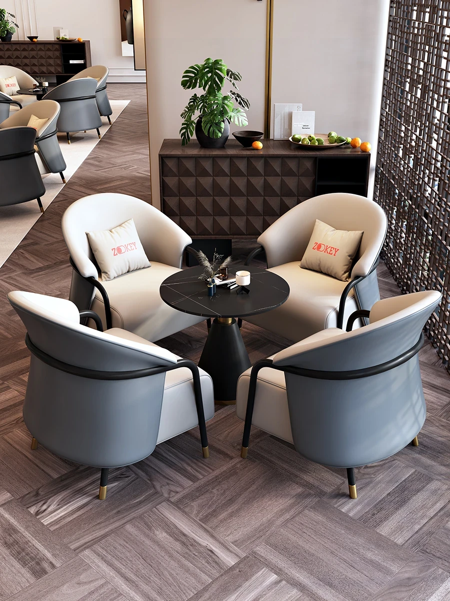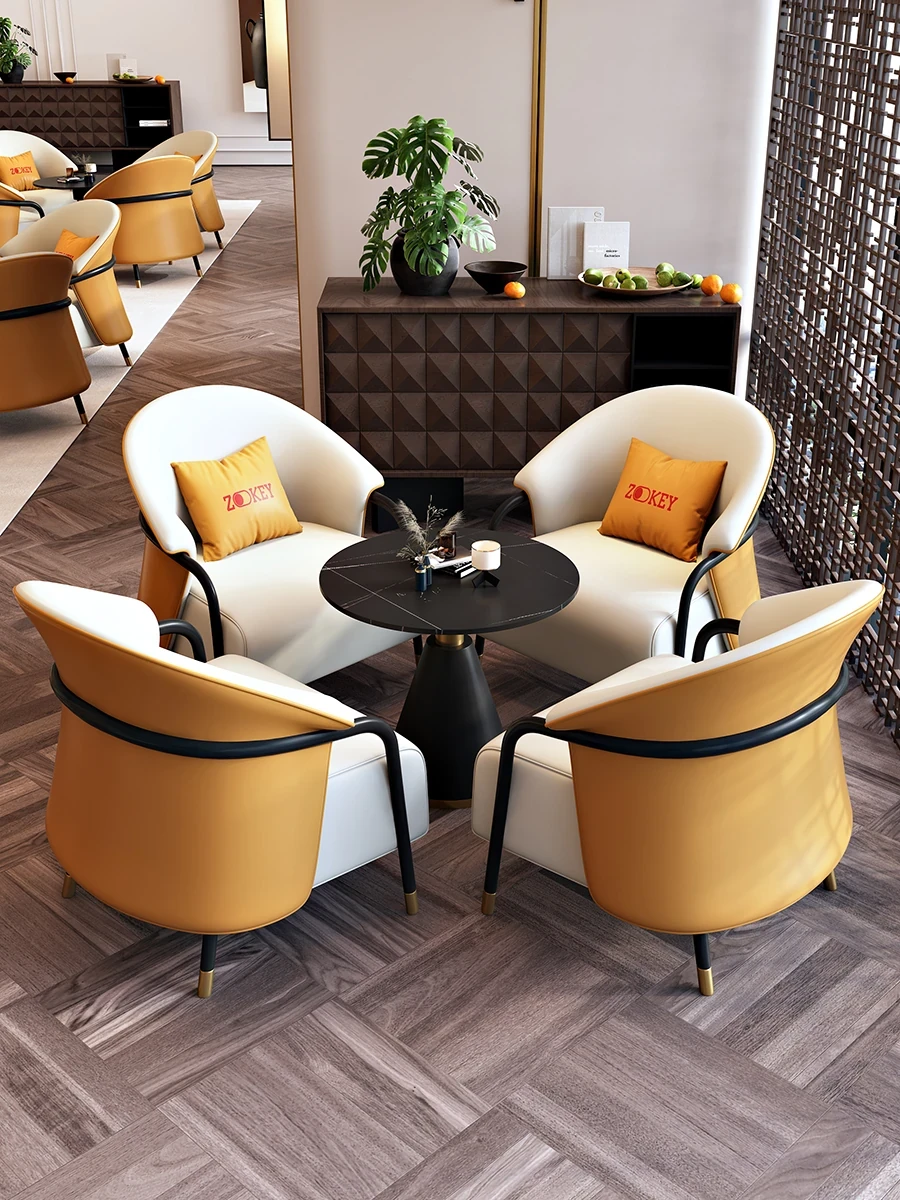 Luxury Hotel Lobby Sofa Set for Office Reception and Beauty Salon Relaxation Area - Stylish Meeting Table and Chairs Combination for Sales Office Conversations