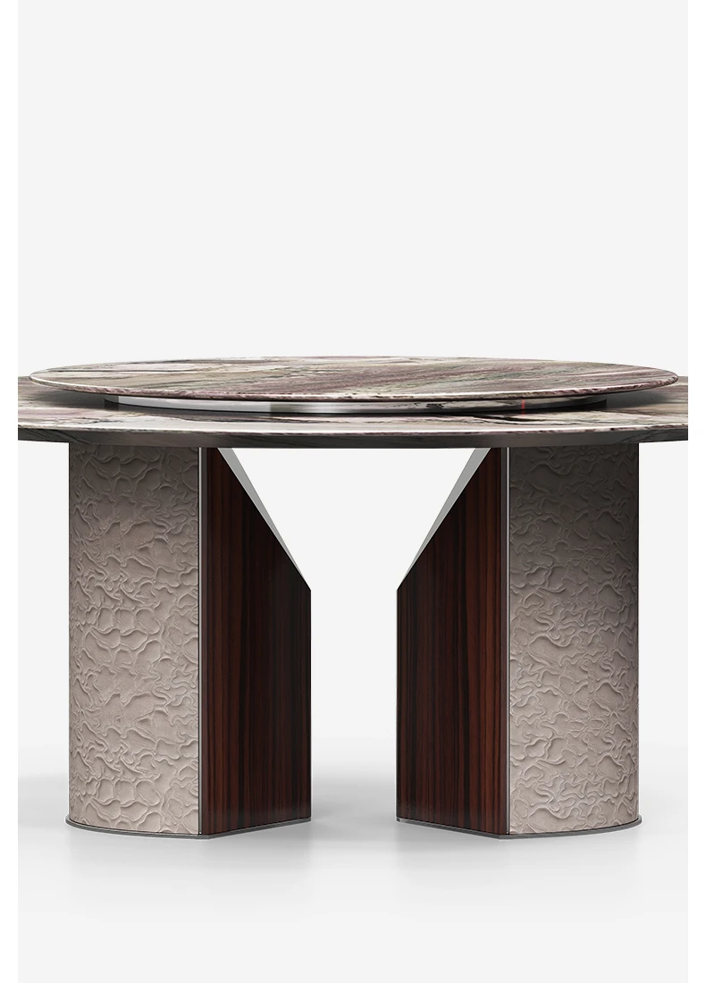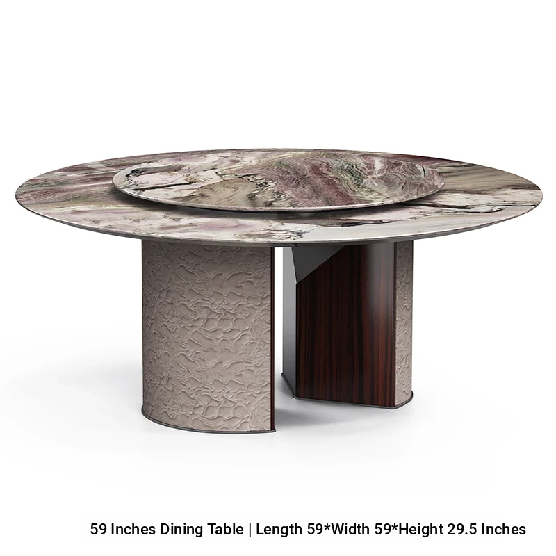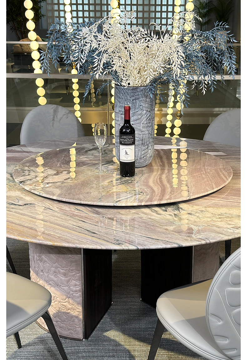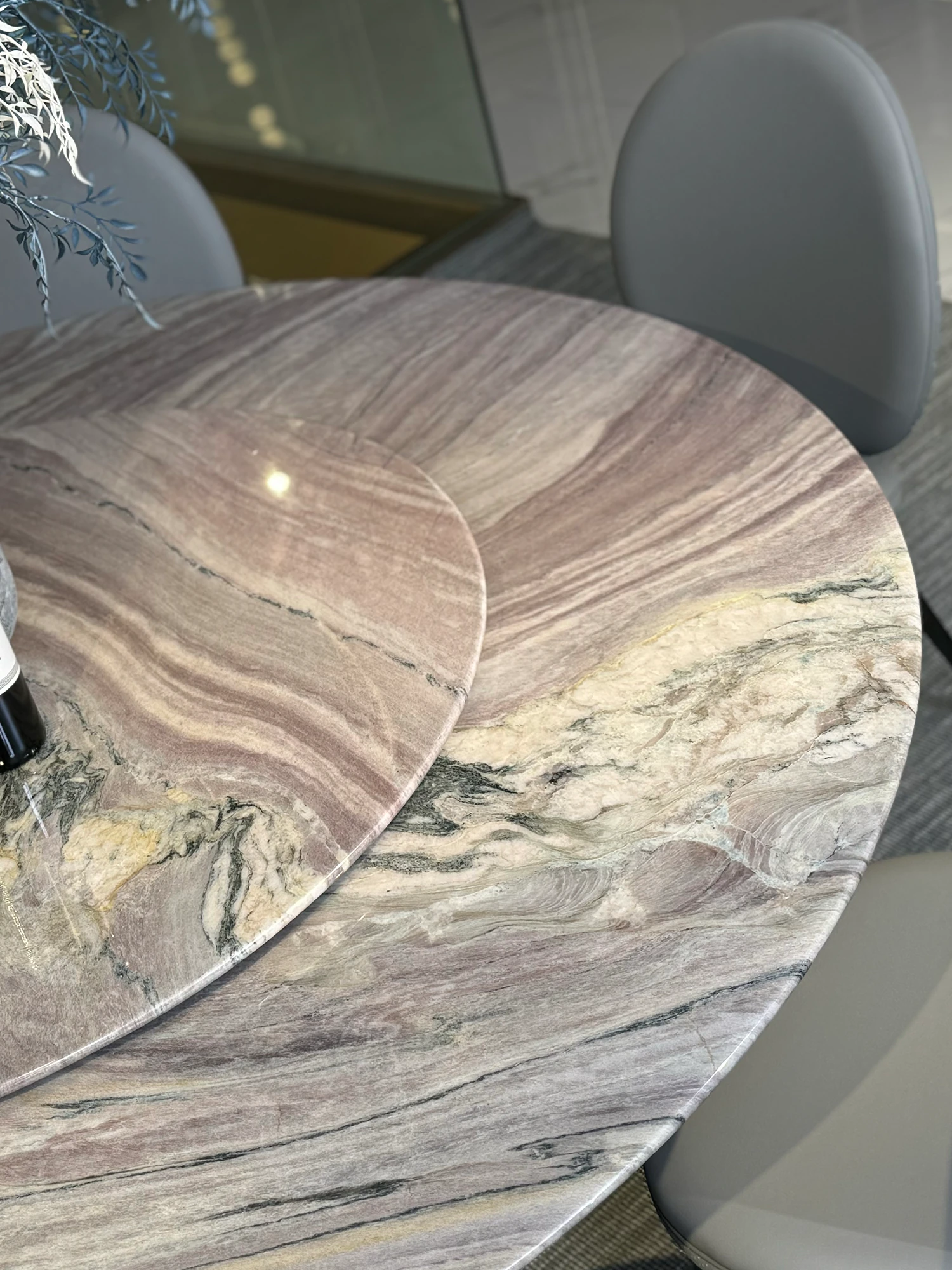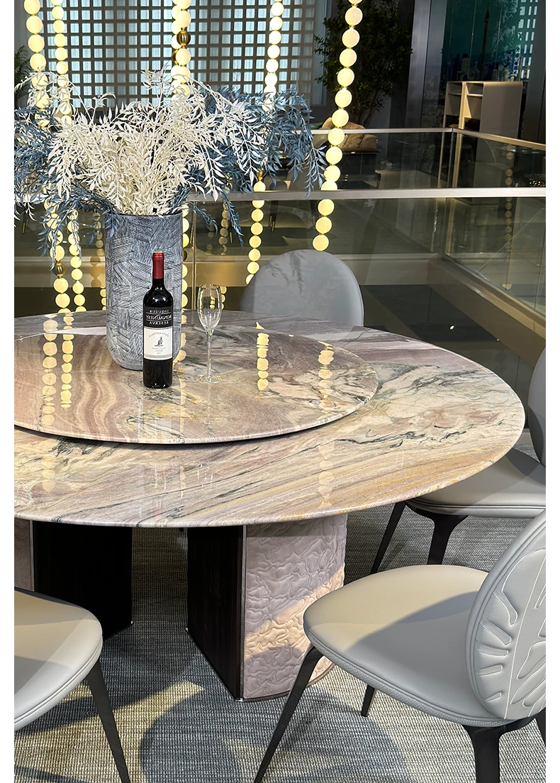 MIVICA Italian Postmodern Luxurious Marble Round Dining Table - "Purple Aura Rising" Design, Perfect for International Style Homes, Model L3