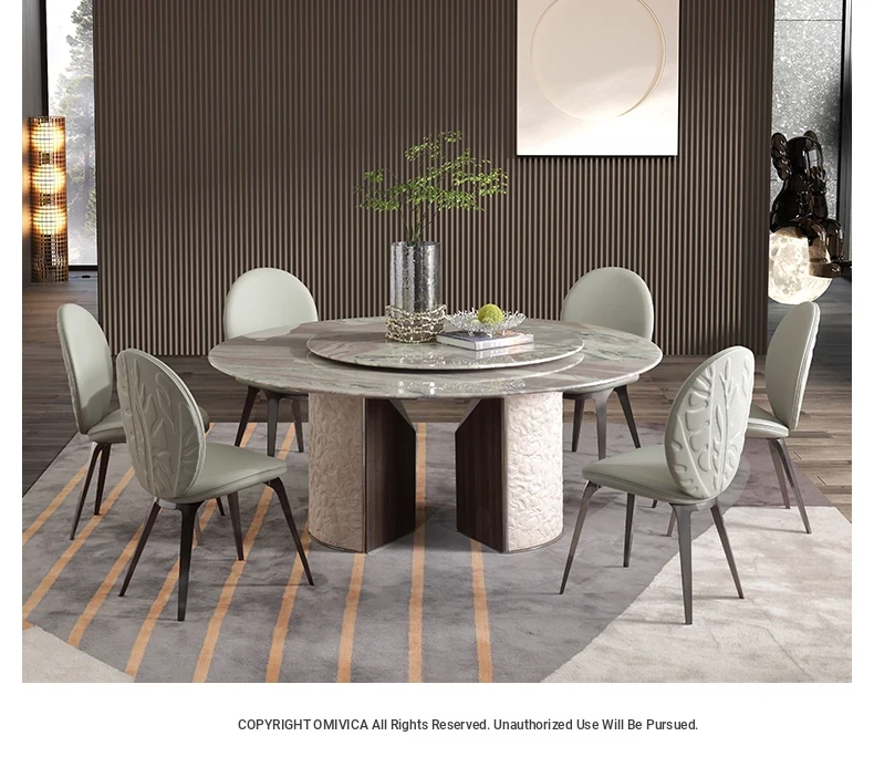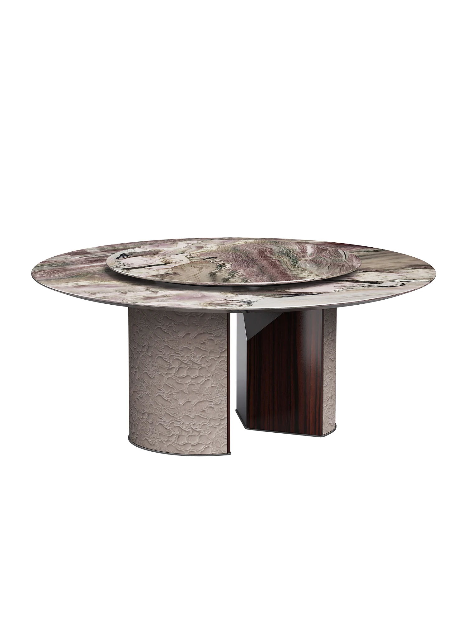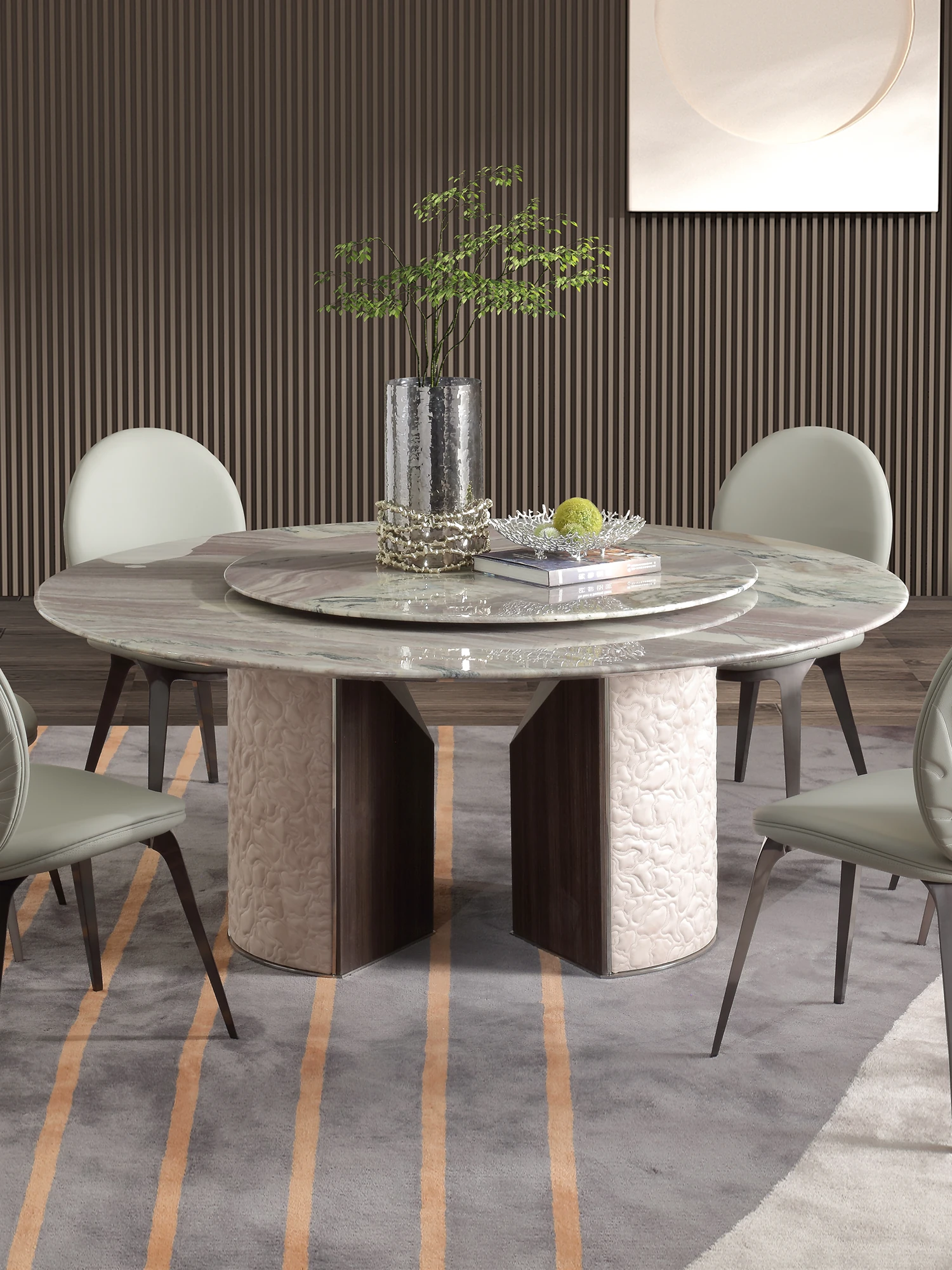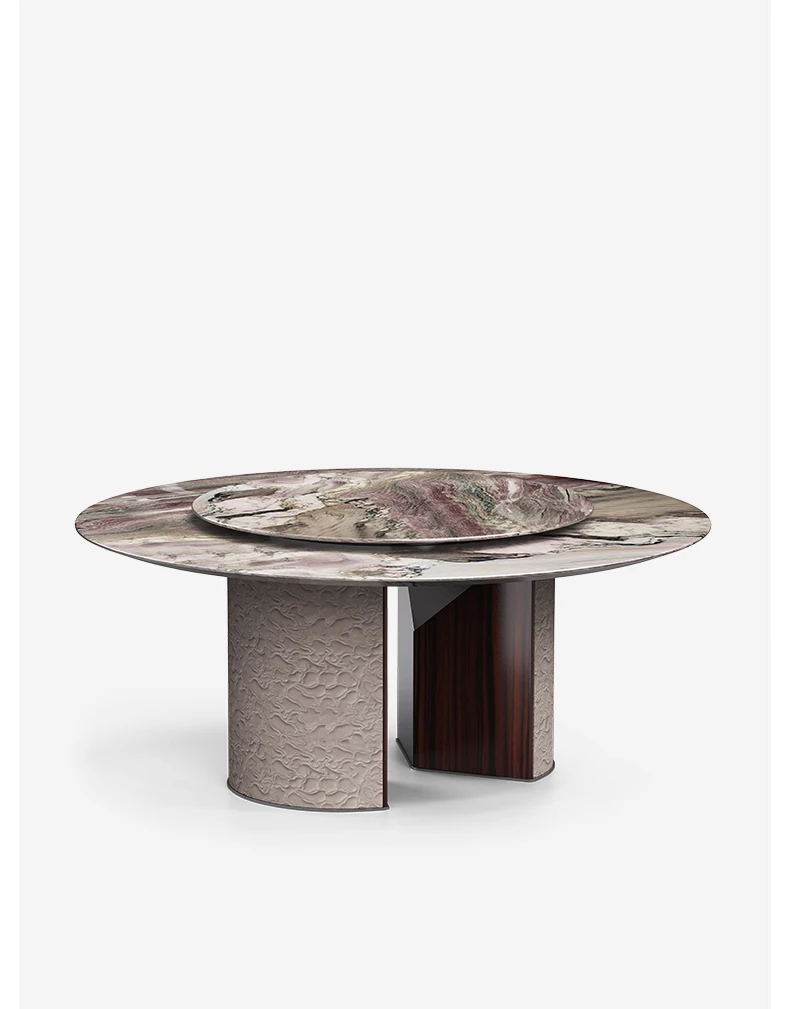 MIVICA Italian Postmodern Luxurious Marble Round Dining Table - "Purple Aura Rising" Design, Perfect for International Style Homes, Model L3