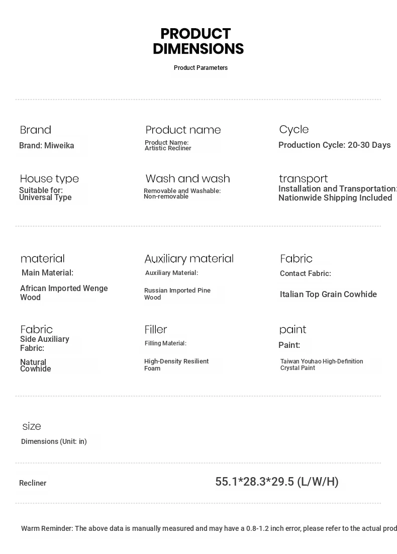 MIVICA Modern Italian Luxury Genuine Leather Recliner Chair - Designer K1 Single Sofa Rocking Chair for Ultimate Comfort and Style