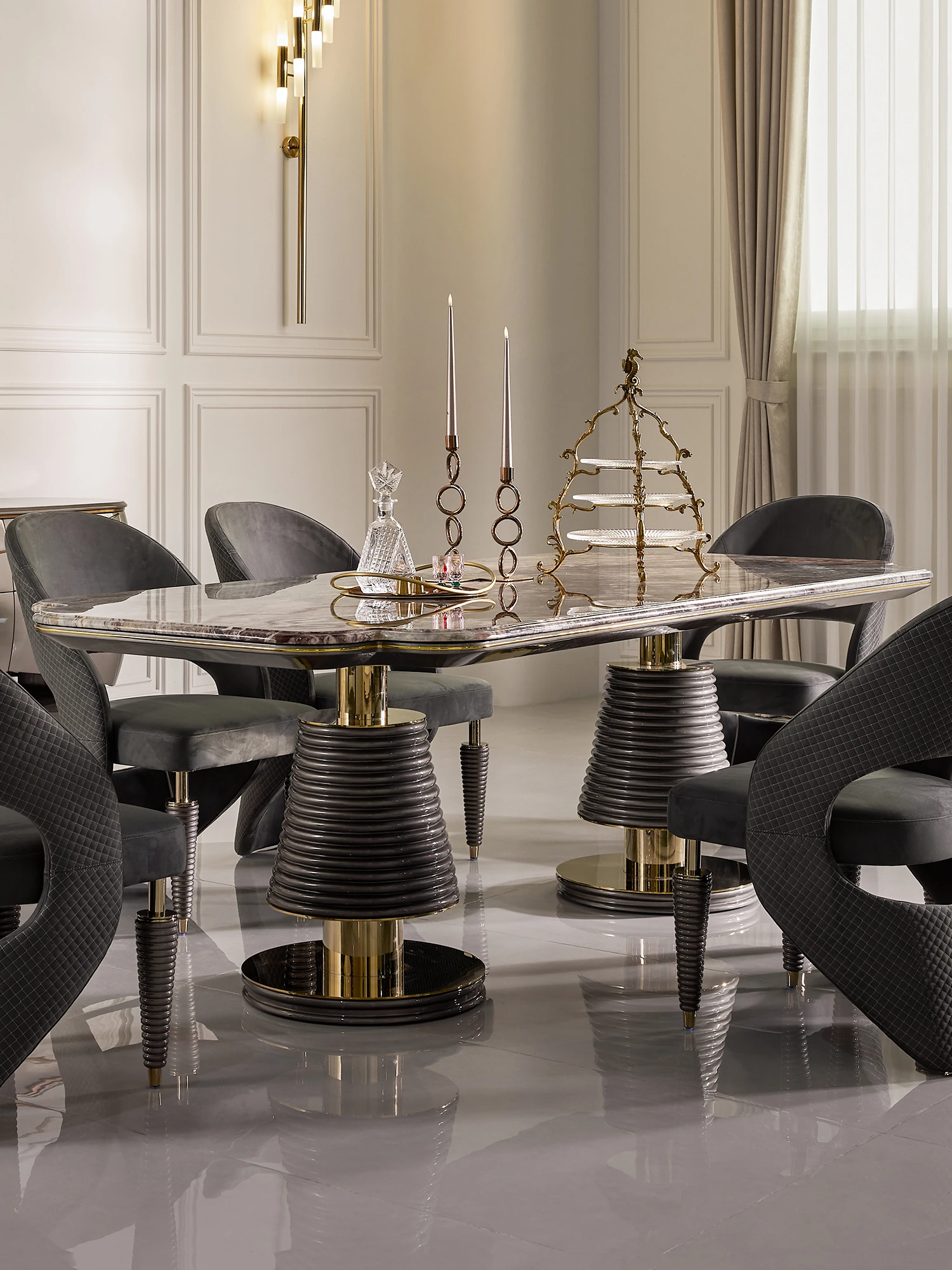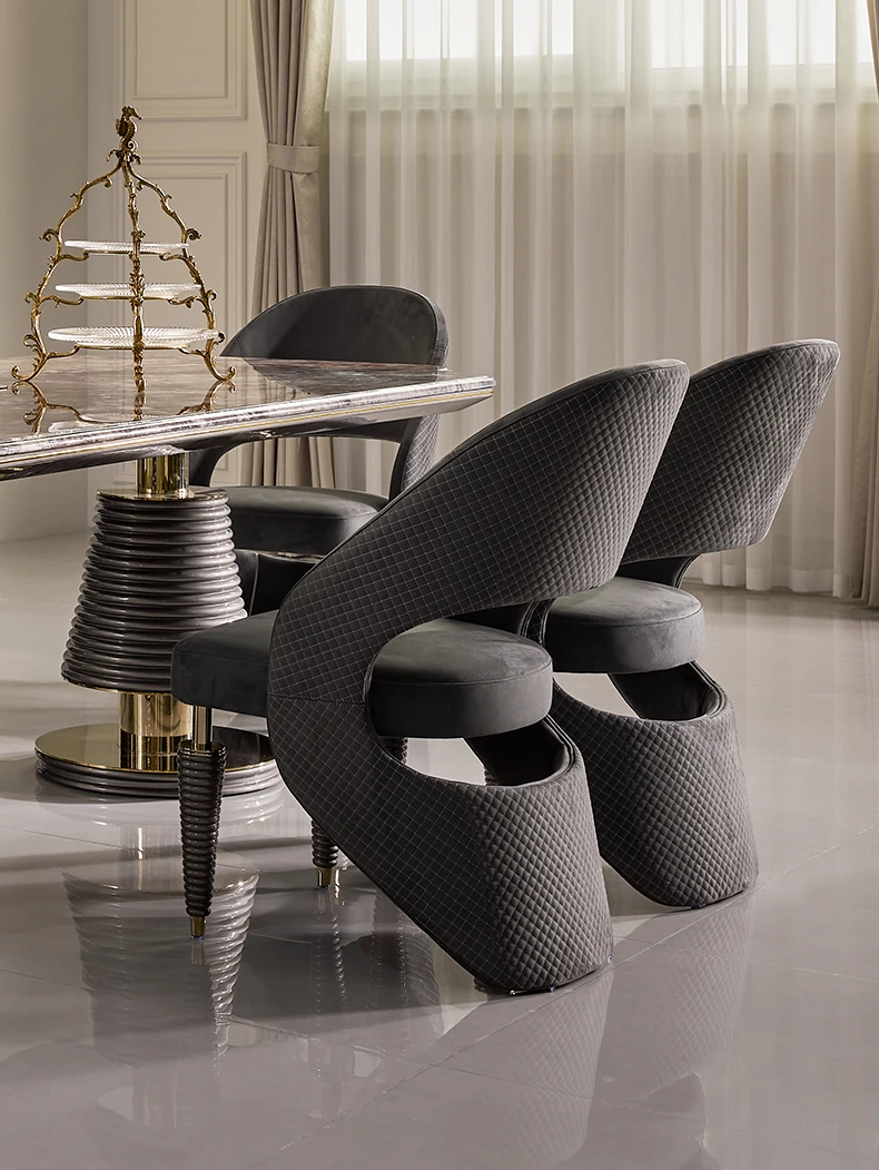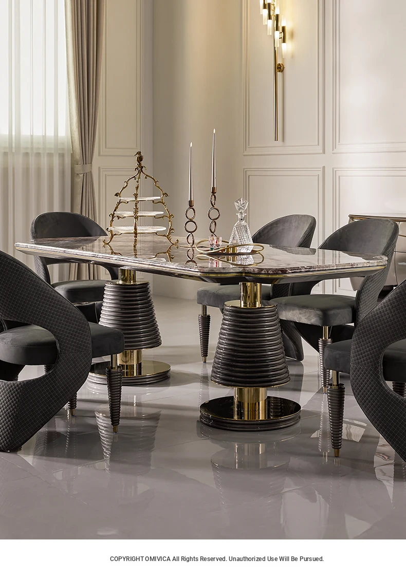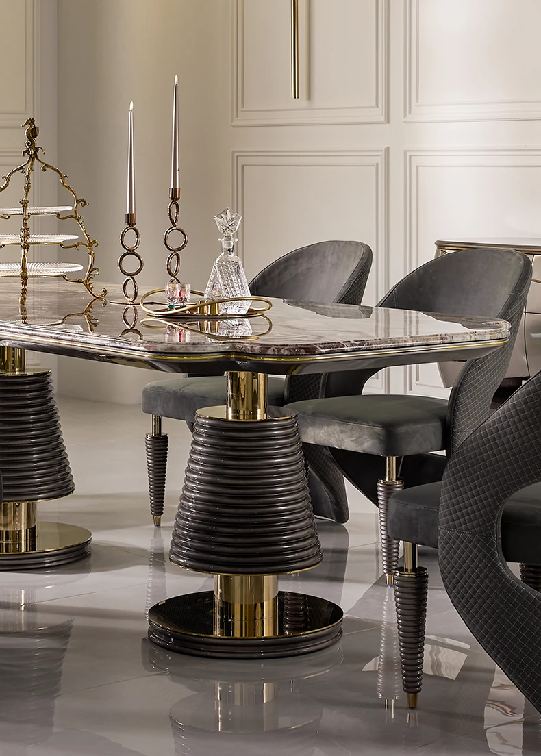 MIVICA Original Design French Elegant Luxury Brazilian Imported Marble Dining Table and Chairs - International Pavilion F2