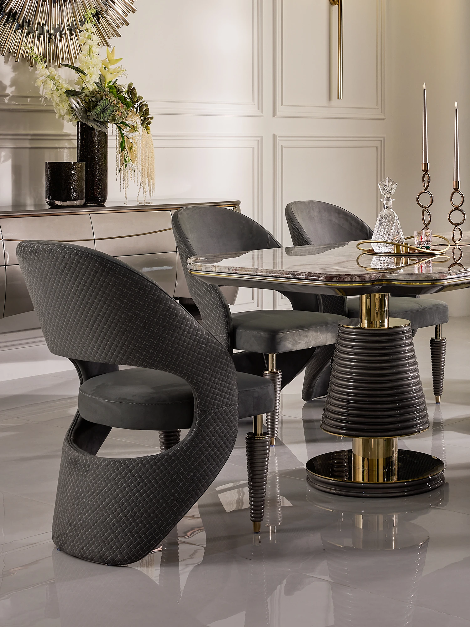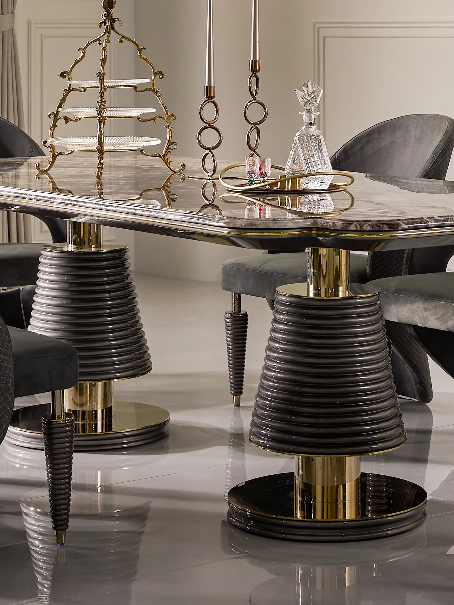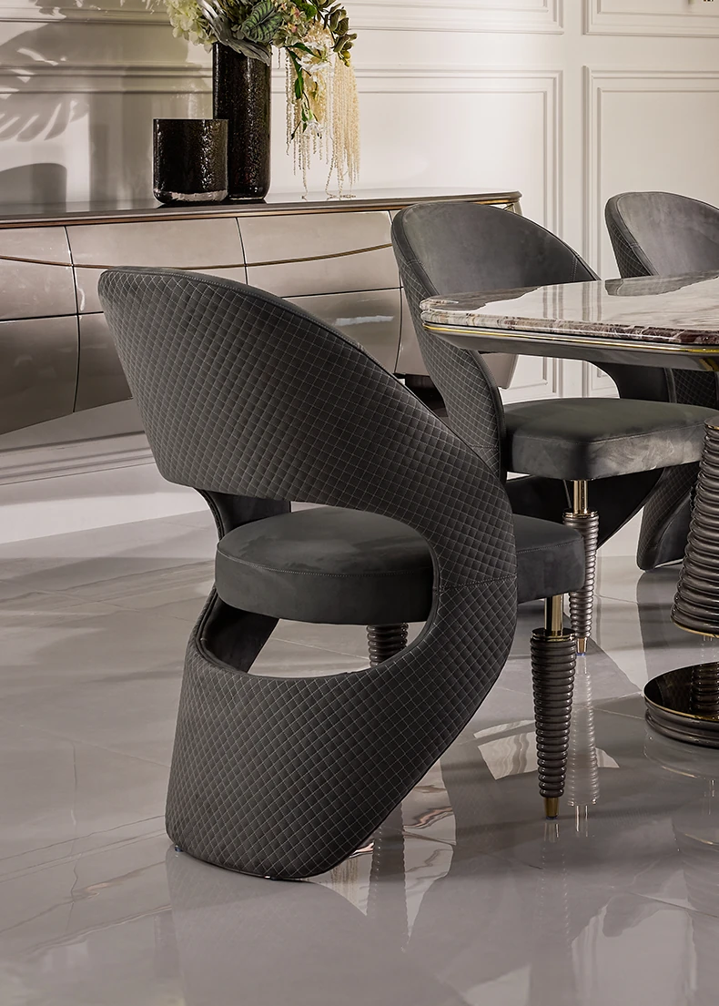 MIVICA Original Design French Elegant Luxury Brazilian Imported Marble Dining Table and Chairs - International Pavilion F2