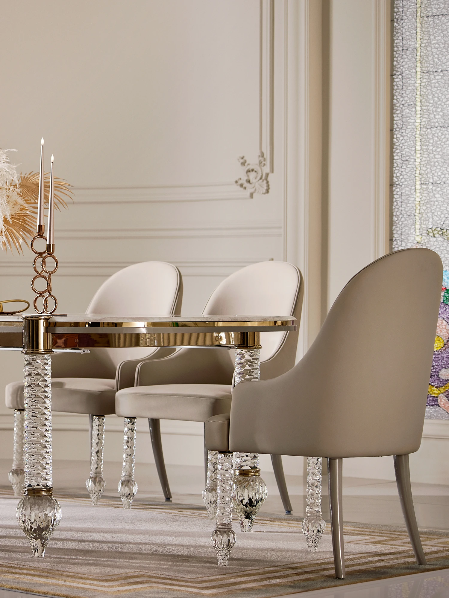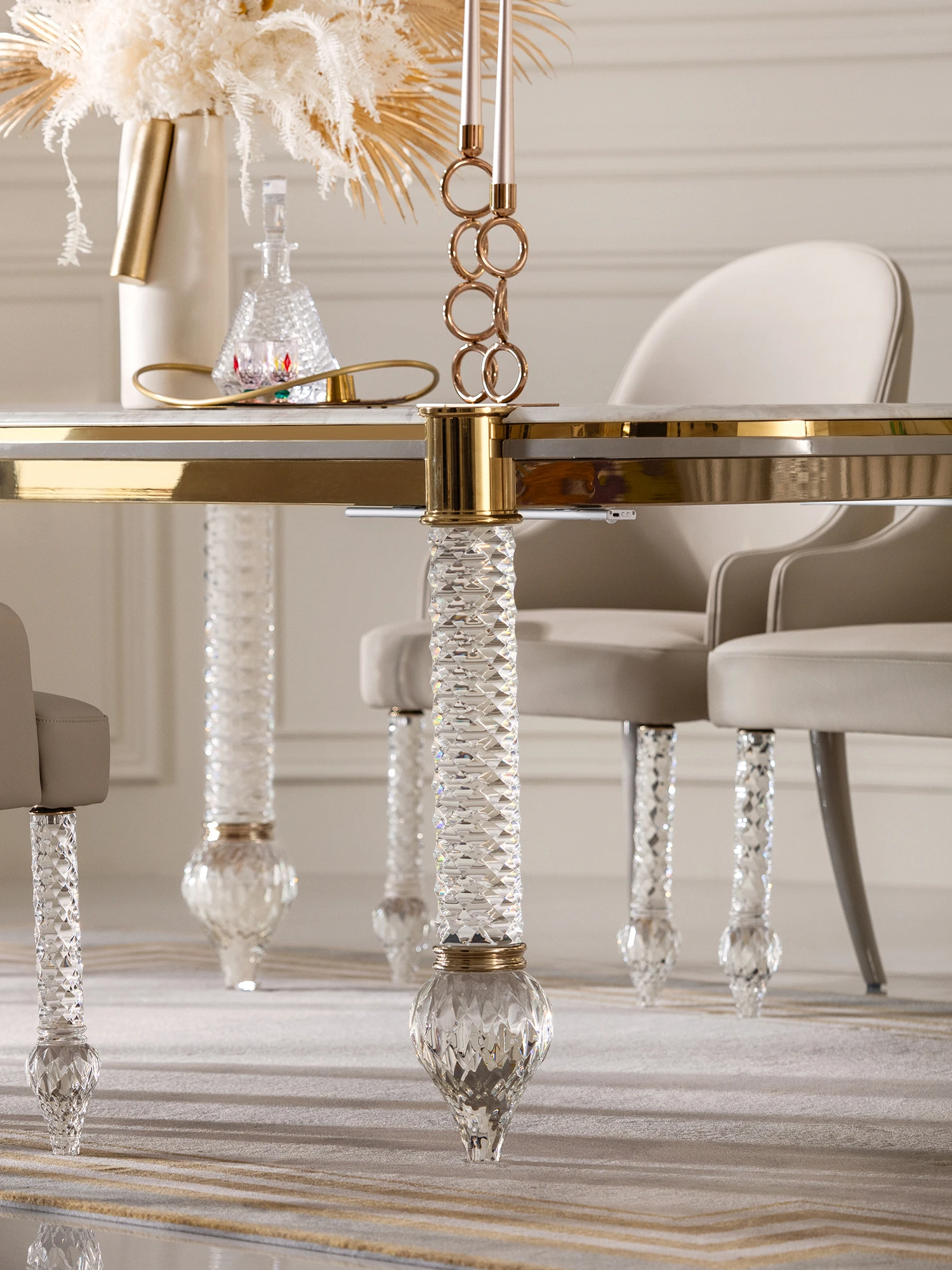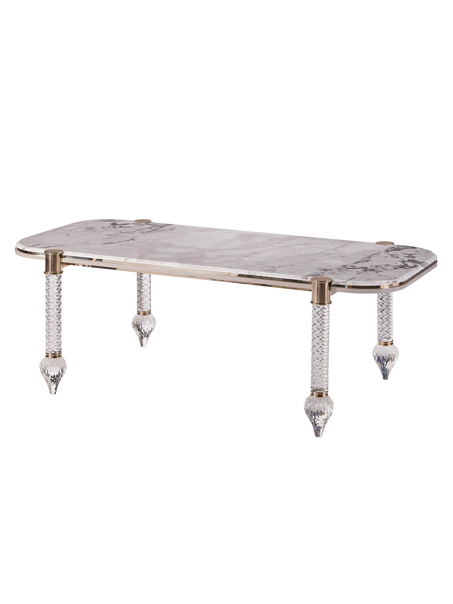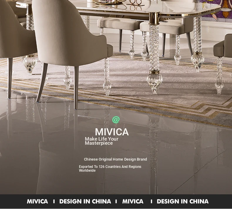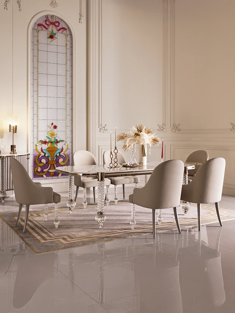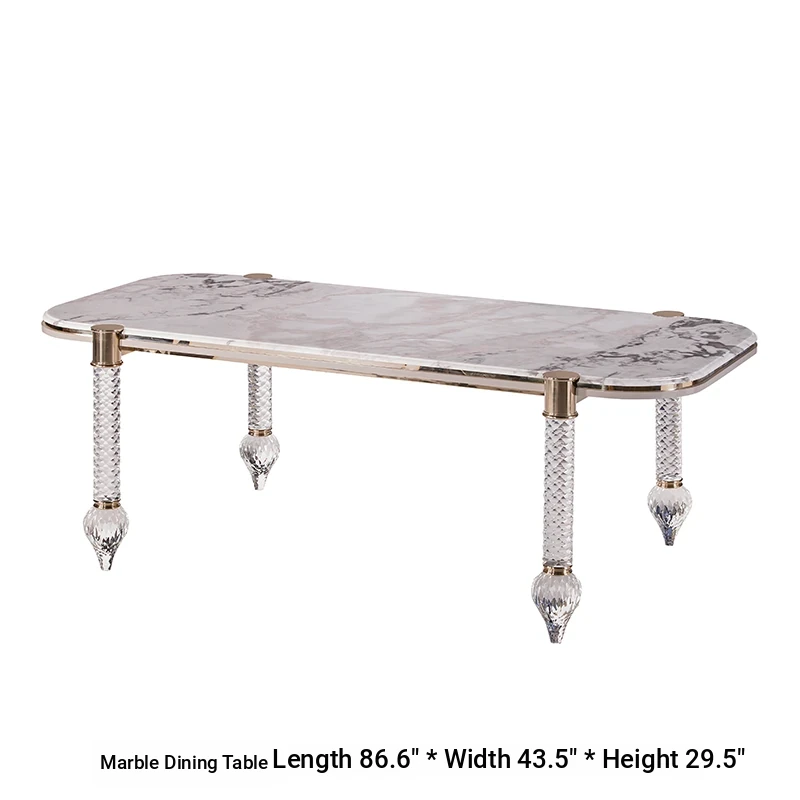 MIVICA Original Design French Elegant Luxury Brazilian Imported Marble K9 Crystal Dining Table - International Pavilion F2