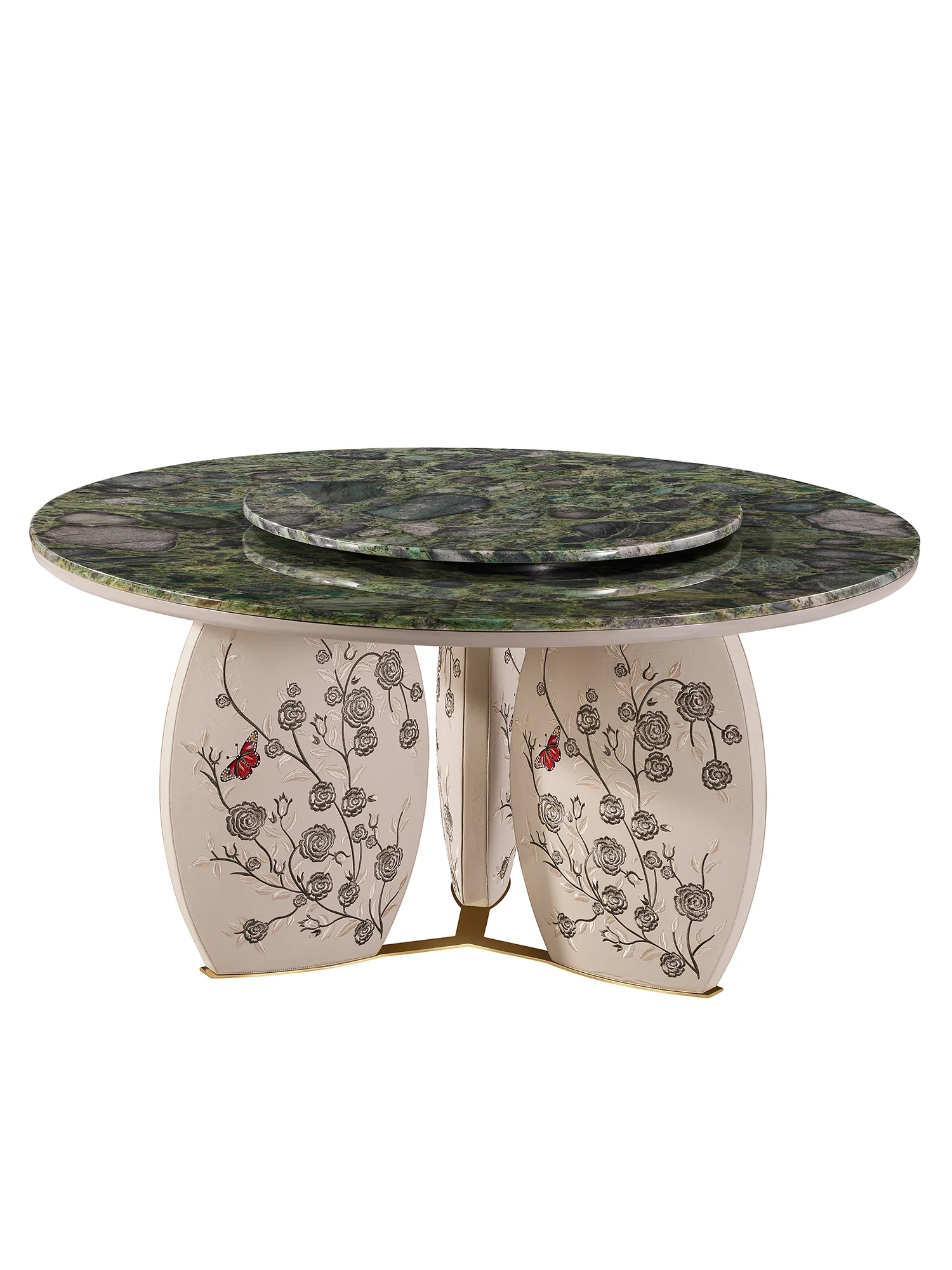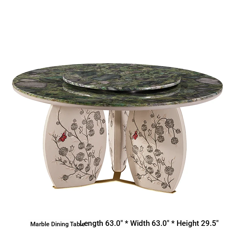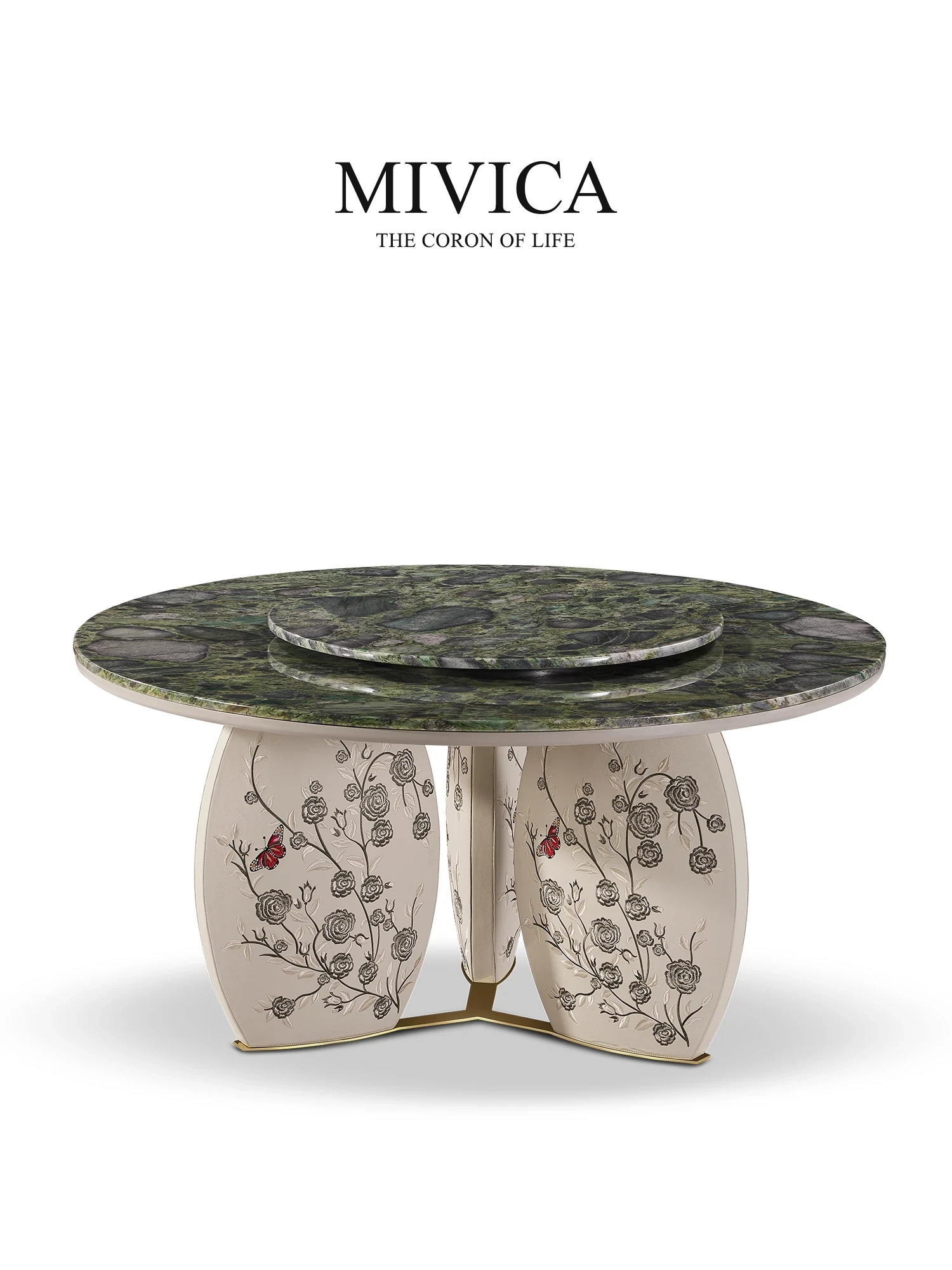 MIVICA Original Design French-style Luxury Round Dining Table with Emerald Green Marble and Rotating Base - International Pavilion F2
