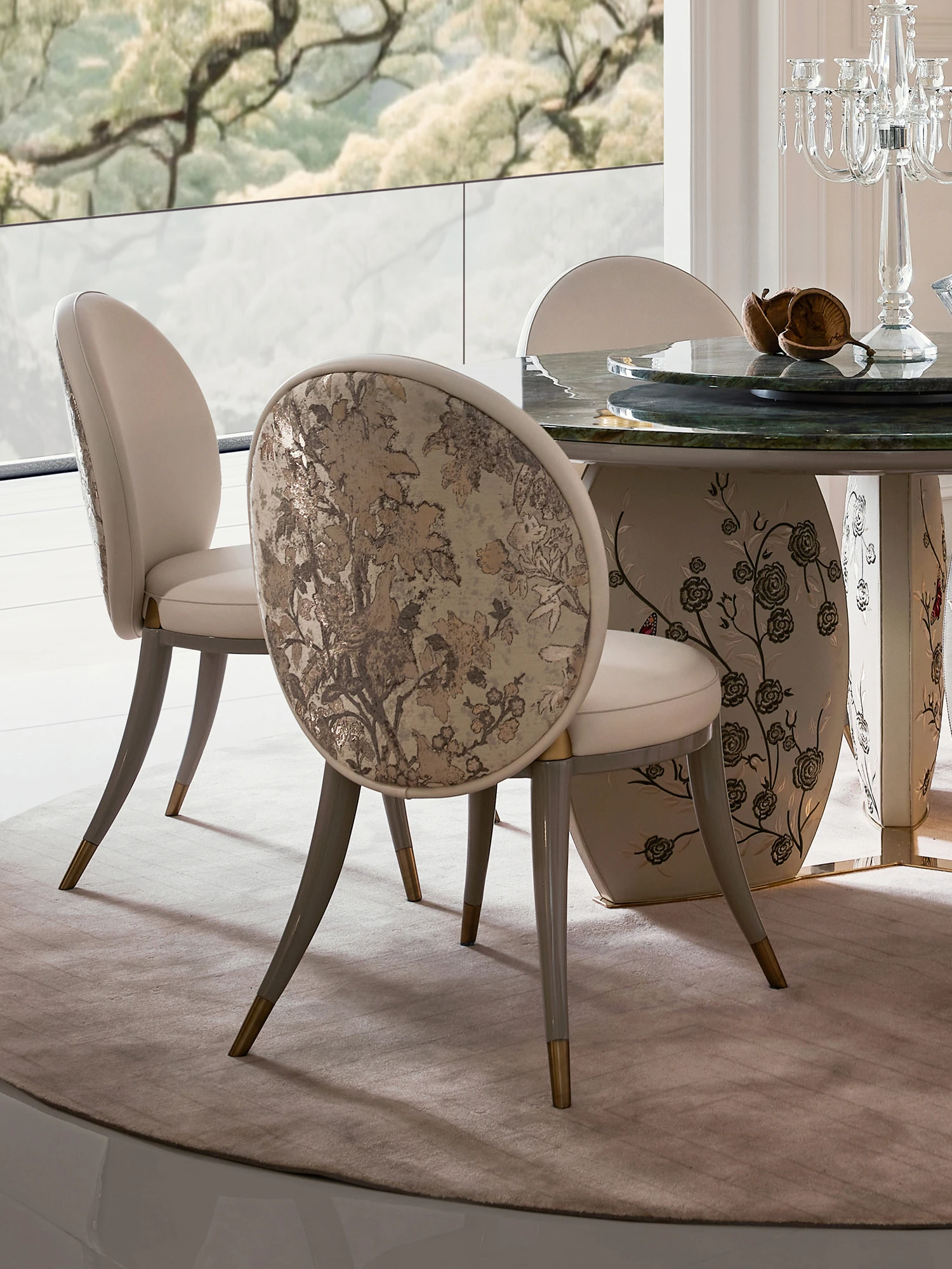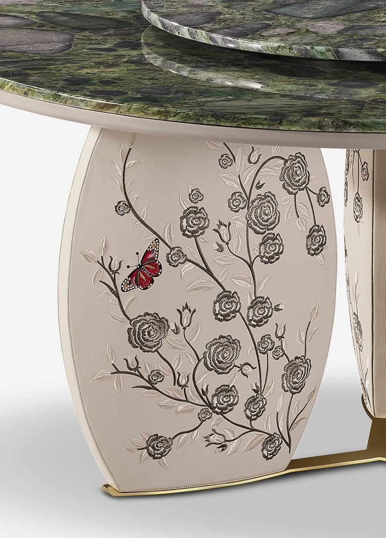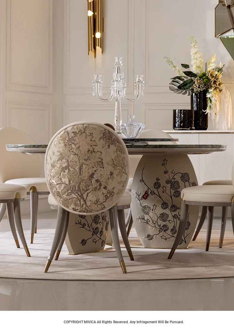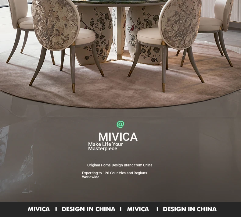 MIVICA Original Design French-style Luxury Round Dining Table with Emerald Green Marble and Rotating Base - International Pavilion F2