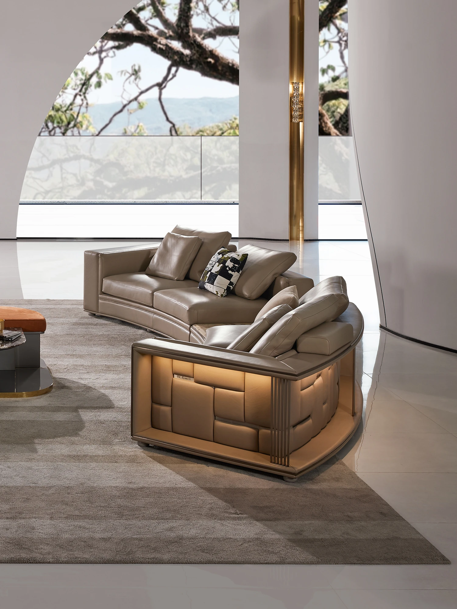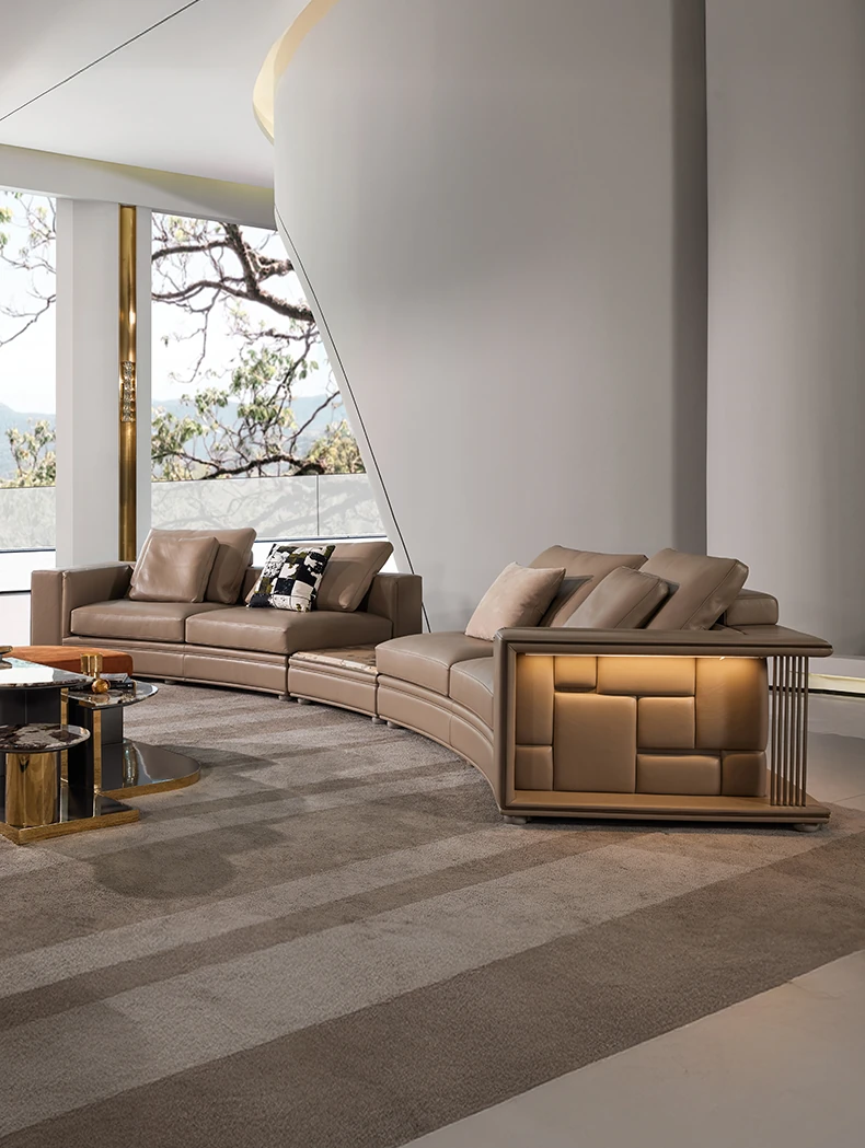 MIVICA Full Leather Curved Sofa