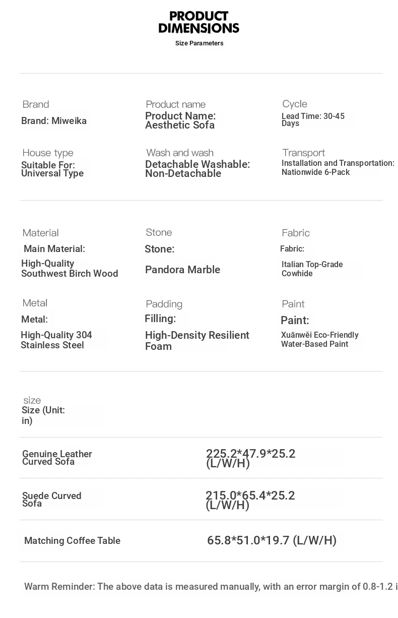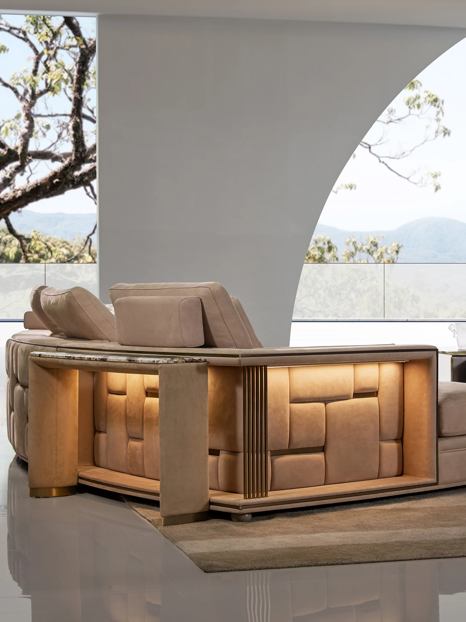 MIVICA Full Frosted Leather Curved Sofa