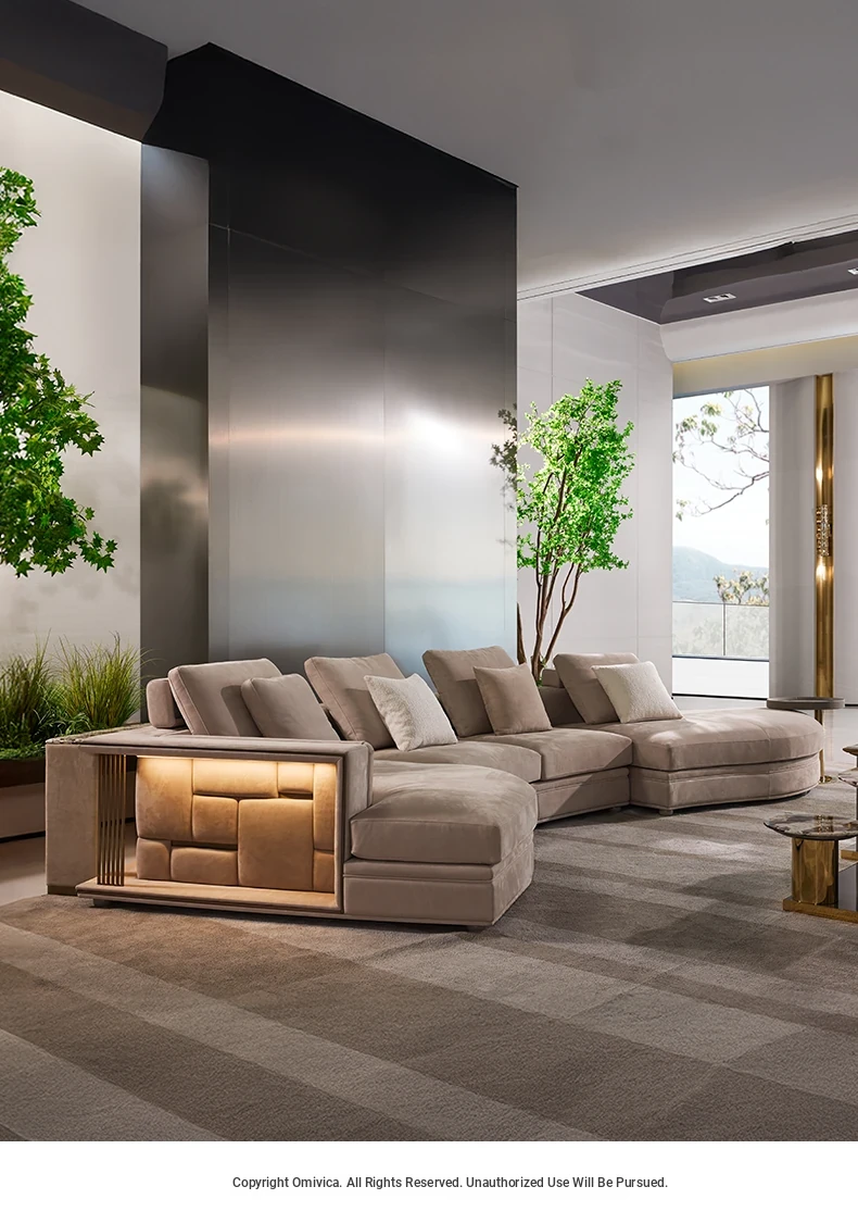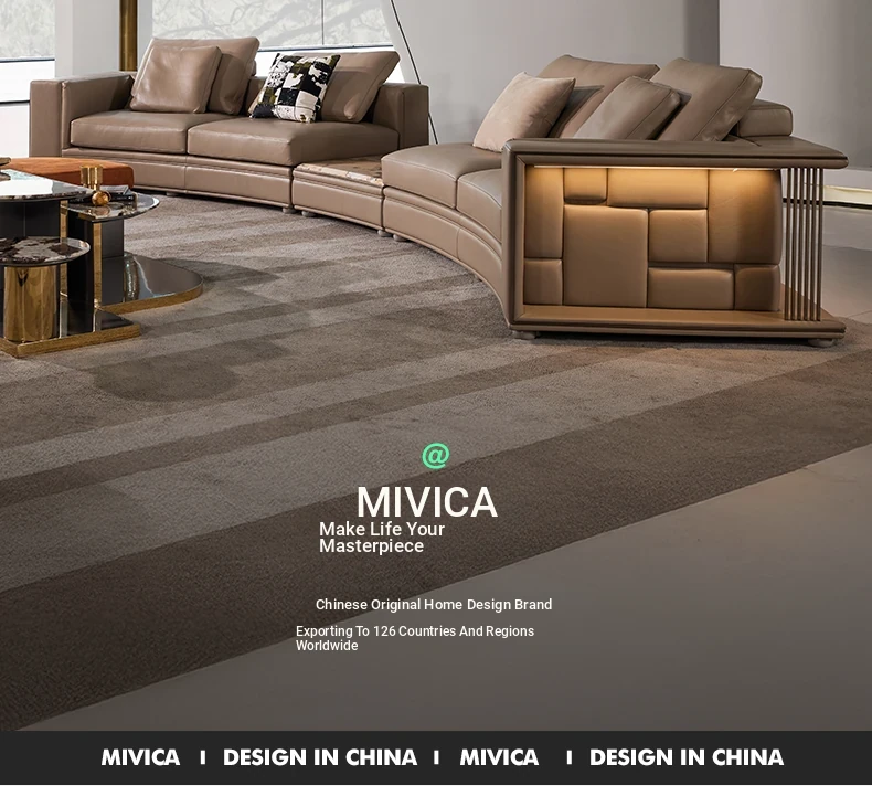 MIVICA Original Design Italian Light Luxury Full Leather Curved Corner Sofa - Elegant Furniture for International Living Room F2