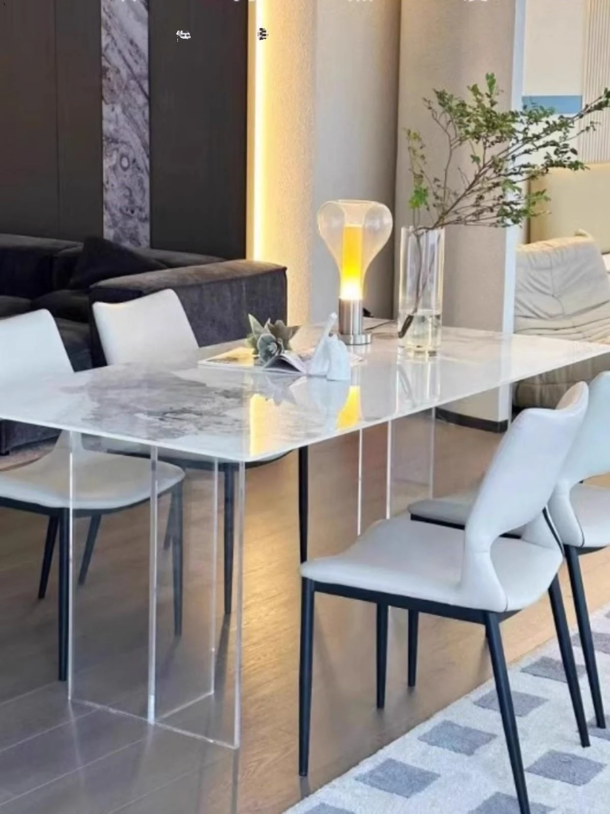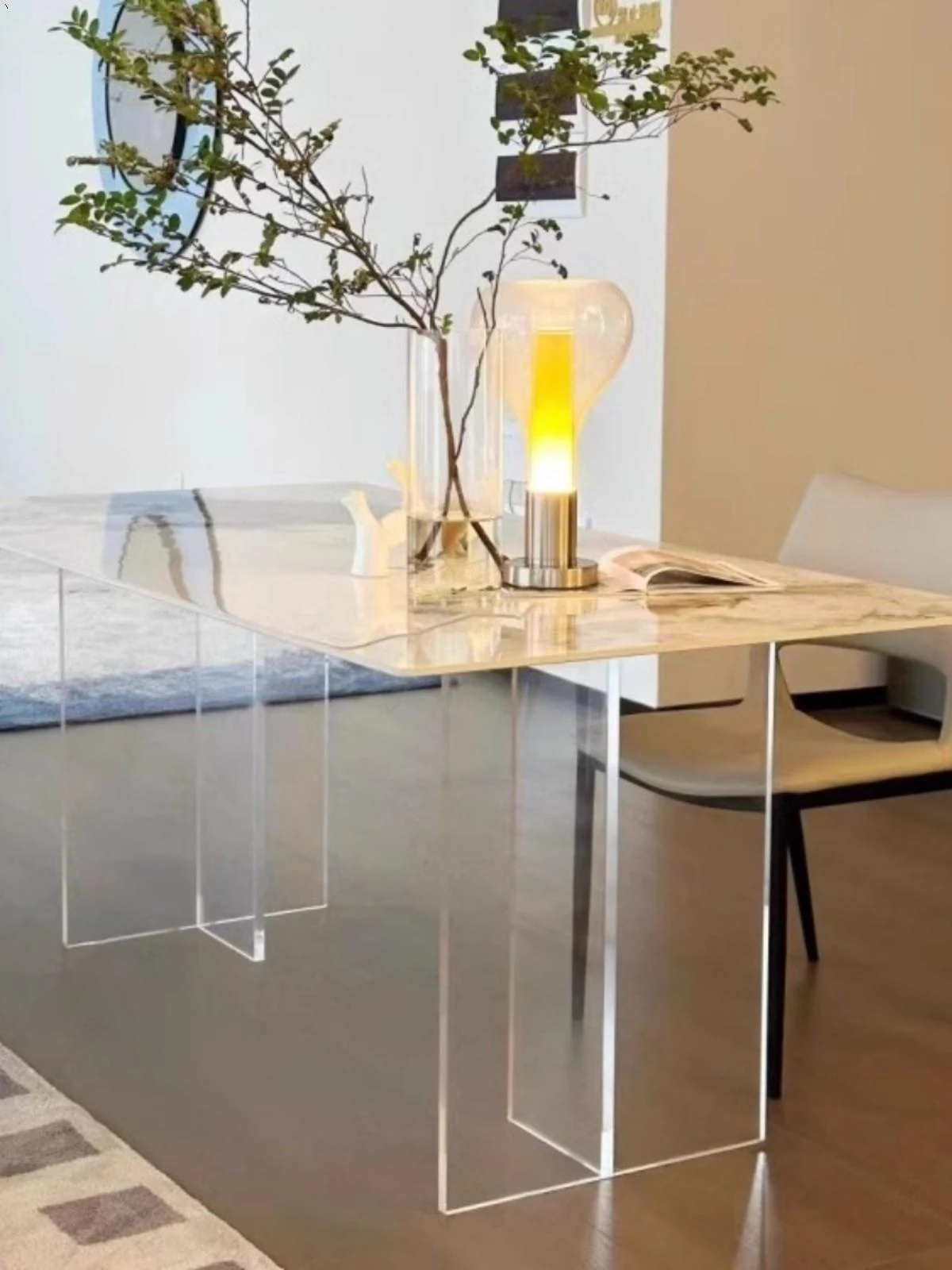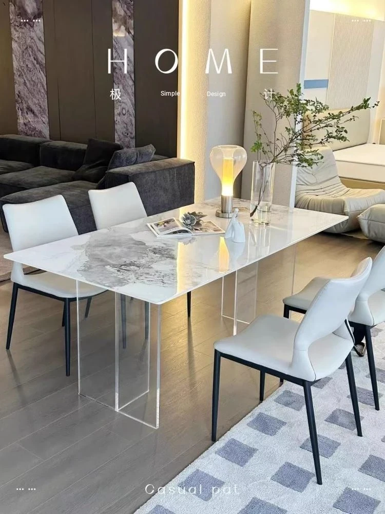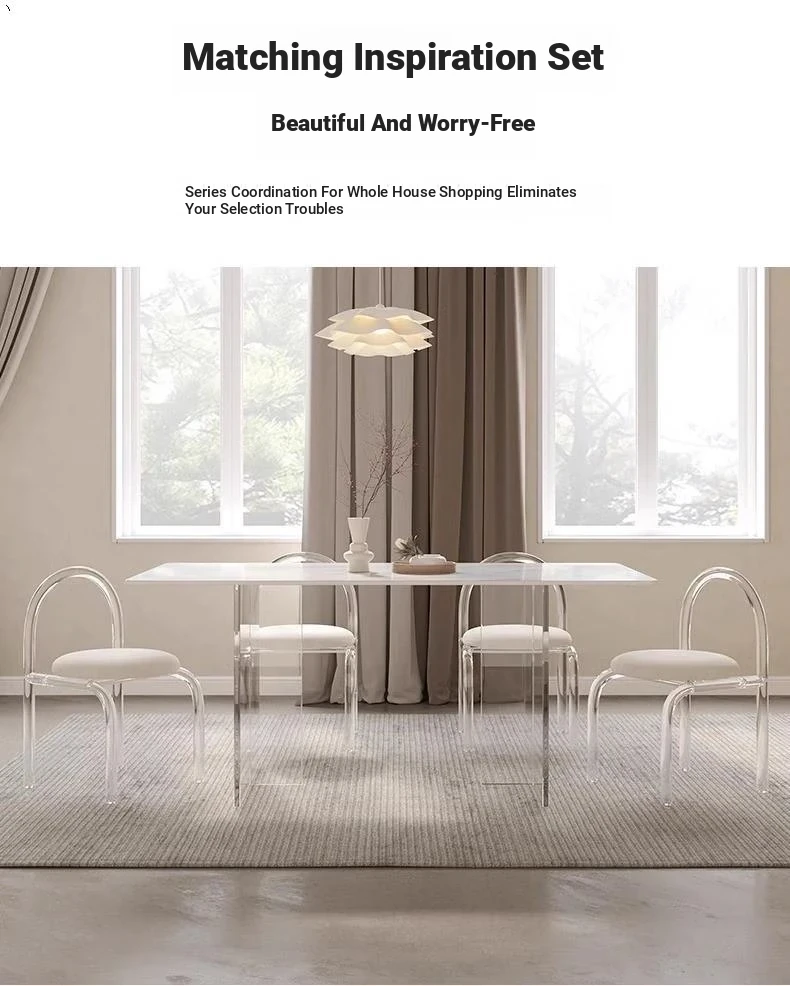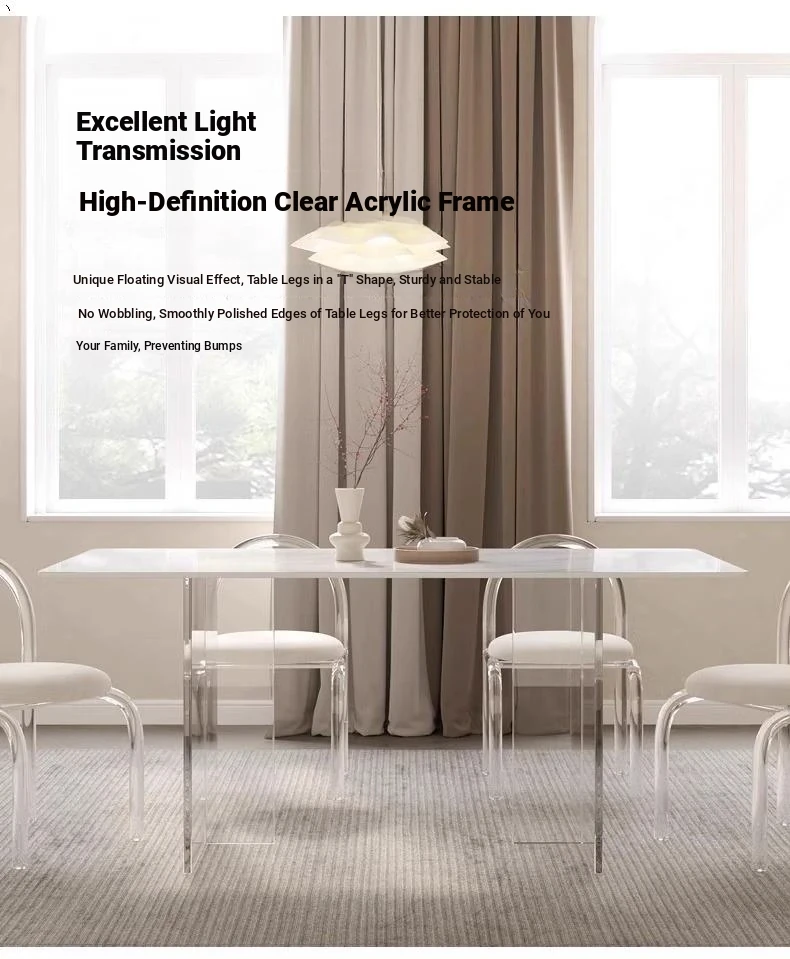 Modern Acrylic Dining Table and Chair Set - Transparent Floating Design for Small Spaces, Stylish Rectangular Home Furniture