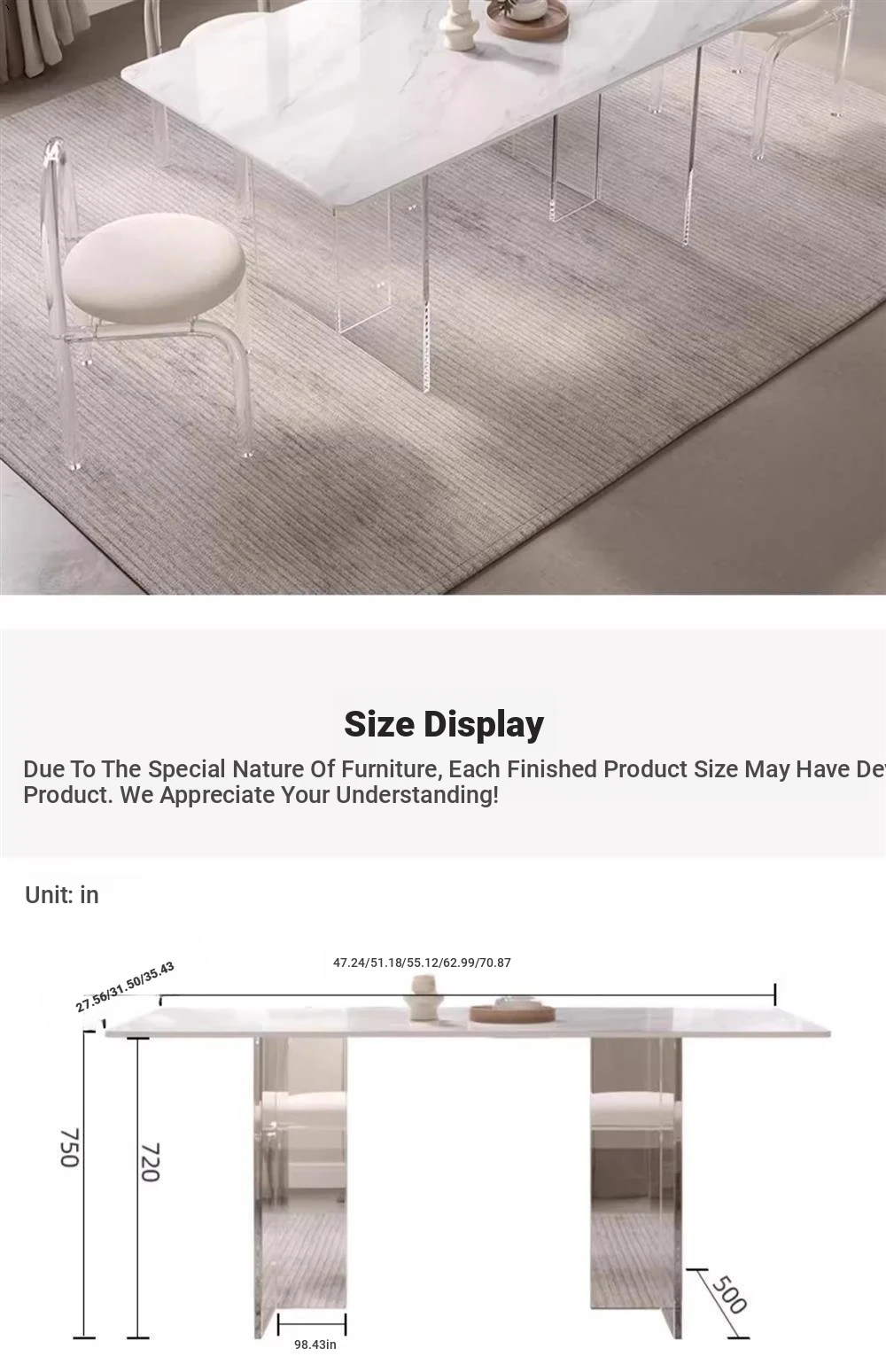 Chanel rock plate 120*60*75 + acrylic table legs delivered to your door