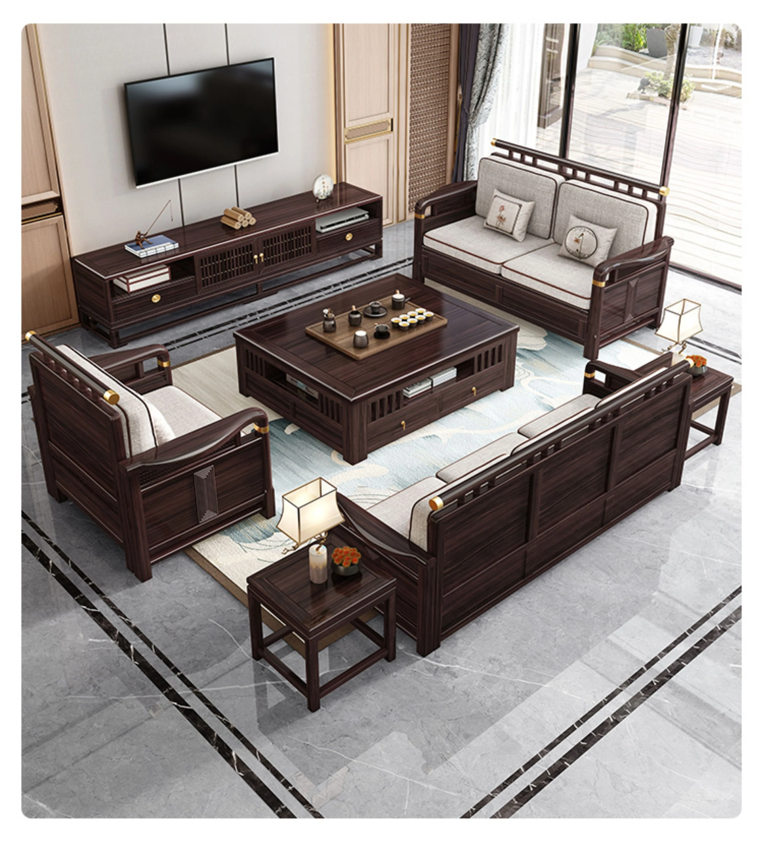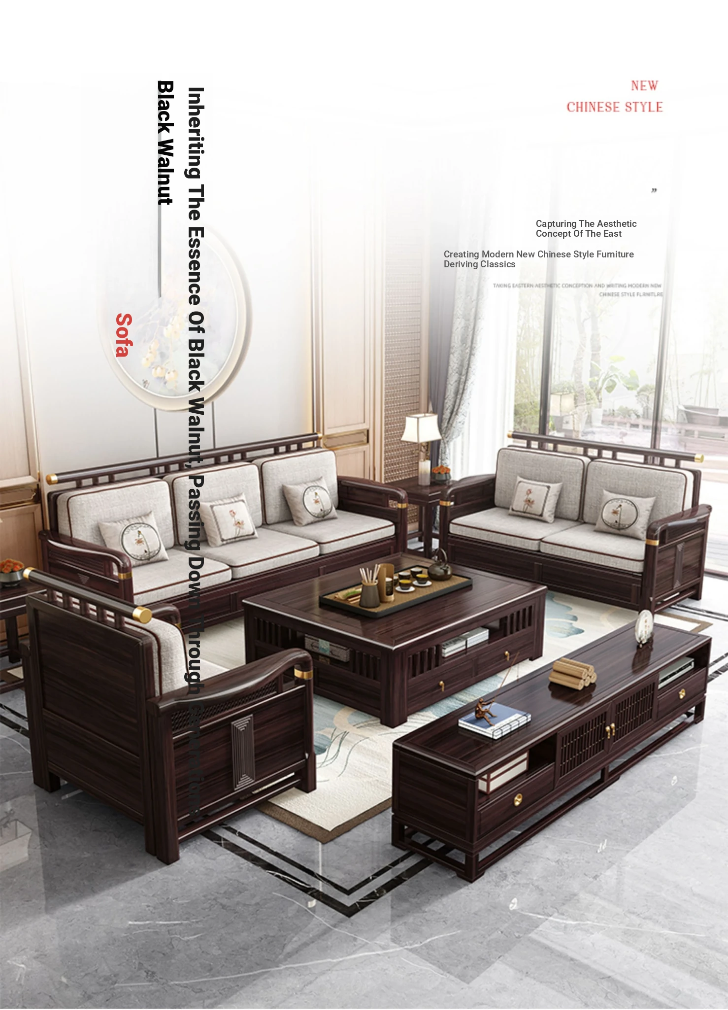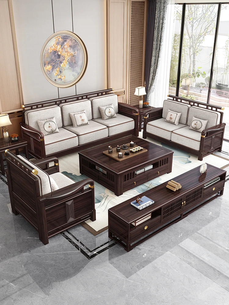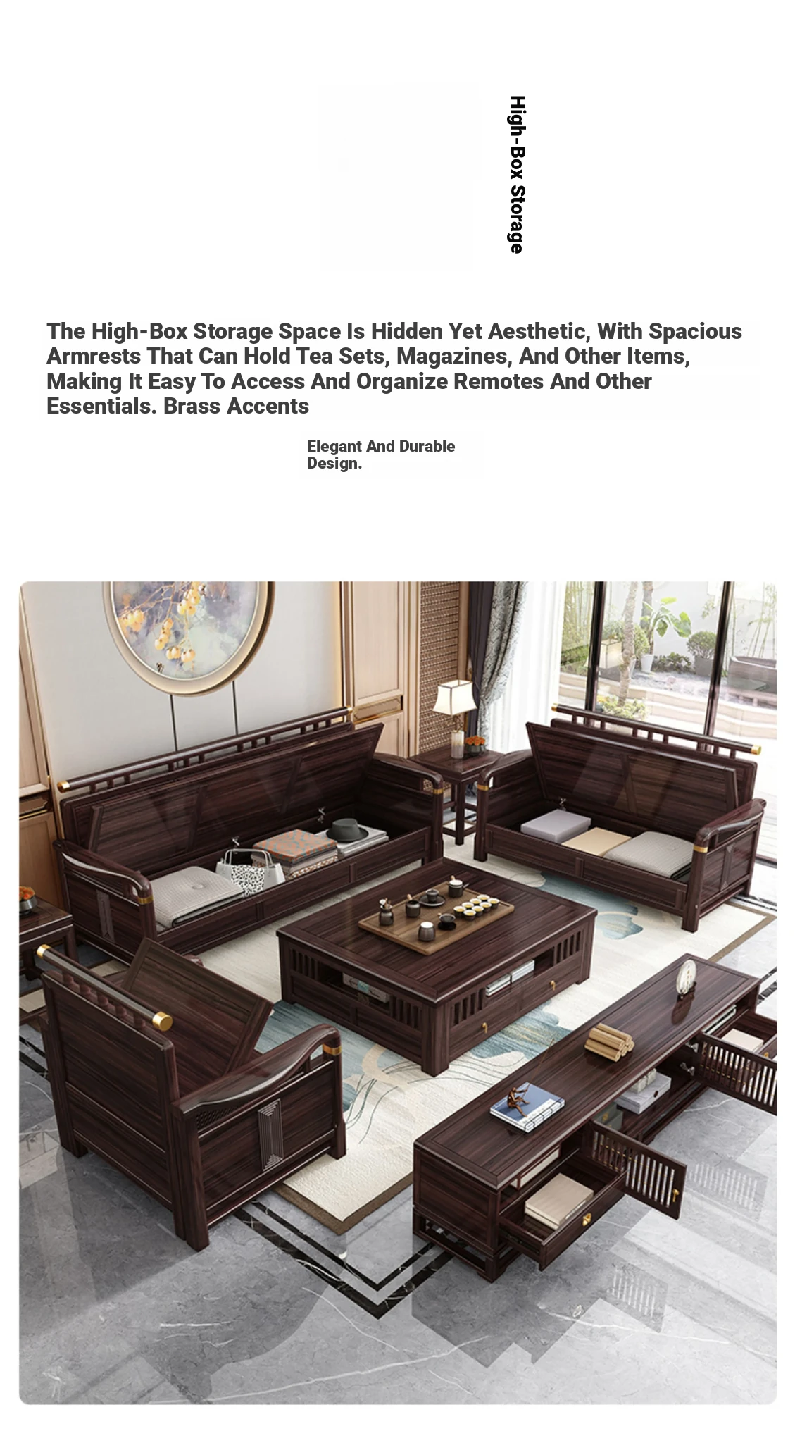 Modern Chinese-Style Blackwood Solid Wood Sofa Set - Elegant and Luxurious Living Room Furniture for Villas and Apartments, Perfect Storage Solutions for Any Space