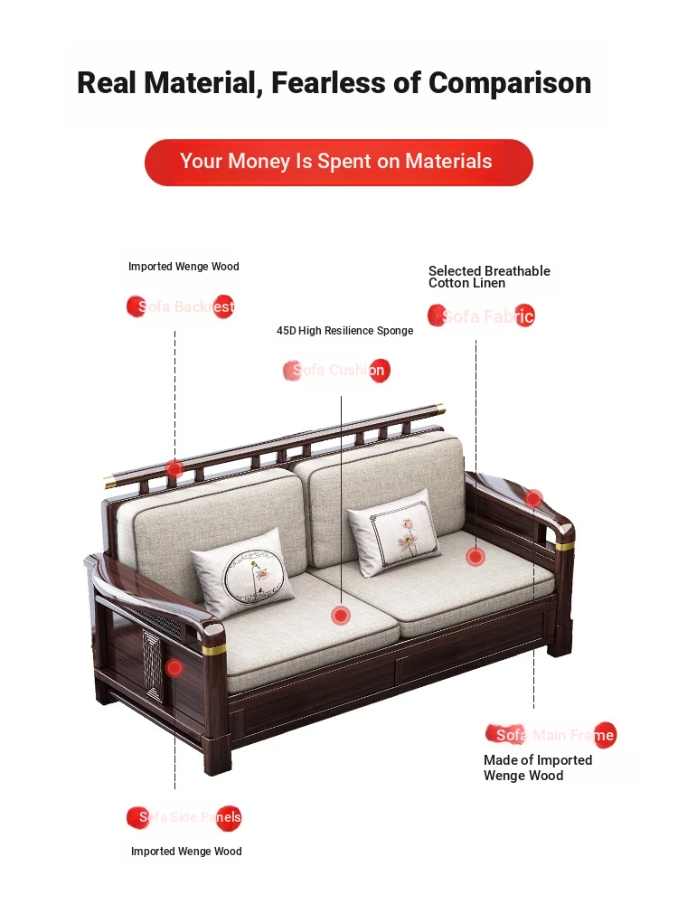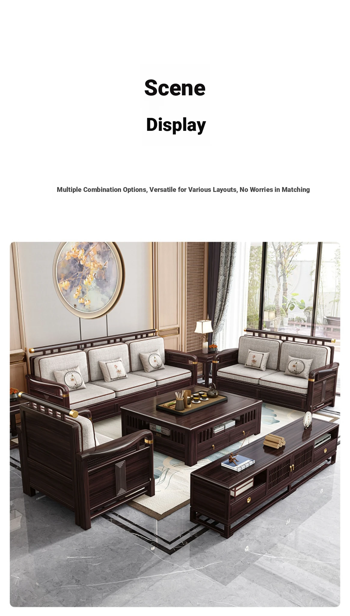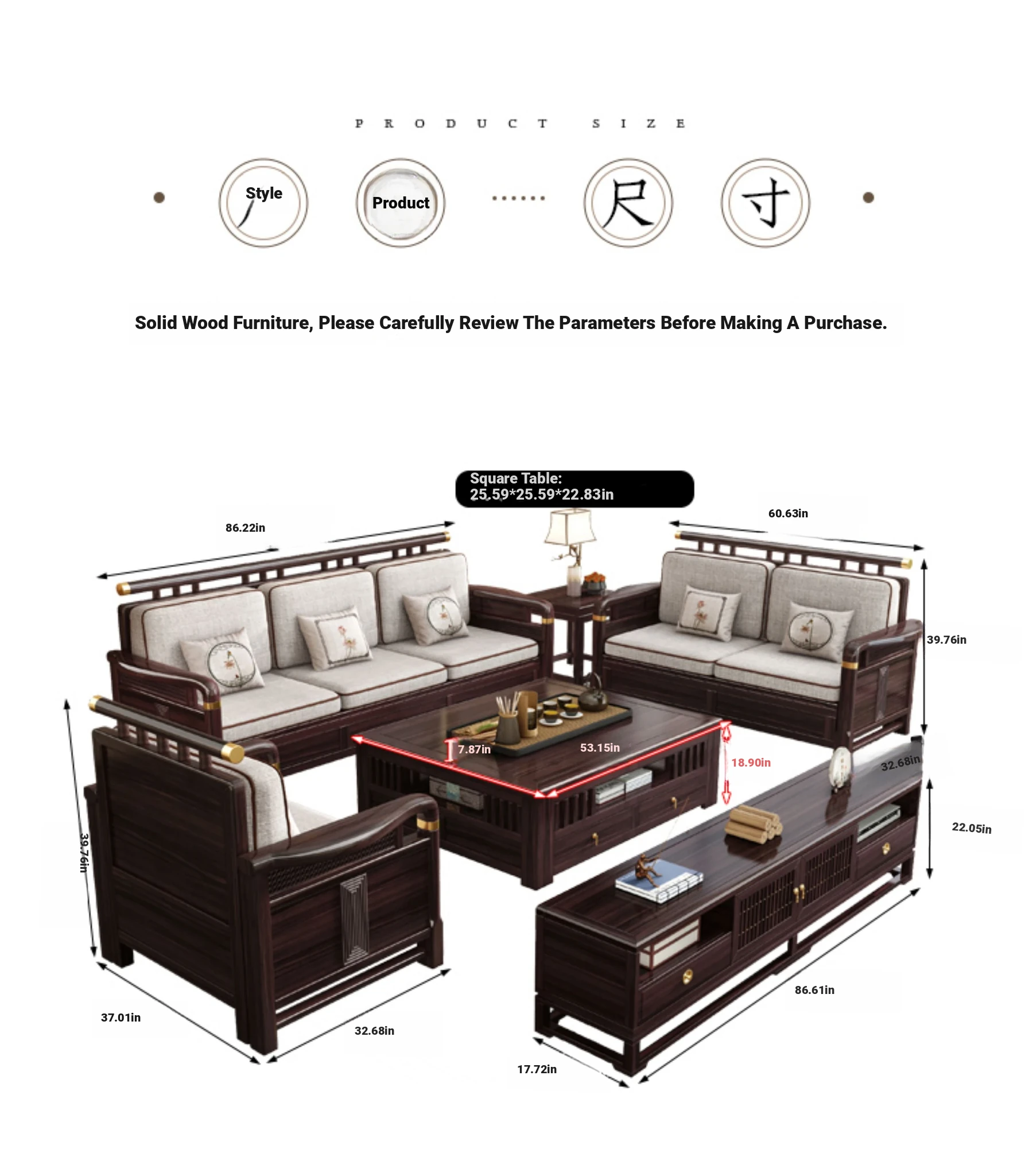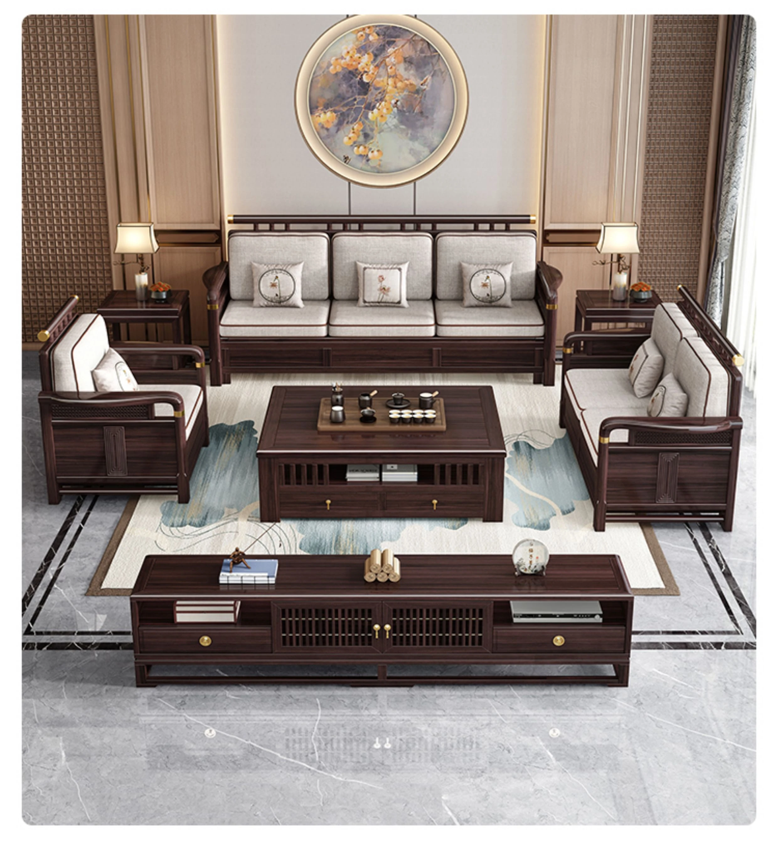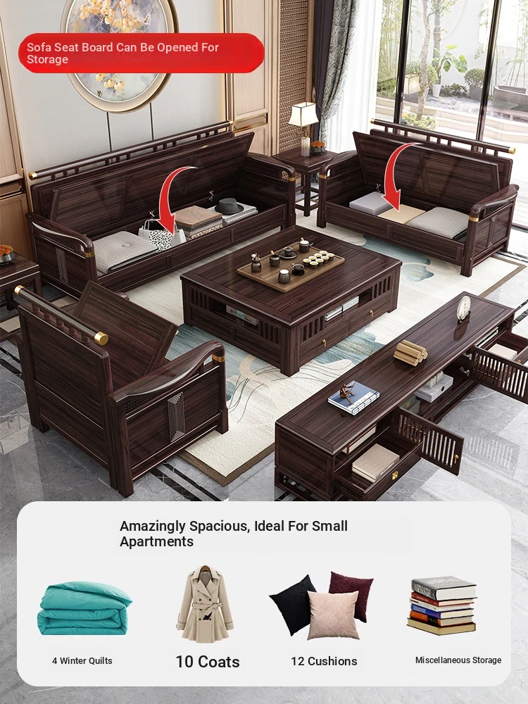 Modern Chinese-Style Blackwood Solid Wood Sofa Set - Elegant and Luxurious Living Room Furniture for Villas and Apartments, Perfect Storage Solutions for Any Space
