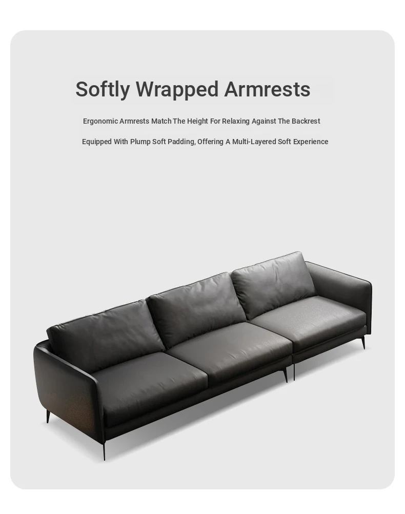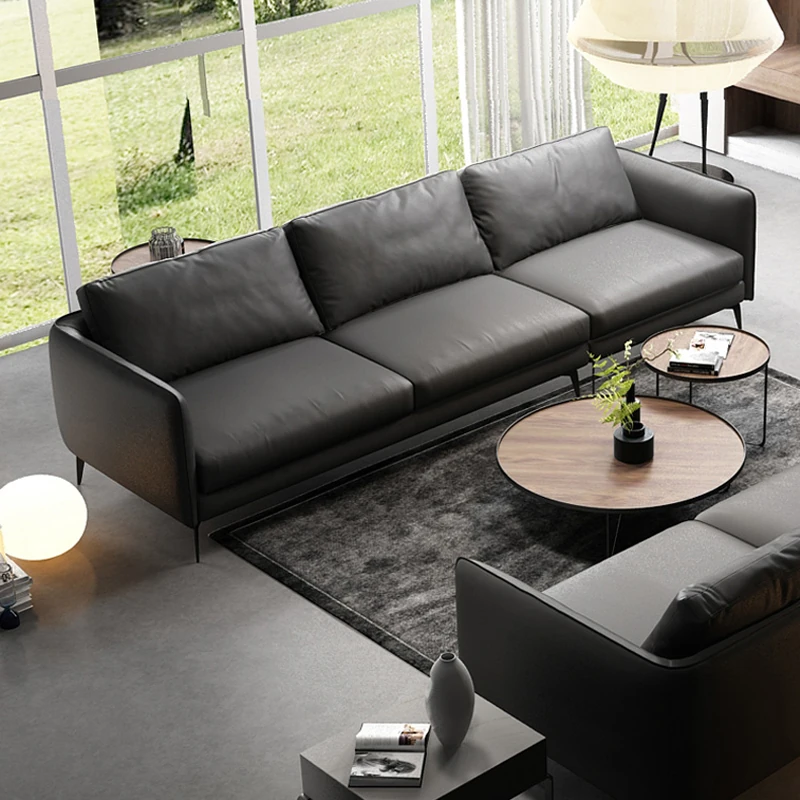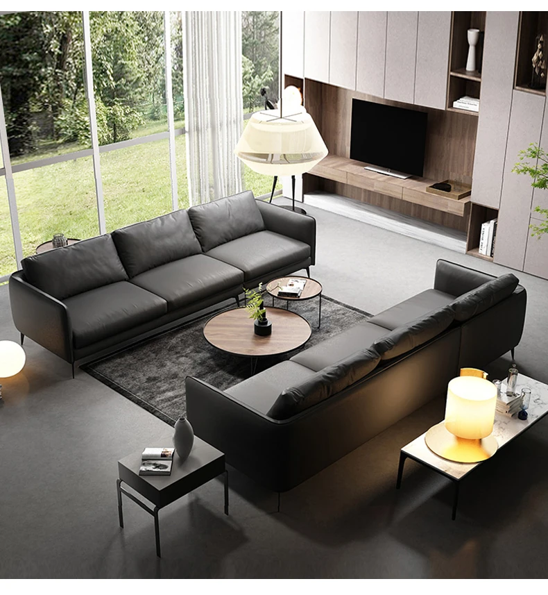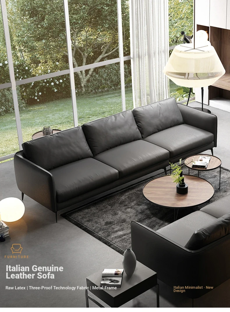 Modern Italian Minimalist Genuine Leather Sofa - Contemporary Straight-Line L-Shaped Corner Sofa in High-Quality Cowhide for Stylish Living Spaces
