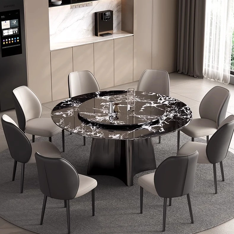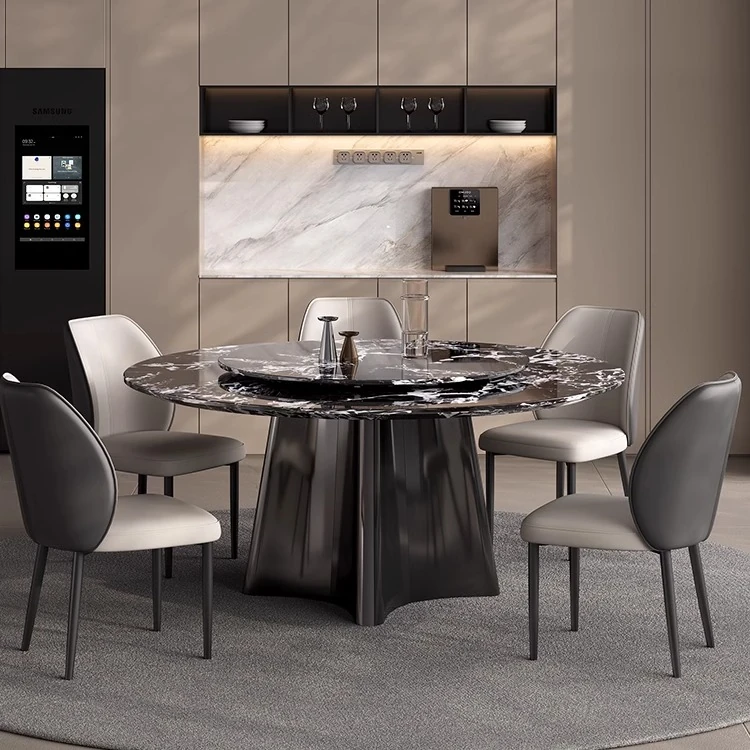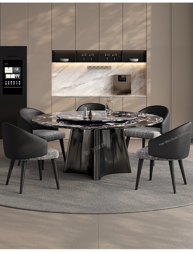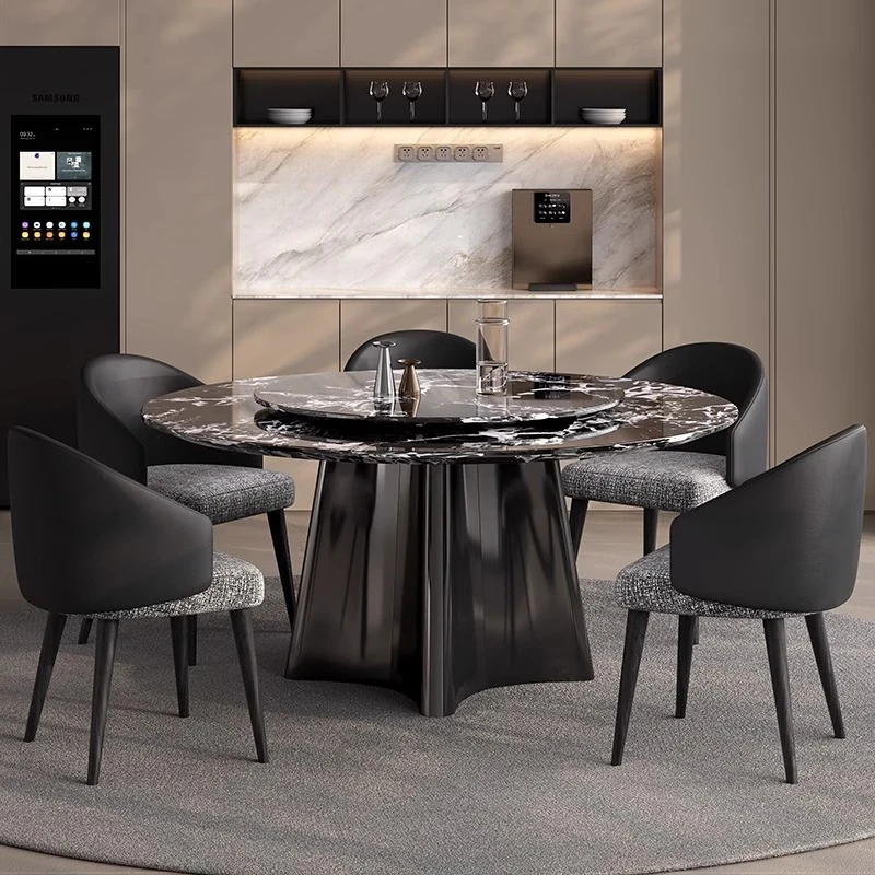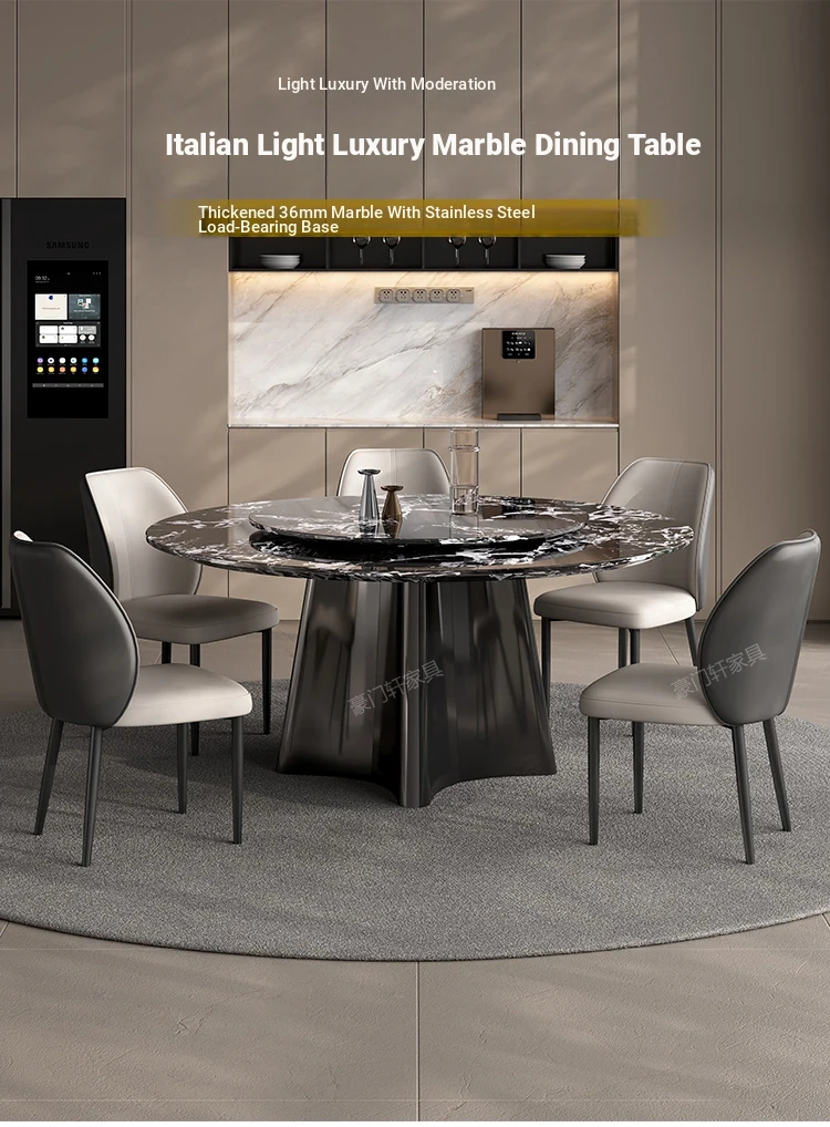 Modern Italian Minimalist Luxury Marble Dining Table and Chair Set - Round Design for Small to Medium Spaces, Perfect for Home Dining