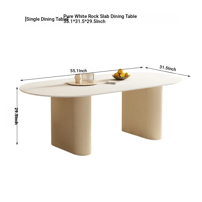 [Single table] pure white rock plate oval dining table 55.12in*31.50in*29.53in