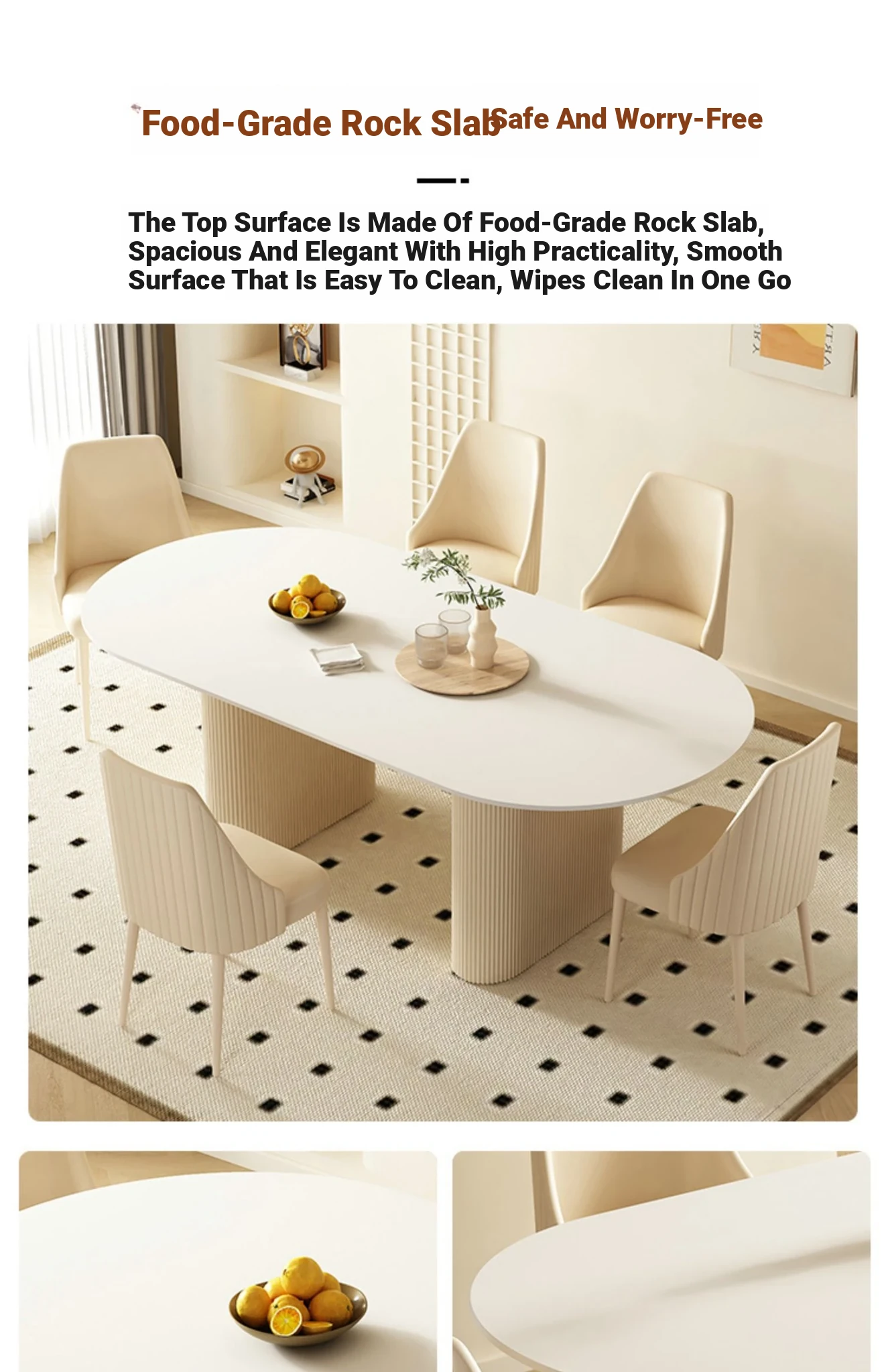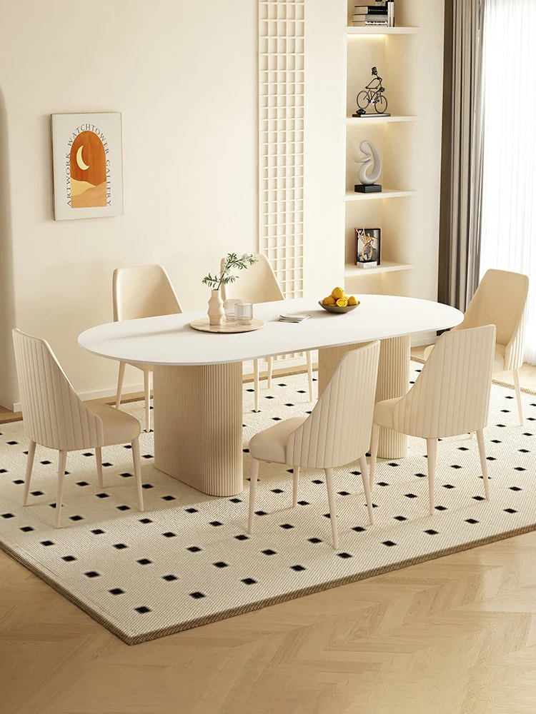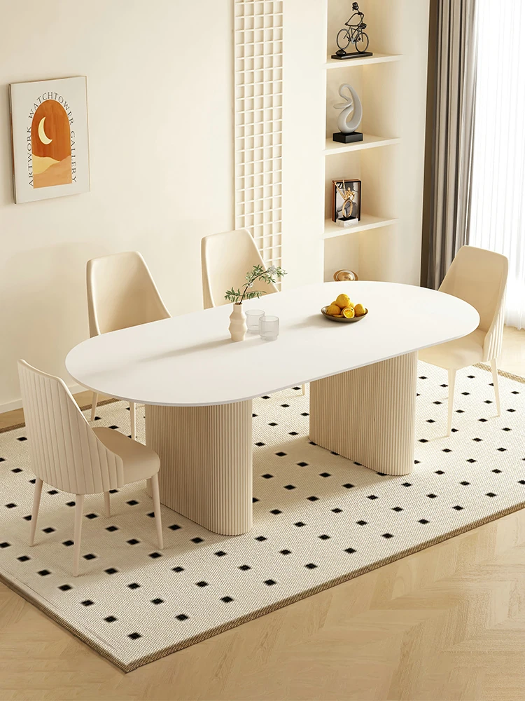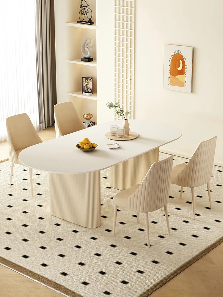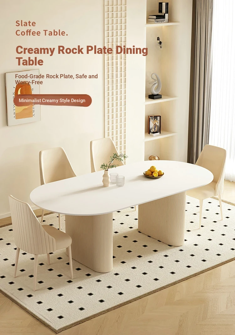 Modern Minimalist Cream Oval Dining Table and Chair Set for Small Spaces - 2025 New Design, Luxurious Yet Affordable Home Essentials