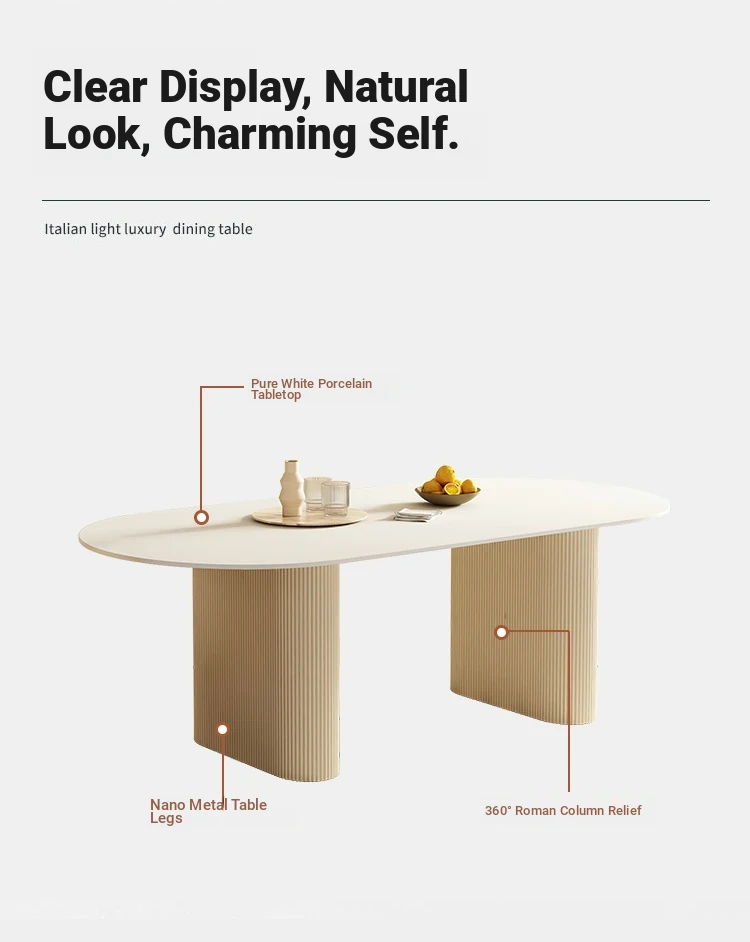 [Single table] pure white rock plate oval dining table 70.87in*35.43in*29.53in